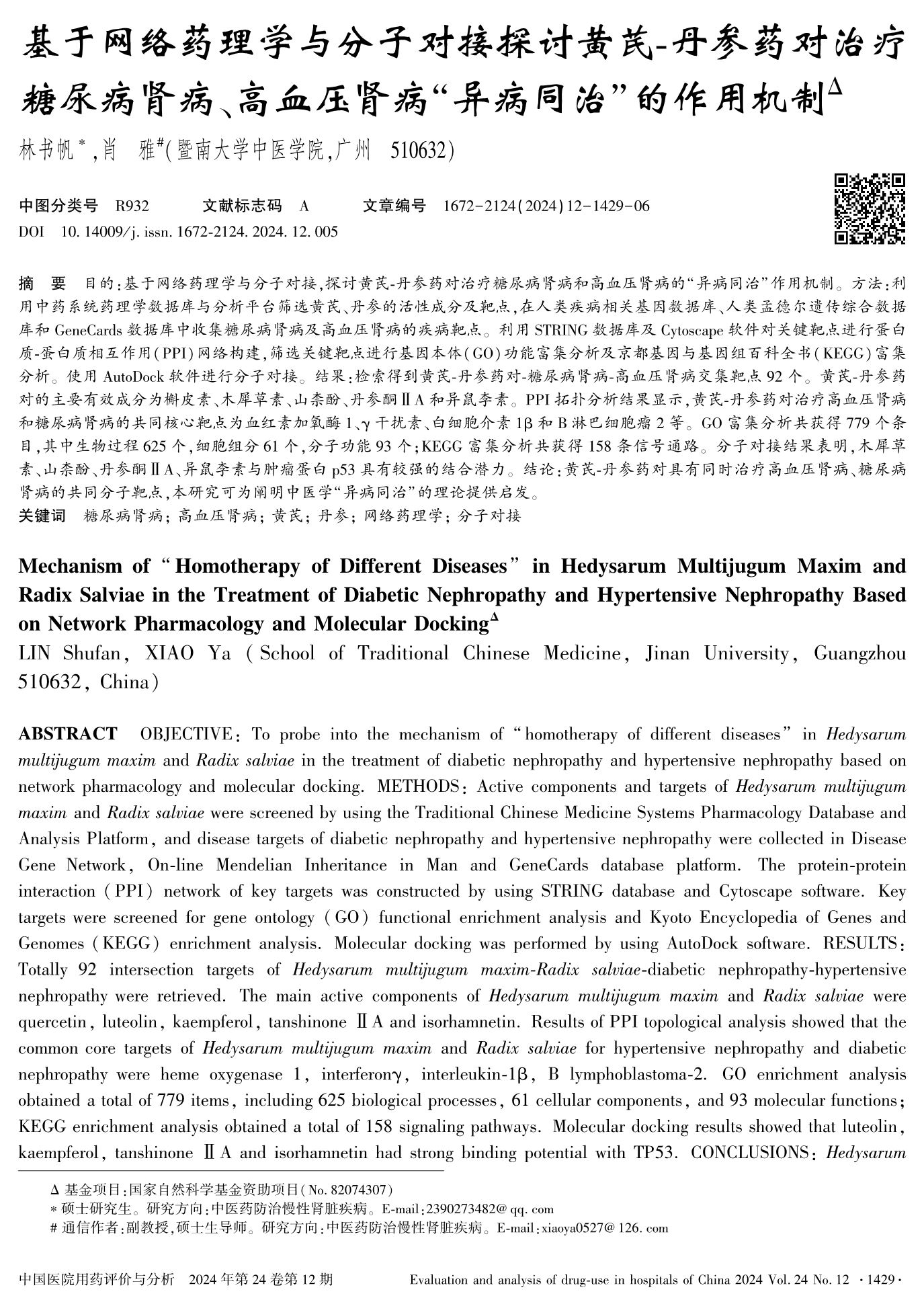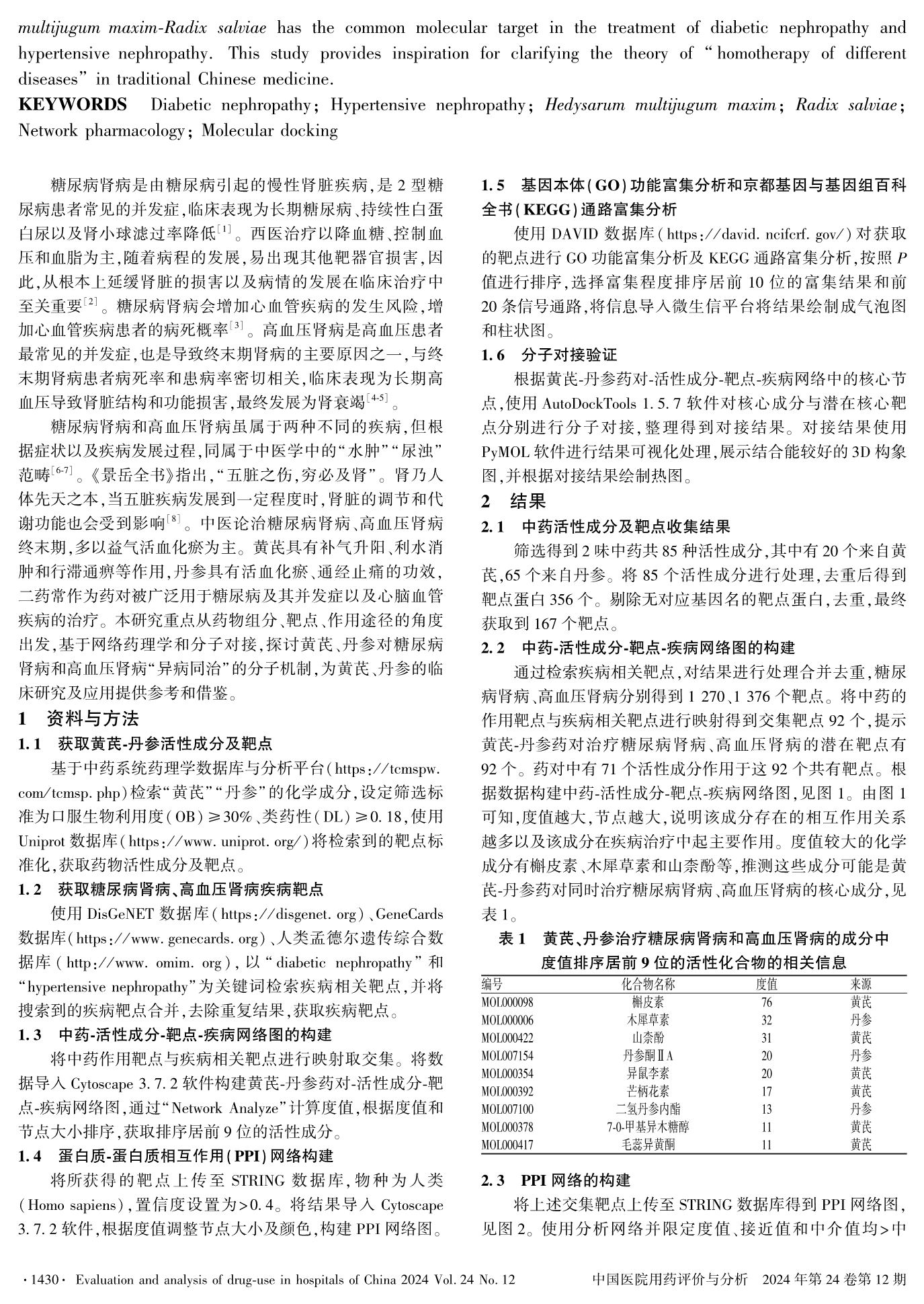 基于网络药理学与分子对接探讨黄芪-丹参药对治疗糖尿病肾病、高血压肾病“异病同治”的作用机制