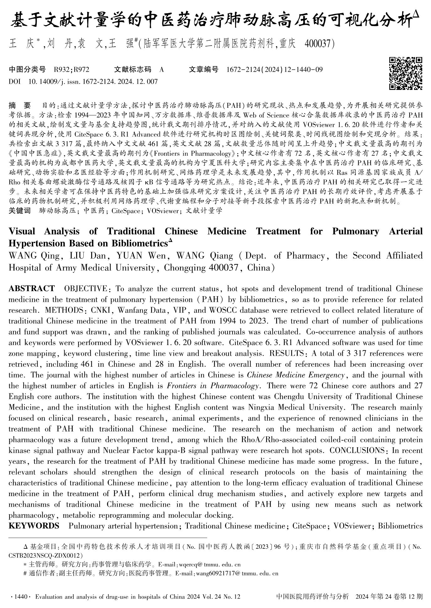 基于文献计量学的中医药治疗肺动脉高压的可视化分析