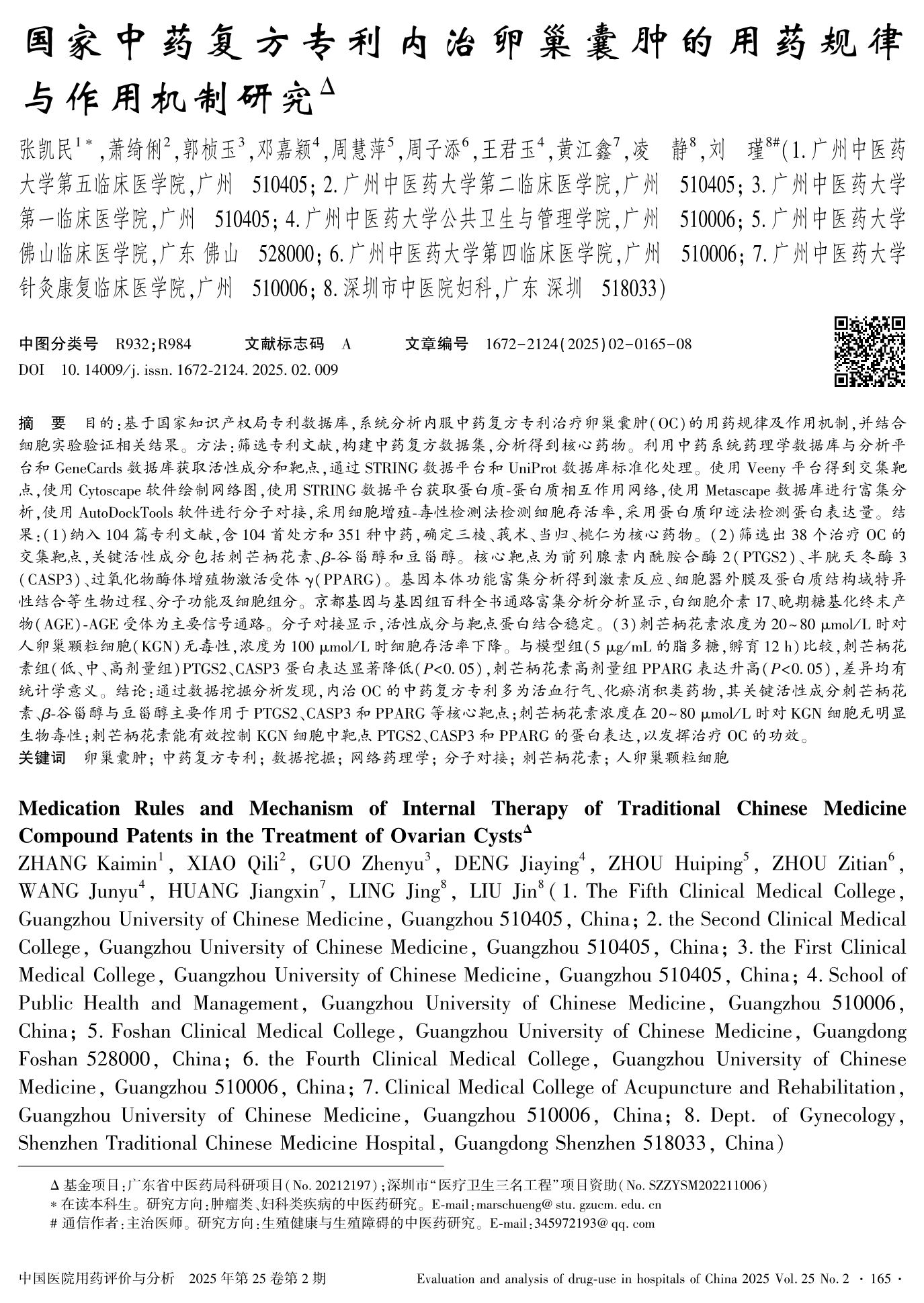 国家中药复方专利内治卵巢囊肿的用药规律与作用机制研究