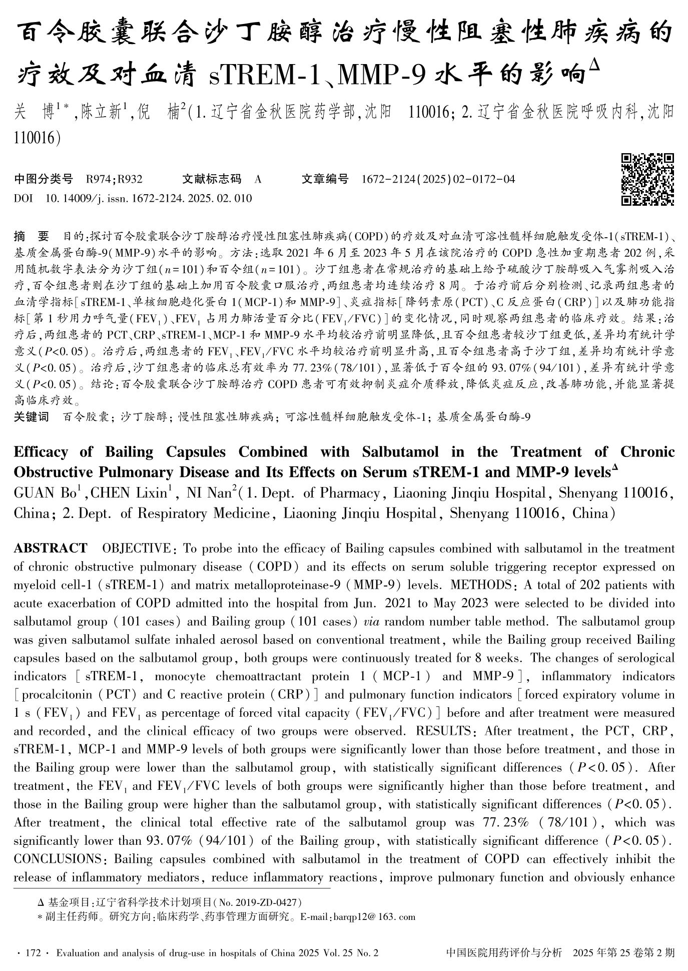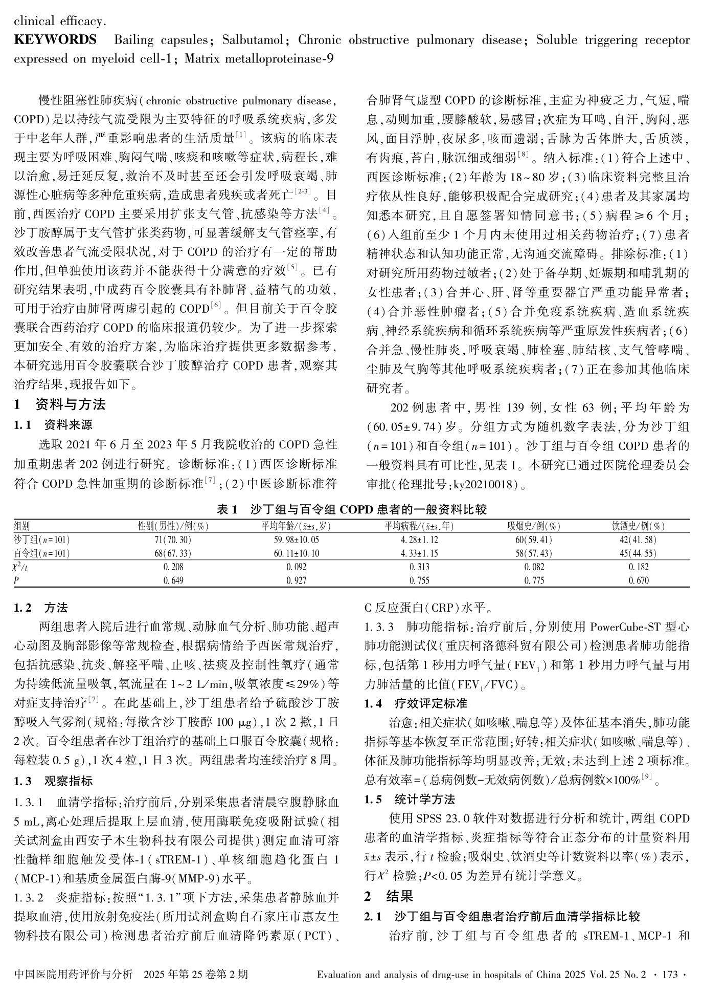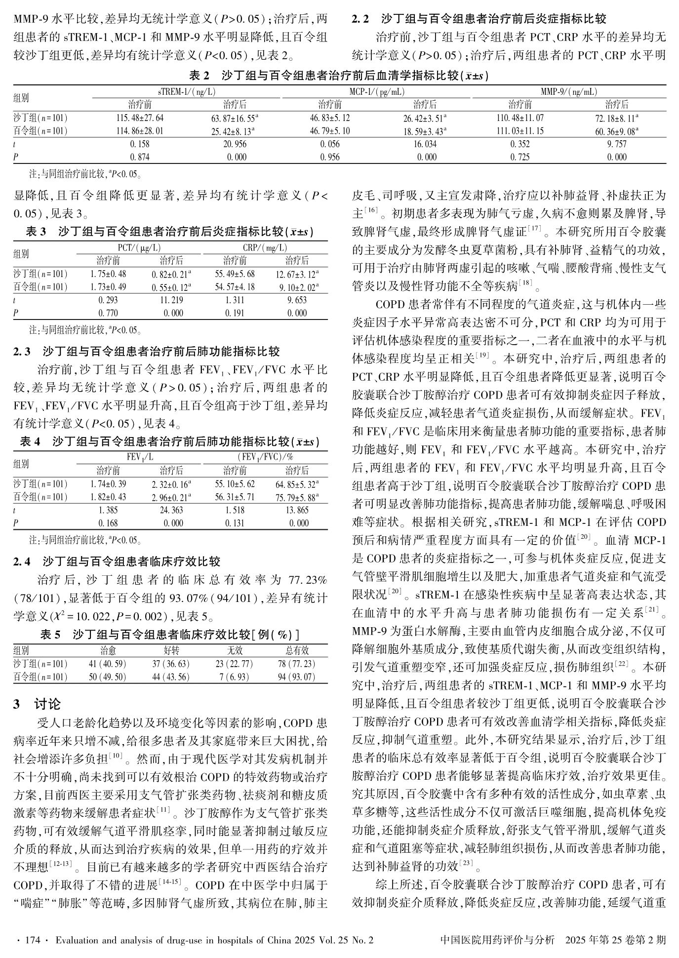 百令胶囊联合沙丁胺醇治疗慢性阻塞性肺疾病的疗效及对血清sTREM-1、MMP-9水平的影响