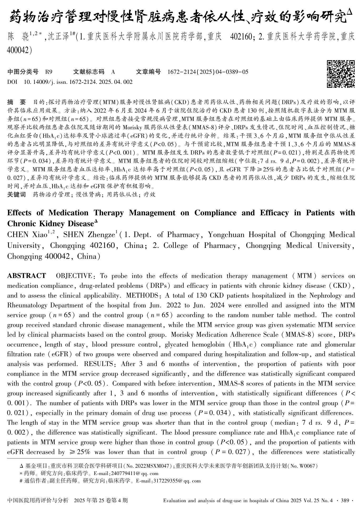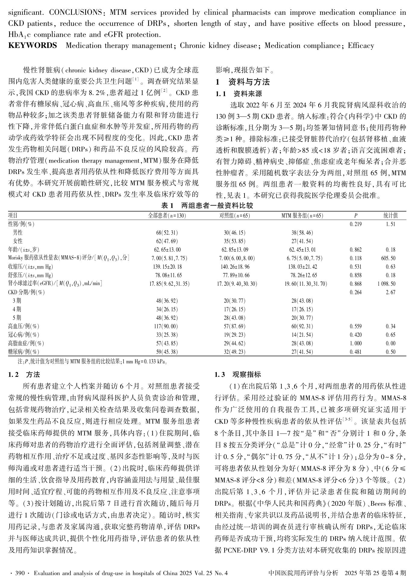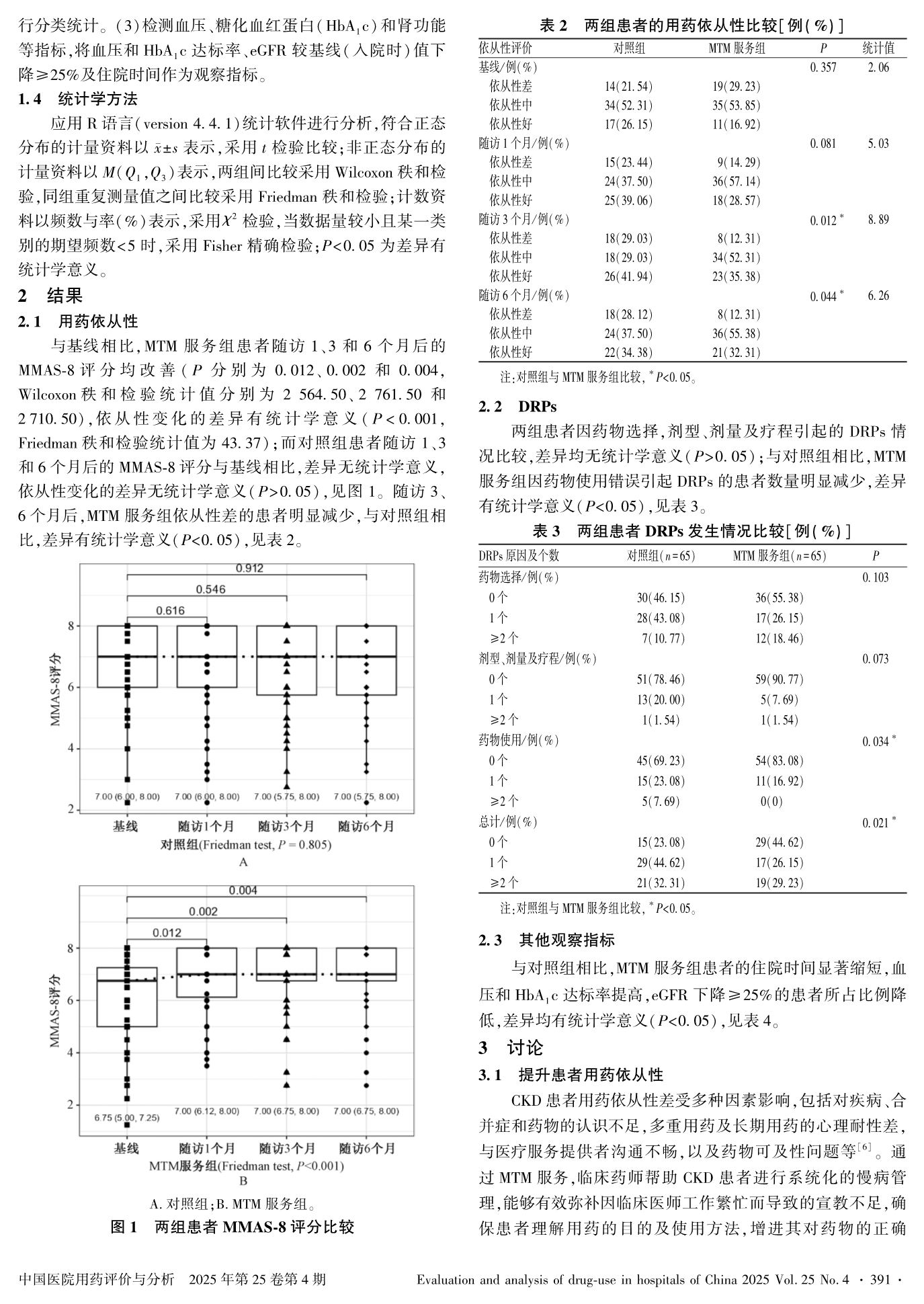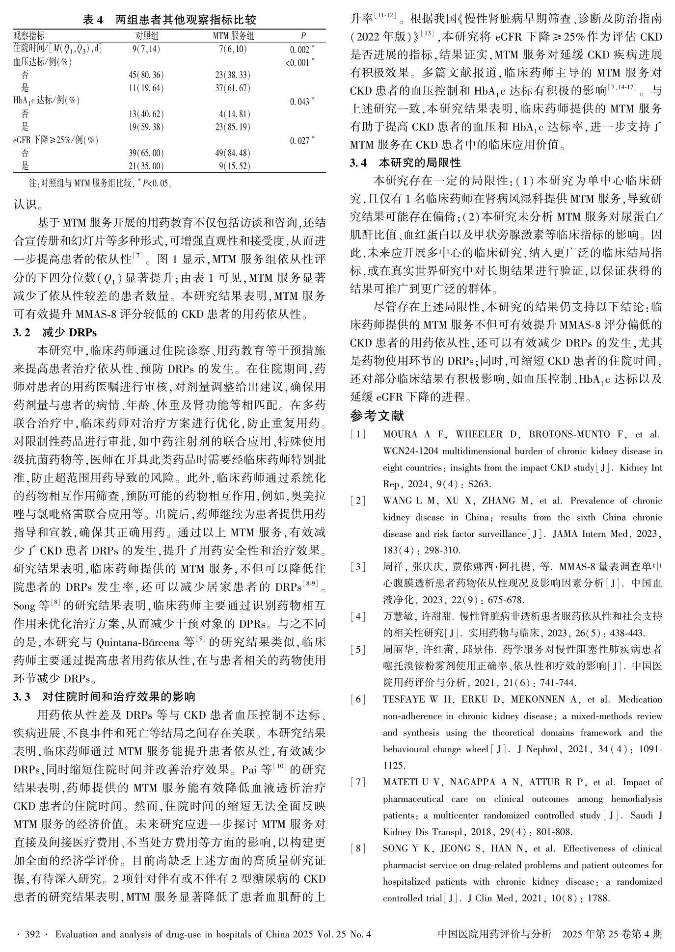 药物治疗管理对慢性肾脏病患者依从性、疗效的影响研究