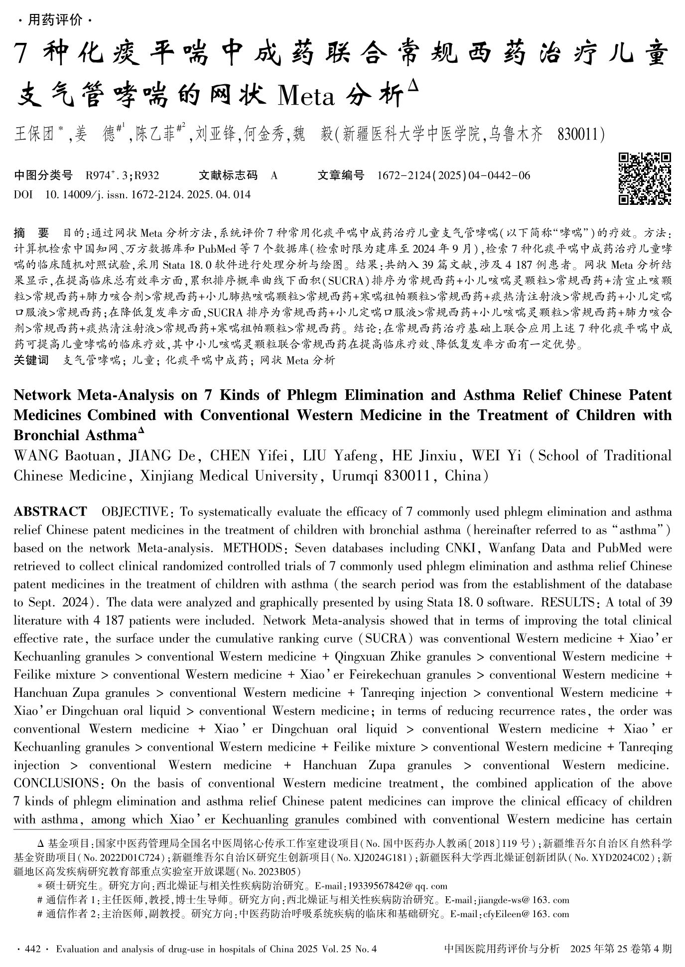 Network Meta-Analysis on 7 Kinds of Phlegm Elimination and Asthma Relief Chinese Patent Medicines Combined with Conventional Western Medicine in the Treatment of Children with Bronchial Asthma
