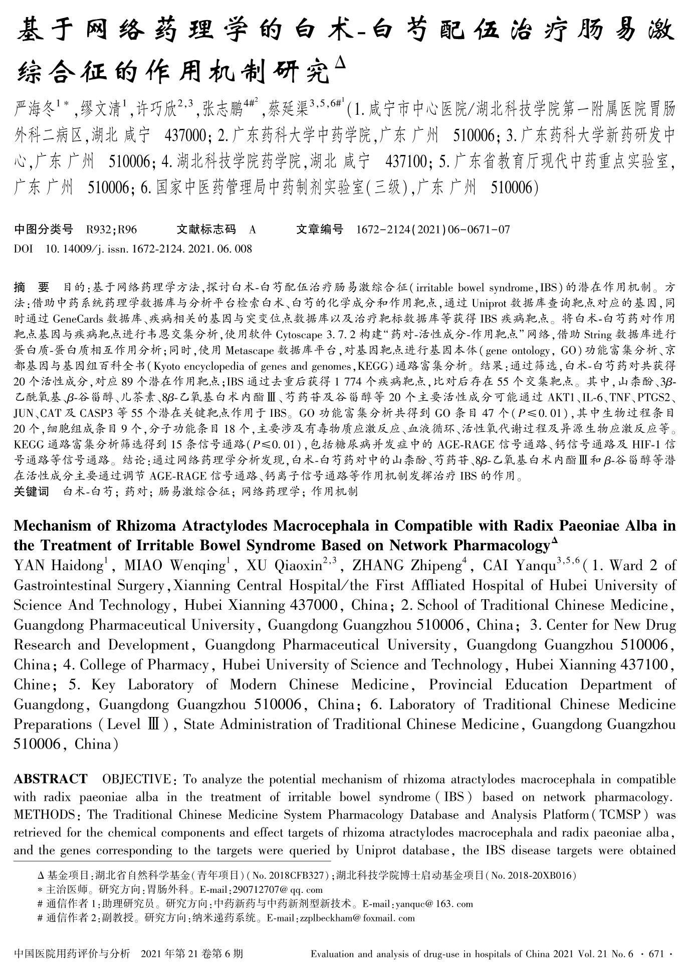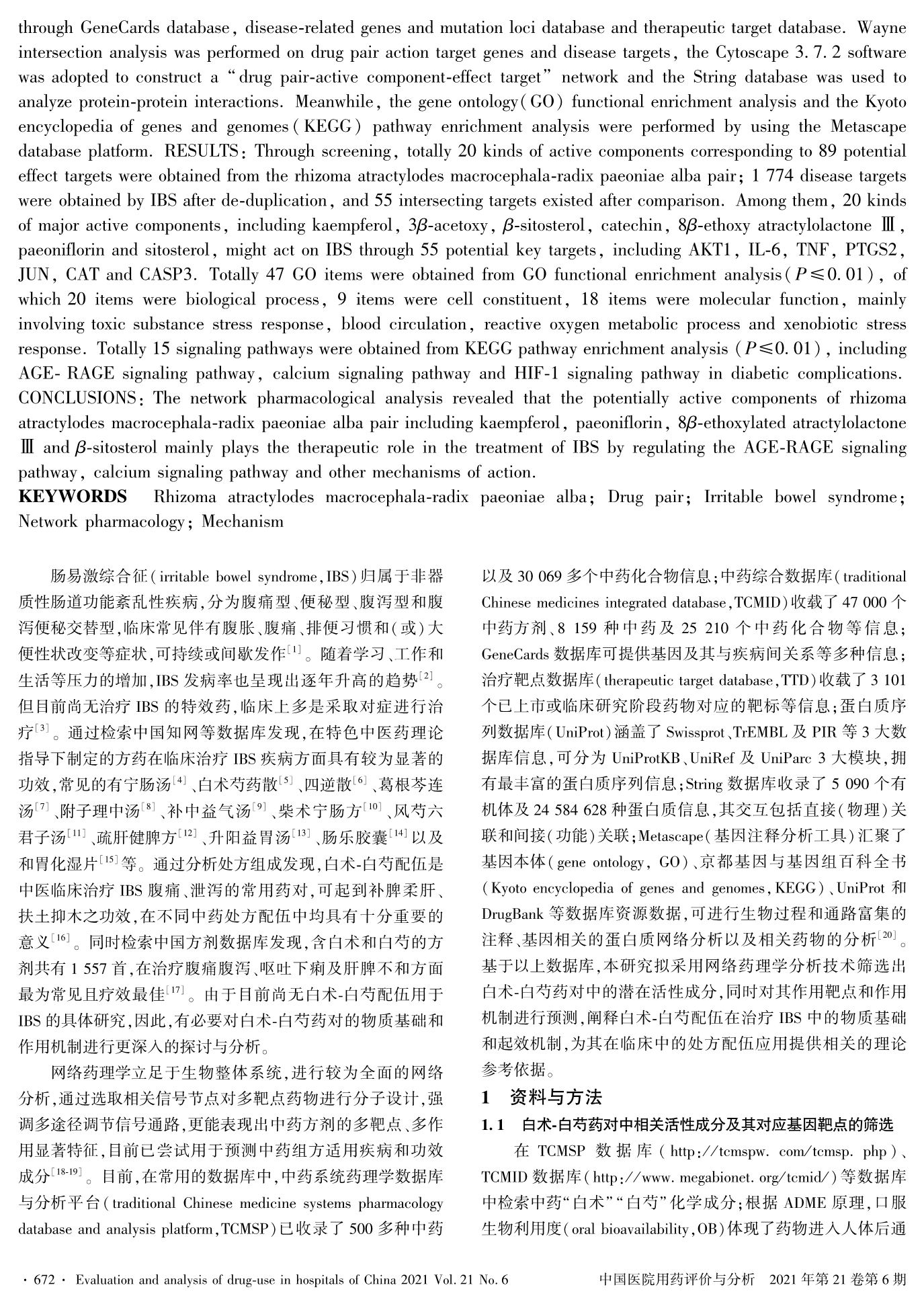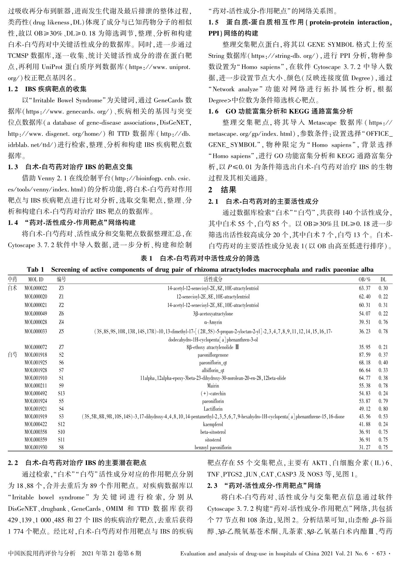 基于网络药理学的白术-白芍配伍治疗肠易激综合征的作用机制研究