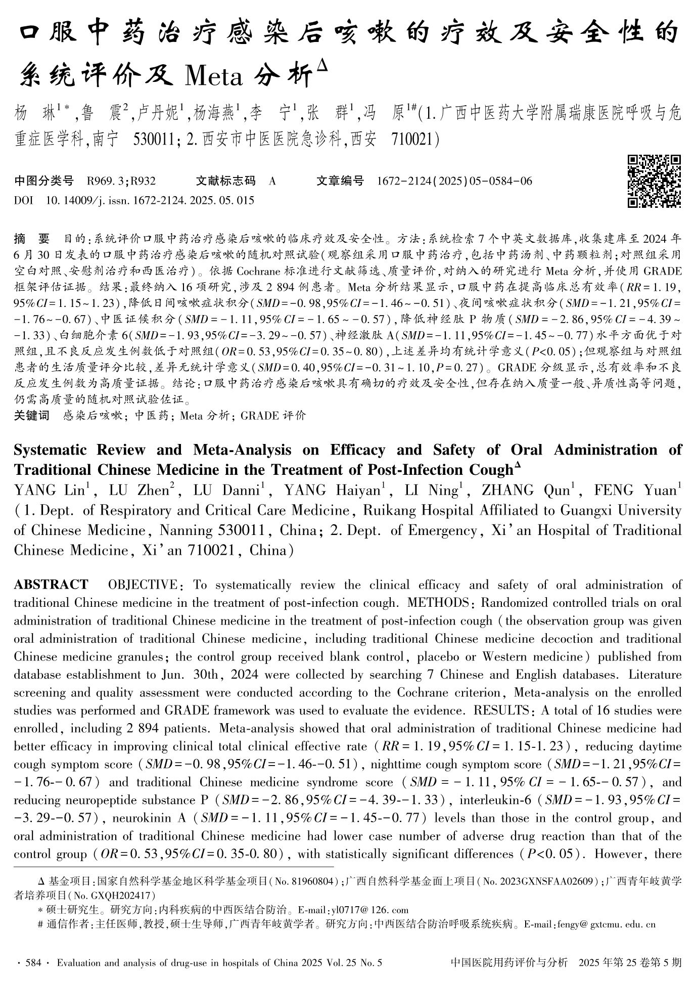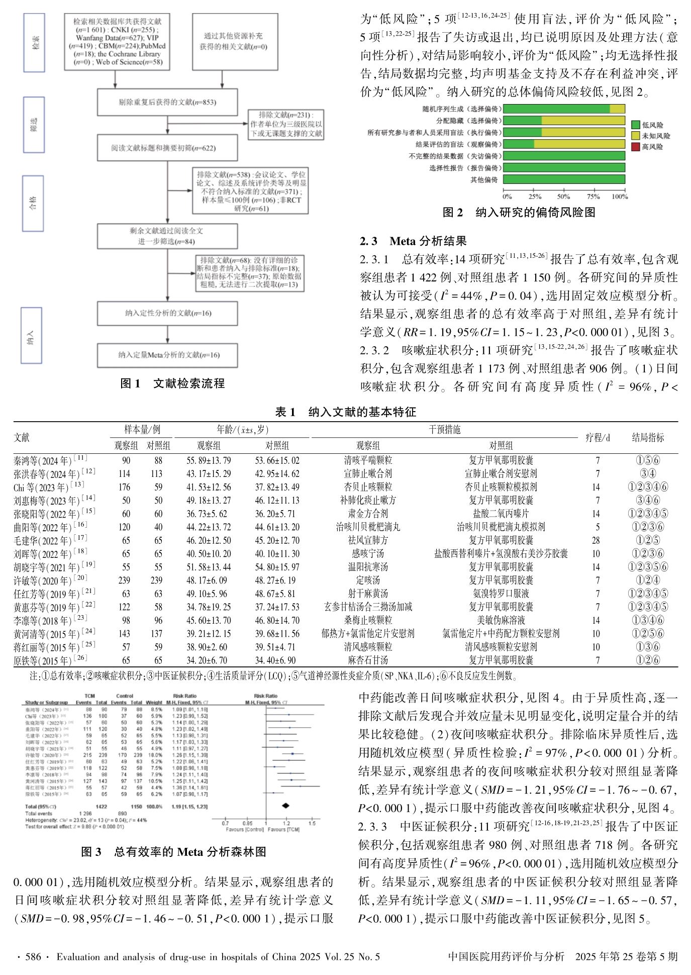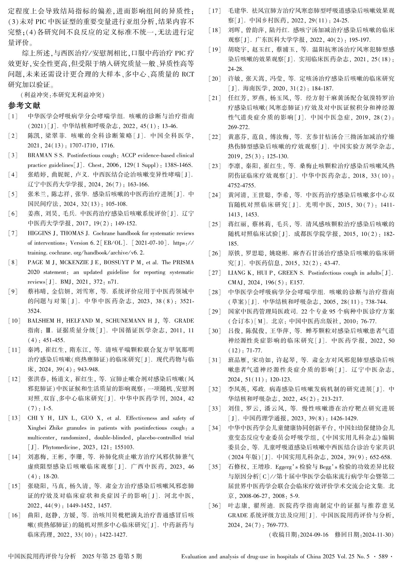 口服中药治疗感染后咳嗽的疗效及安全性的系统评价及Meta分析