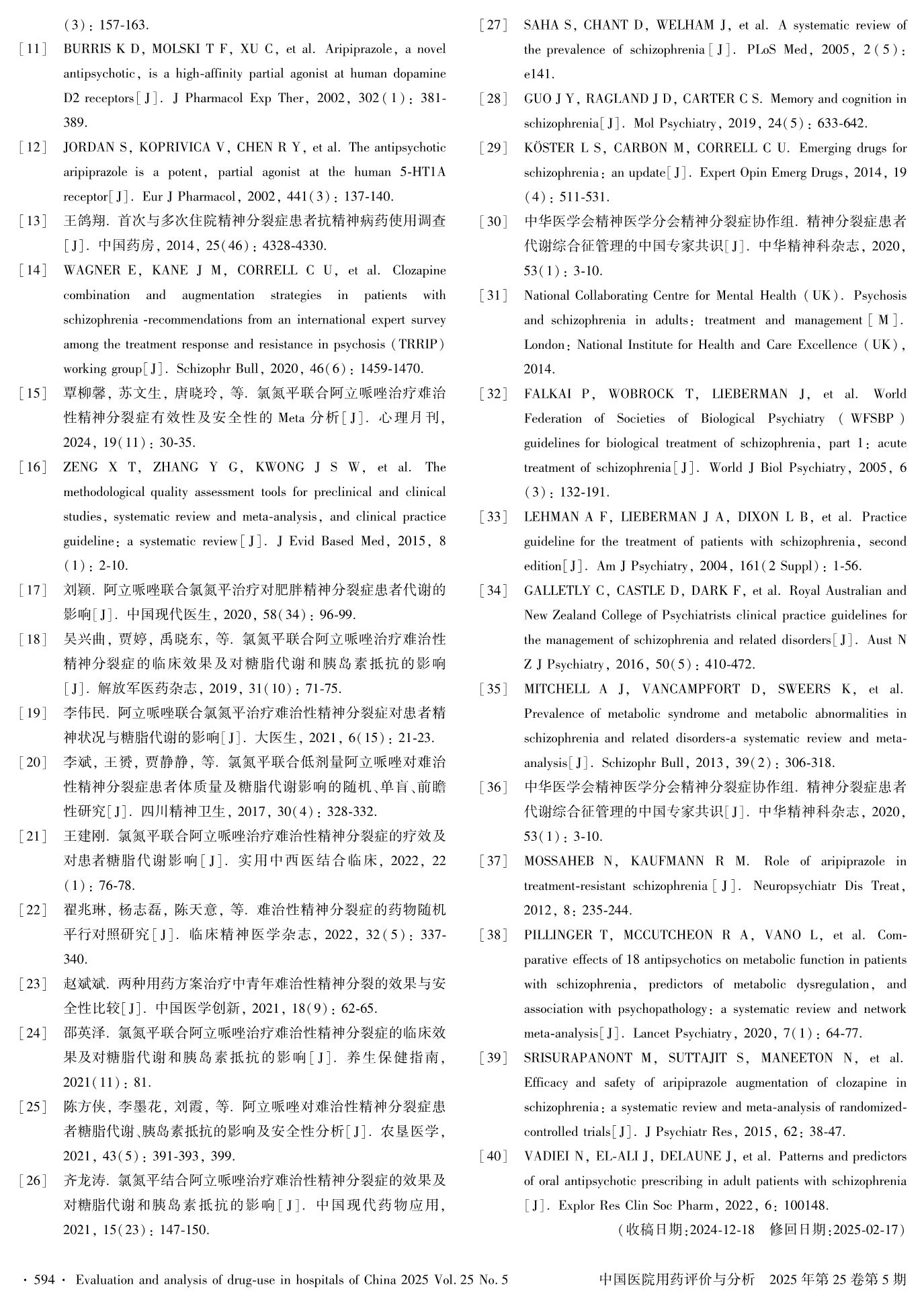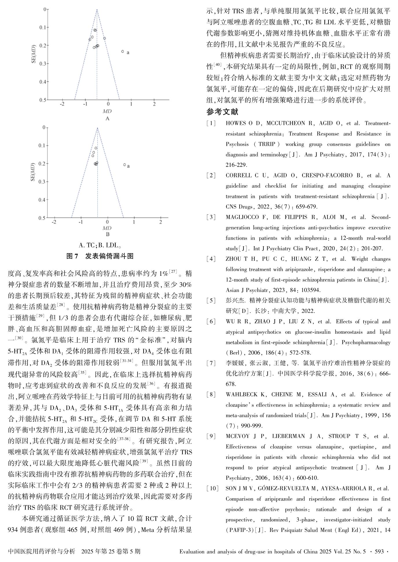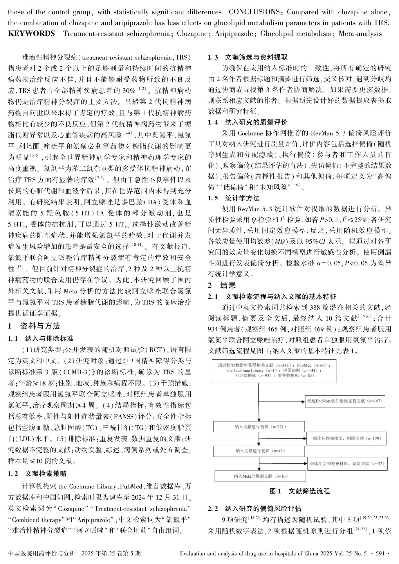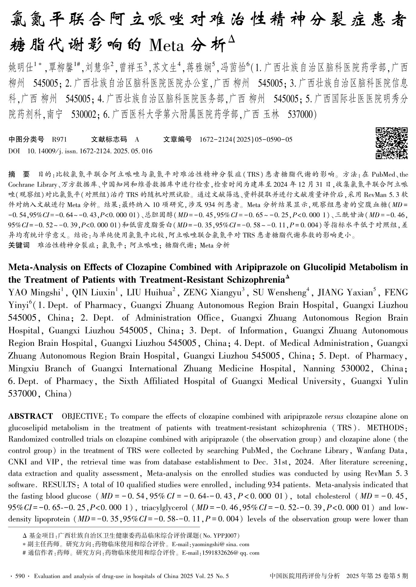氯氮平联合阿立哌唑对难治性精神分裂症患者糖脂代谢影响的Meta分析