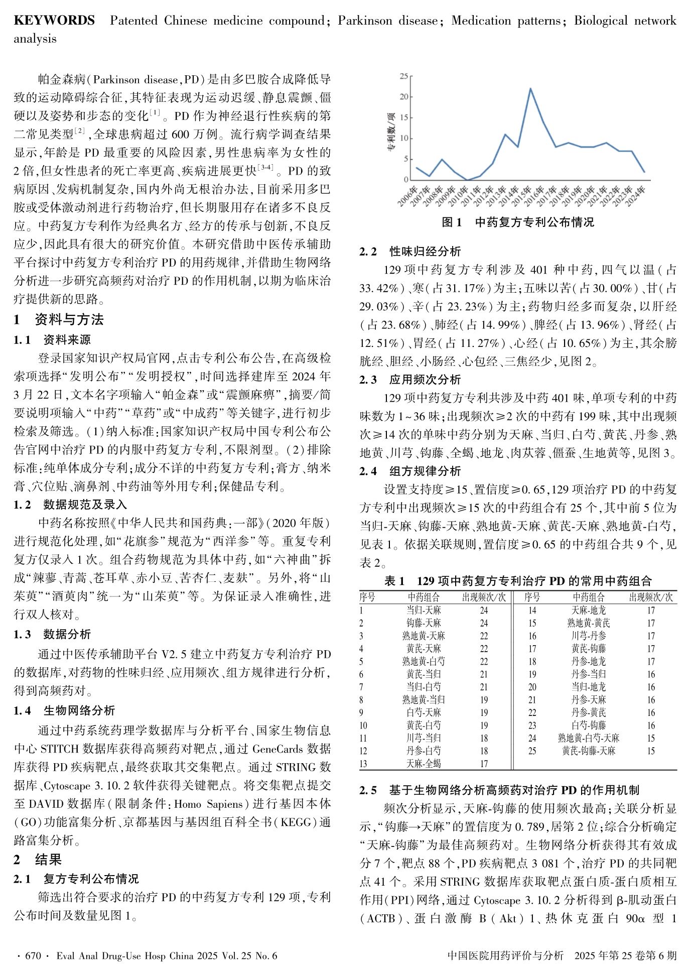 Medication Patterns and Mechanism of Patented Traditional Chinese Medicine Compound in the Treatment of Parkinson Disease Based on the Traditional Chinese Medicine Inheritance Support Platform and Biological Network Analysis