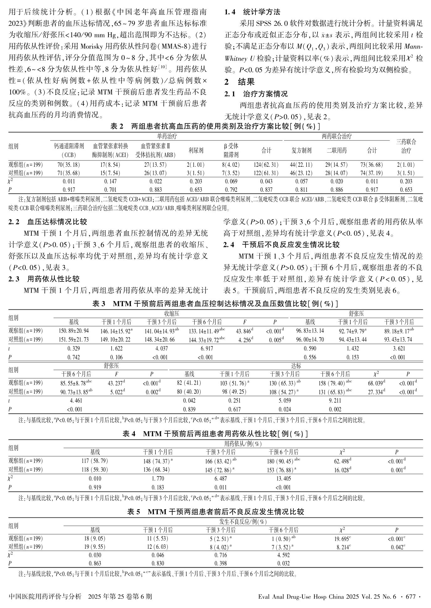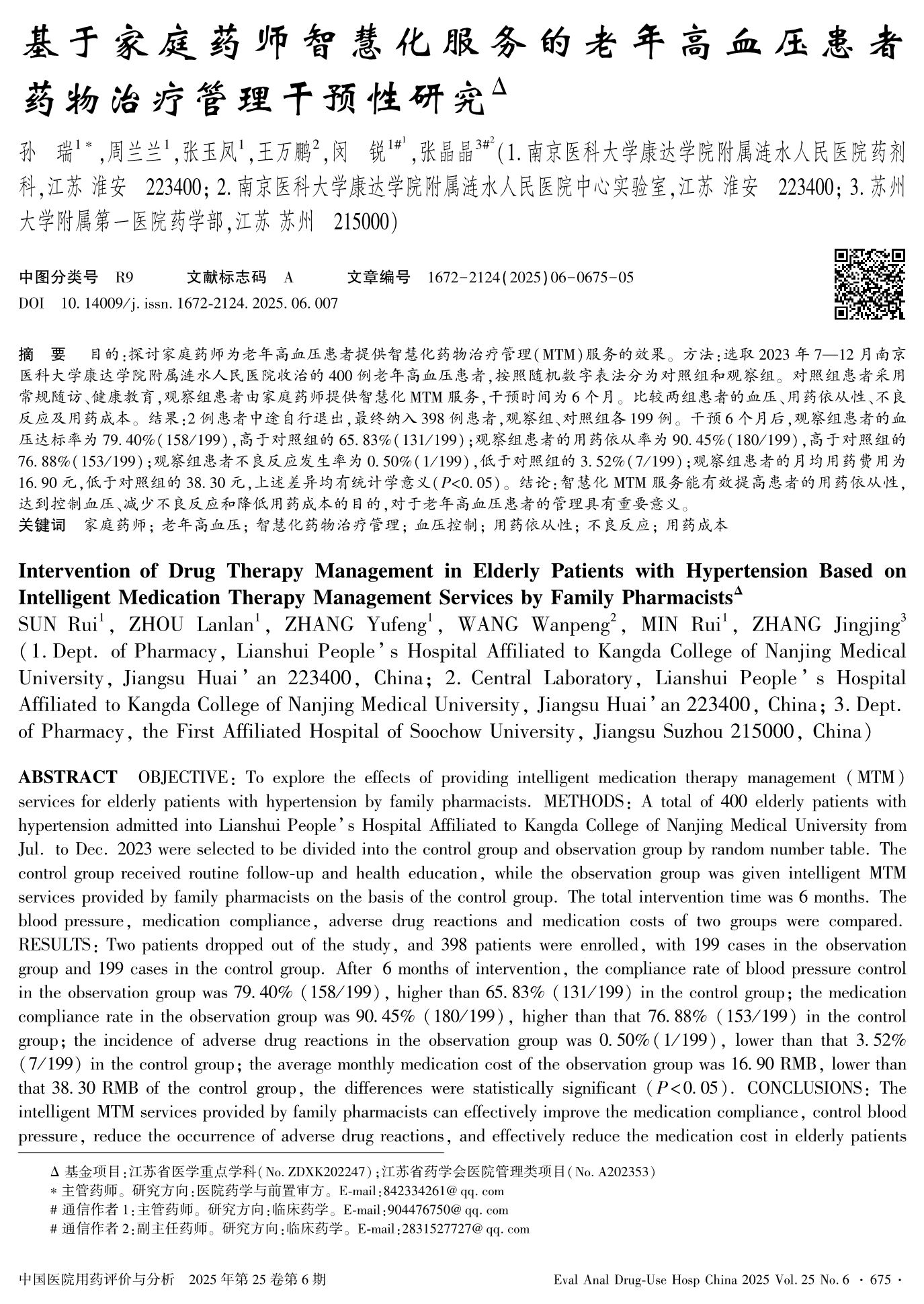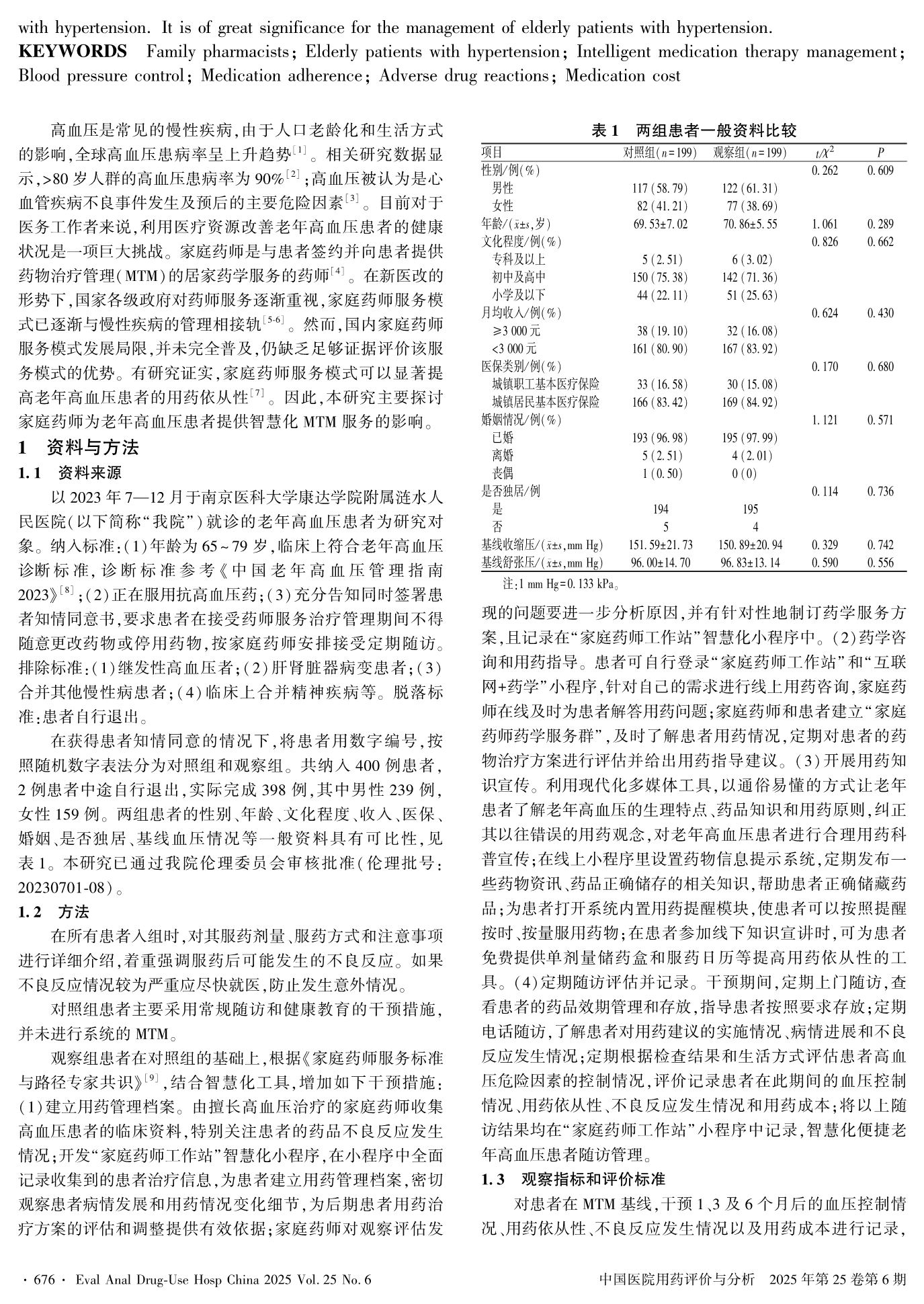 基于家庭药师智慧化服务的老年高血压患者药物治疗管理干预性研究