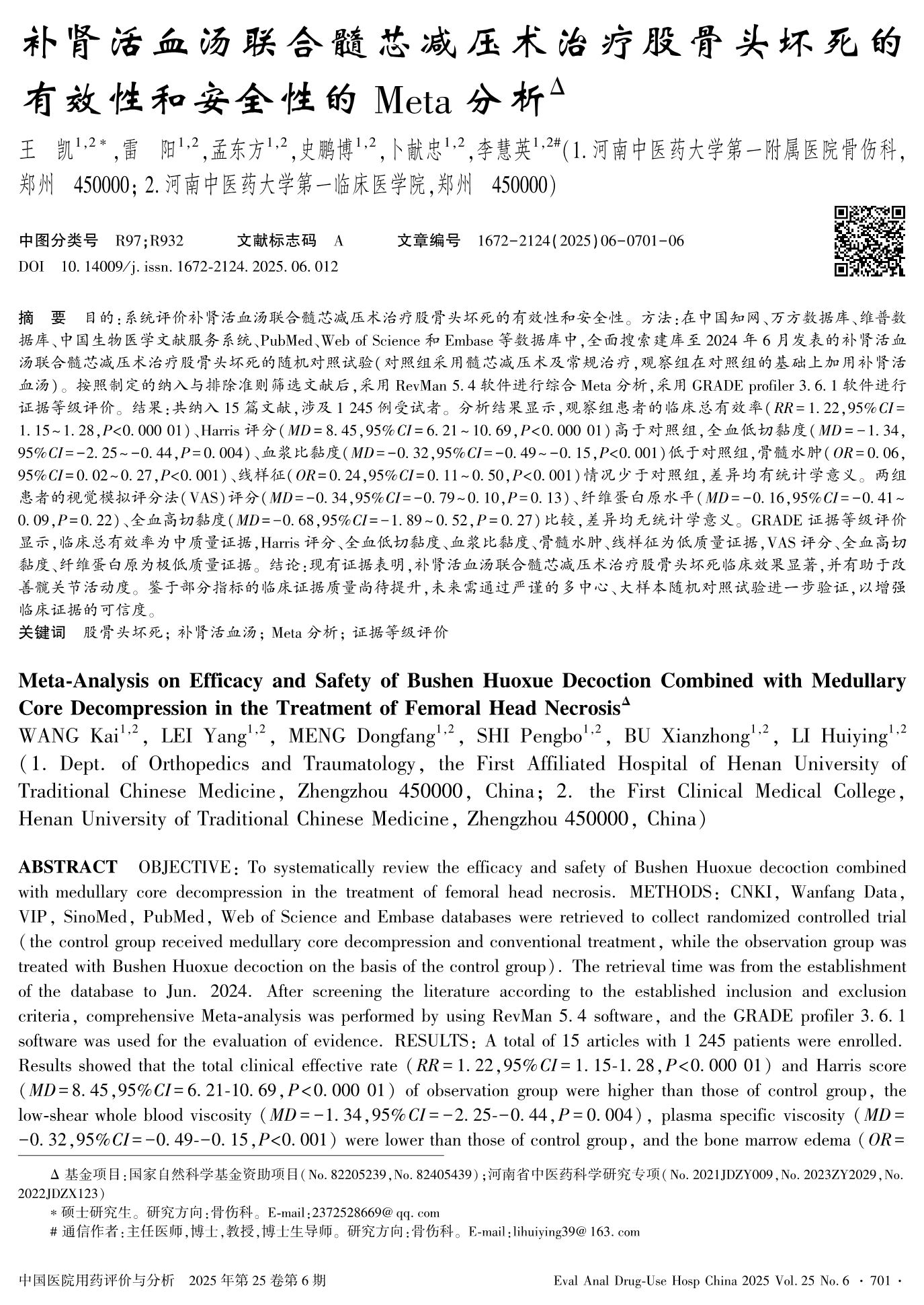 补肾活血汤联合髓芯减压术治疗股骨头坏死的有效性和安全性的Meta分析