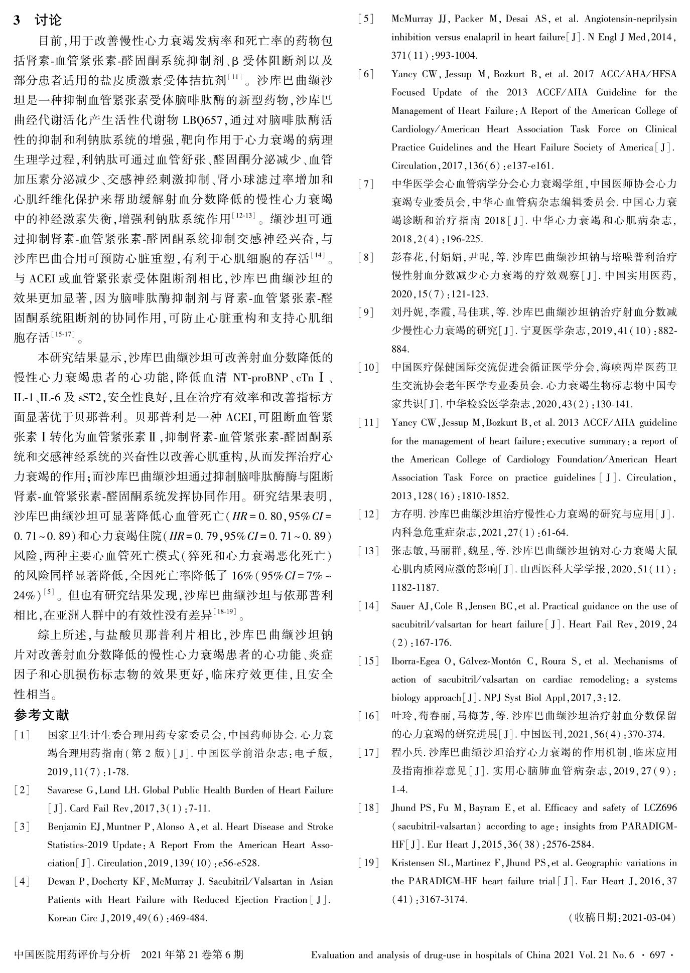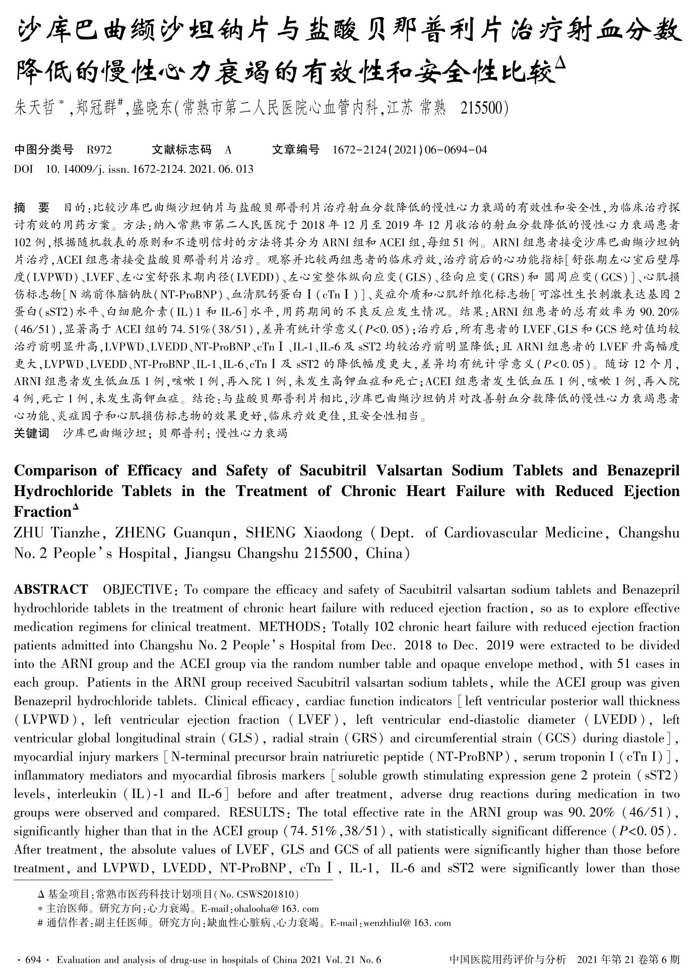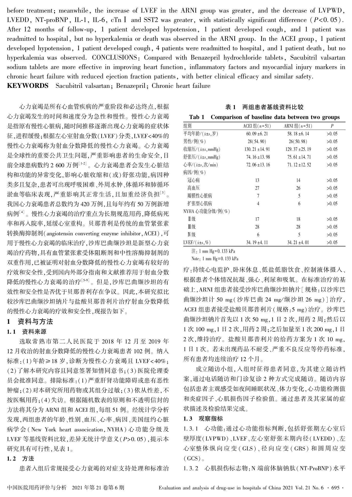 沙库巴曲缬沙坦钠片与盐酸贝那普利片治疗射血分数降低的慢性心力衰竭的有效性和安全性比较