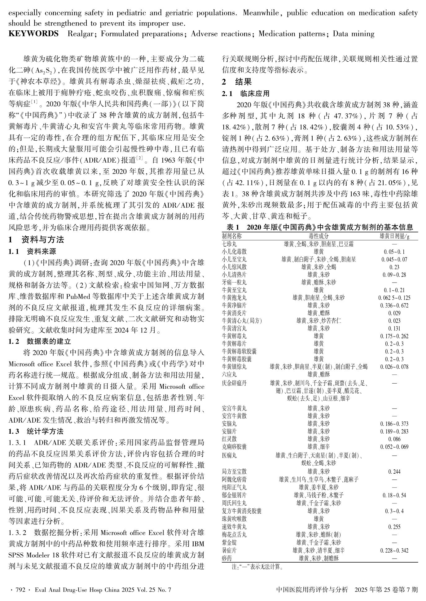 基于数据挖掘探讨含雄黄成方制剂相关不良反应的特点与用药规律