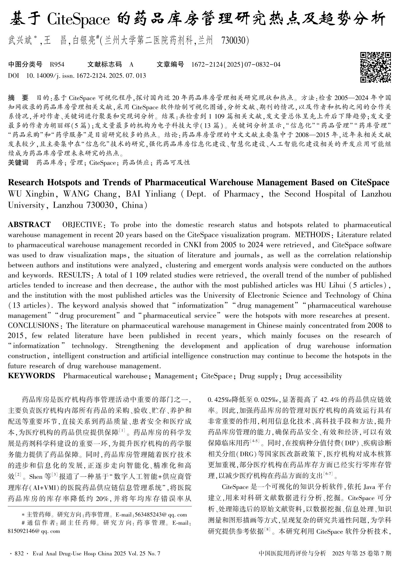 基于CiteSpace的药品库房管理研究热点及趋势分析
