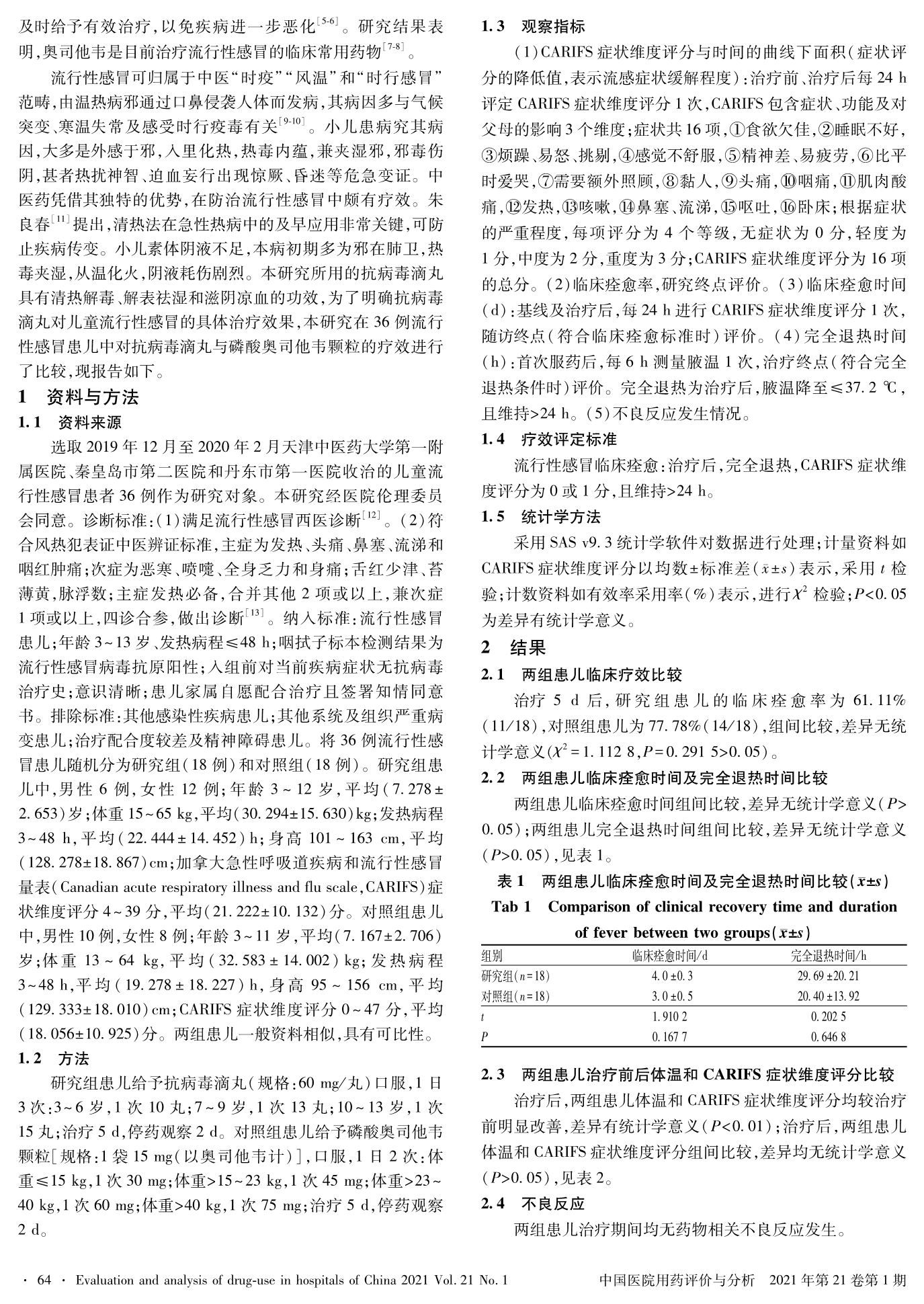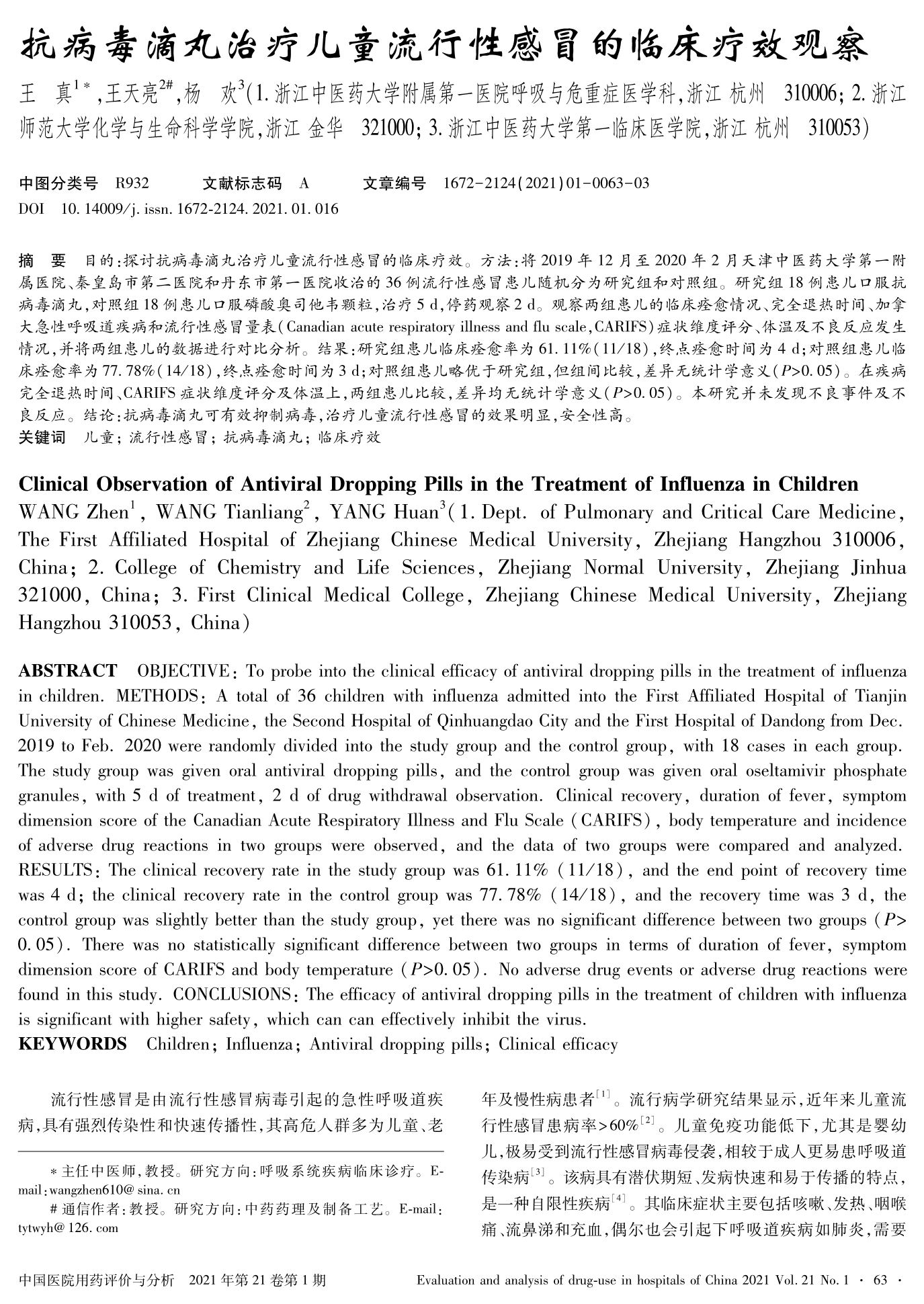 抗病毒滴丸治疗儿童流行性感冒的临床疗效观察