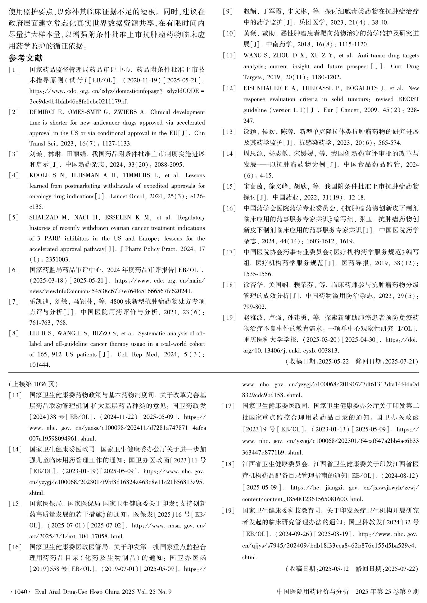 附条件批准上市的抗肿瘤药物的药学监护点与监护策略