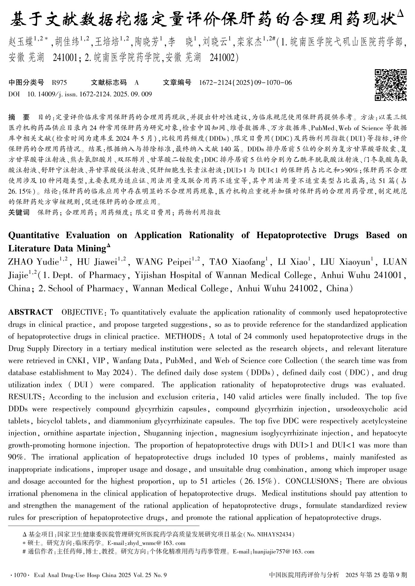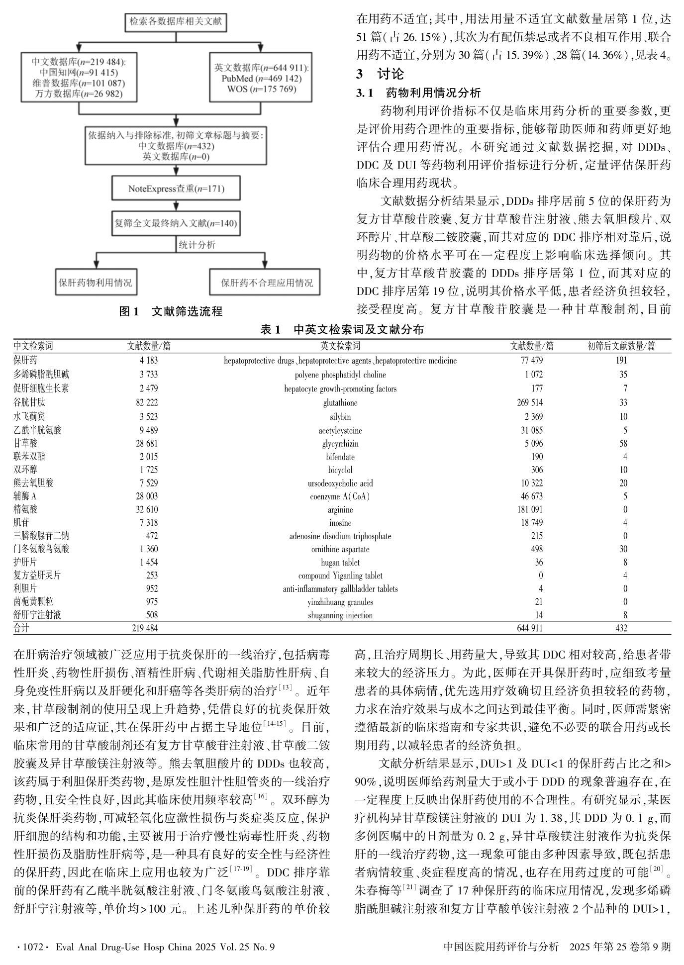 基于文献数据挖掘定量评价保肝药的合理用药现状