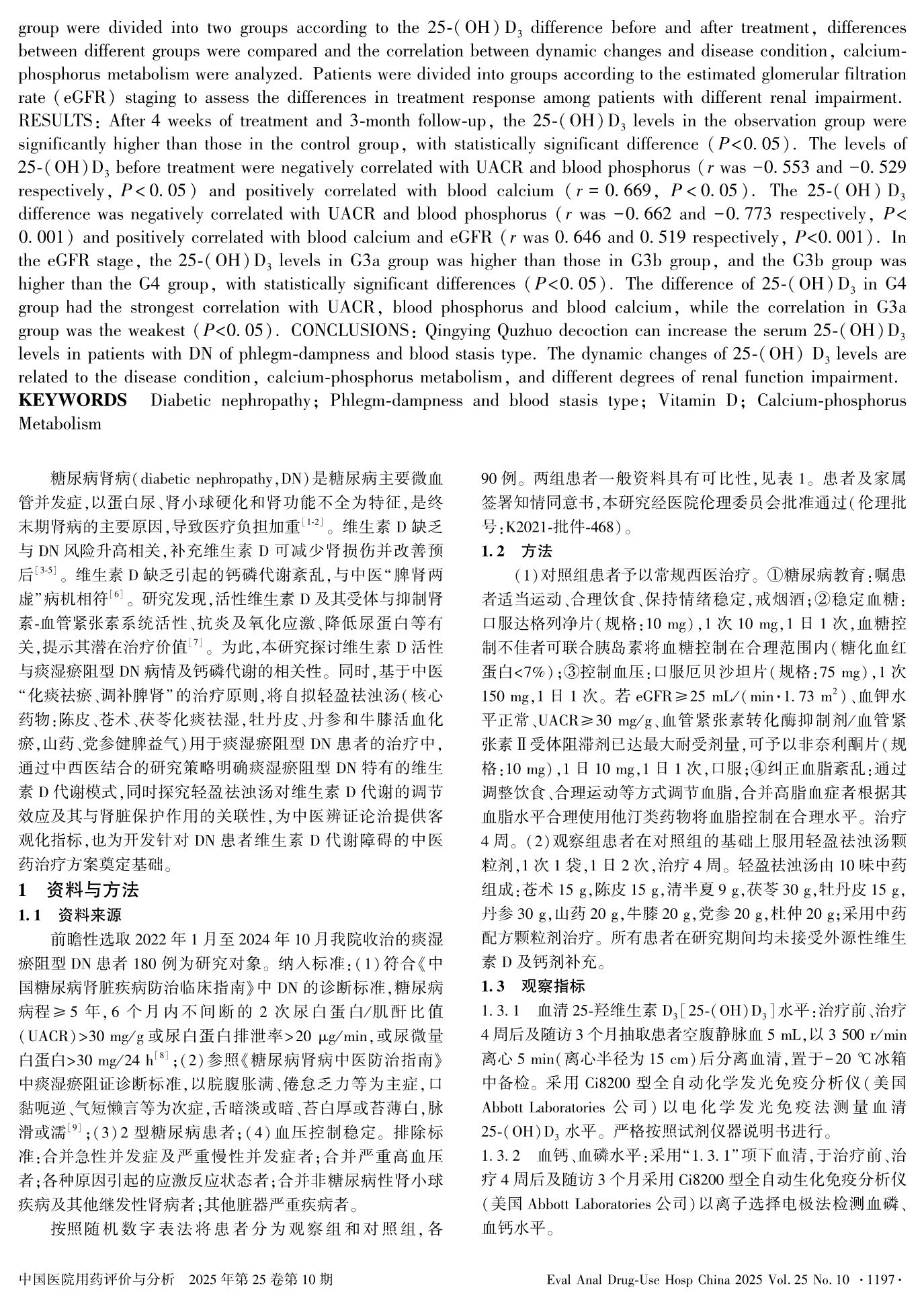 Effects of Qingying Quzhuo Decoction on Vitamin D Activity in Diabetic Nephropathy of Phlegm-Dampness and Blood Stasis Type and the Correlation Between Vitamin D Activity and the Disease Condition as well as Calcium-Phosphorus Metabolism
