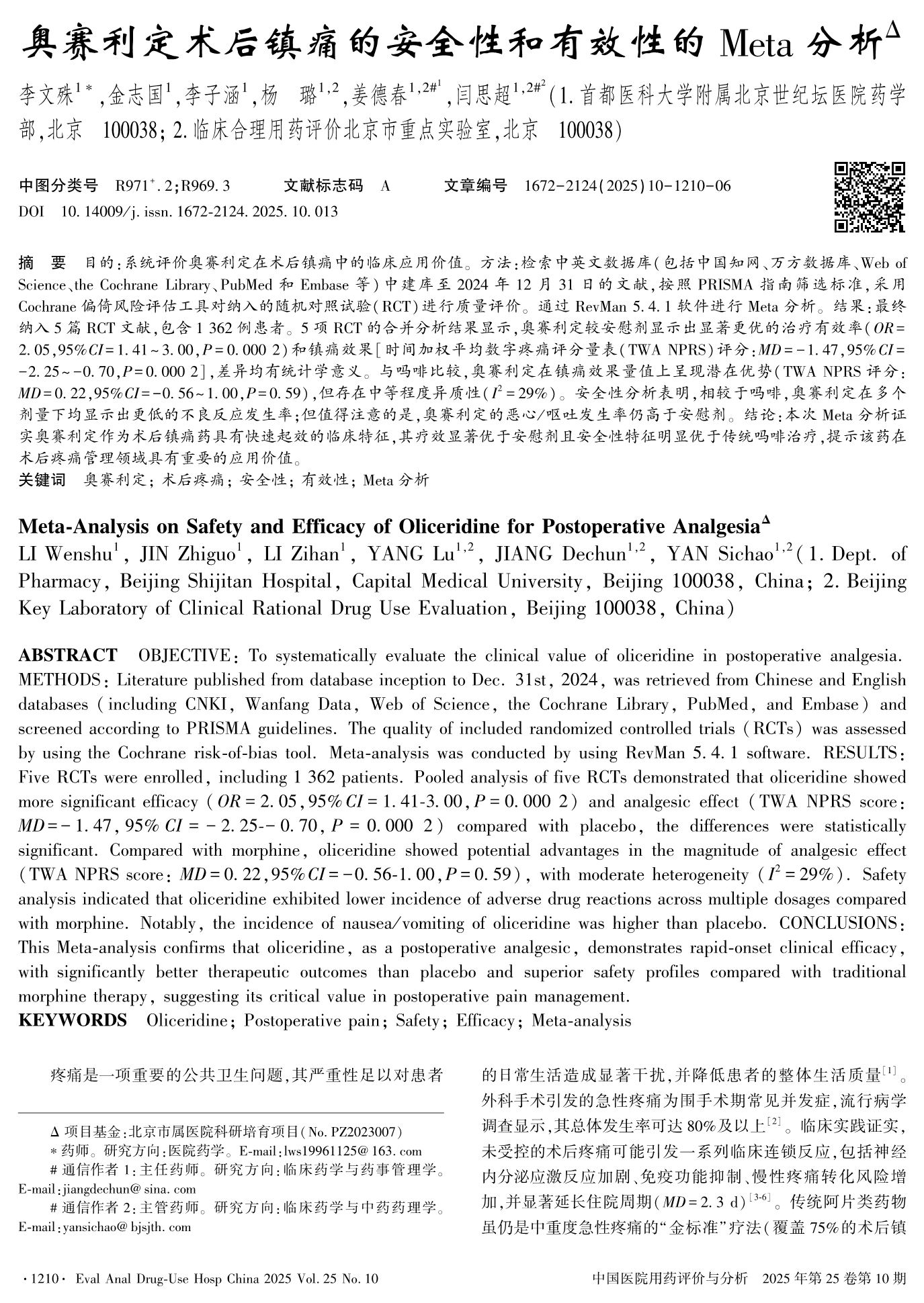 Meta-Analysis on Safety and Efficacy of Oliceridine for Postoperative Analgesia
