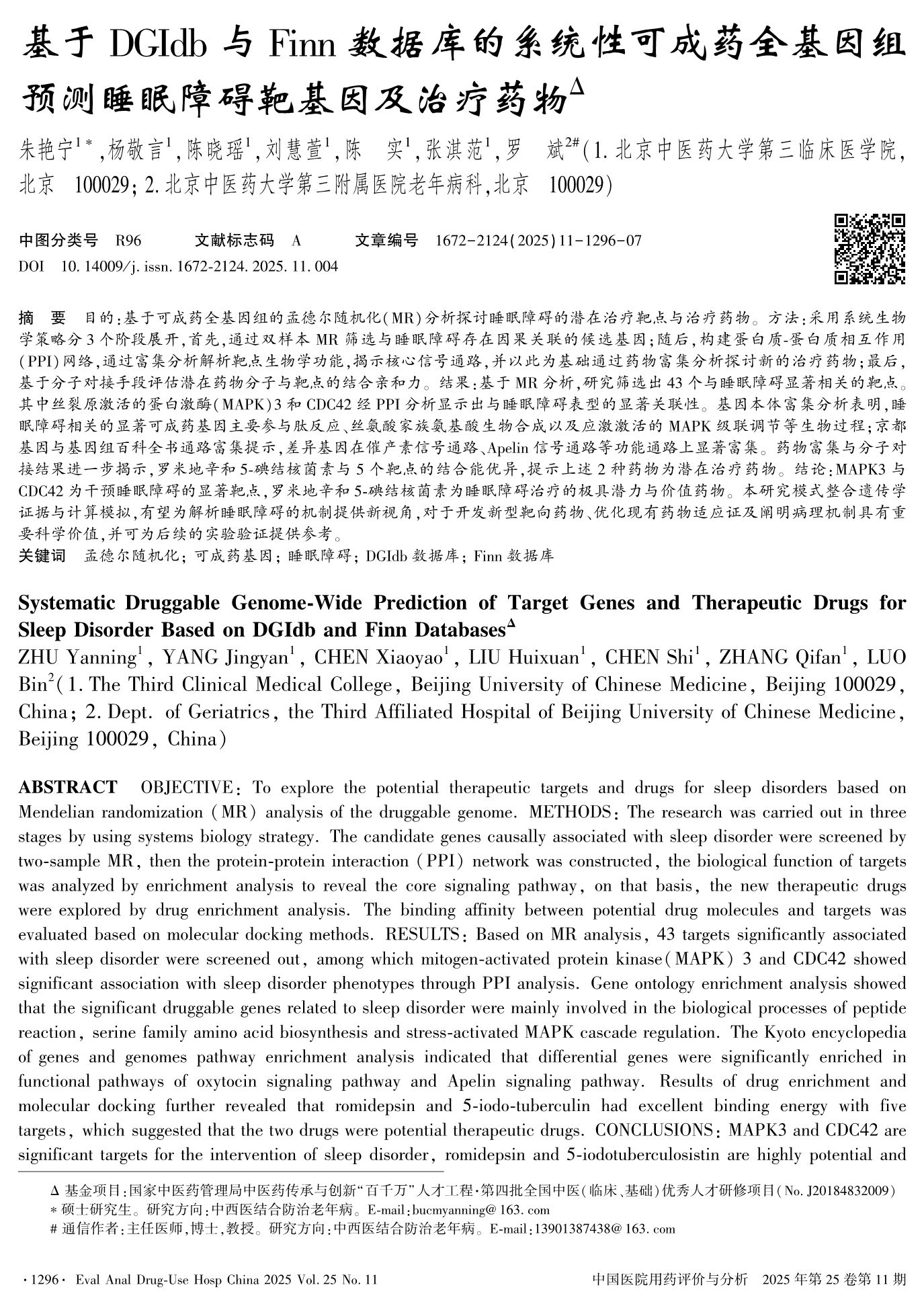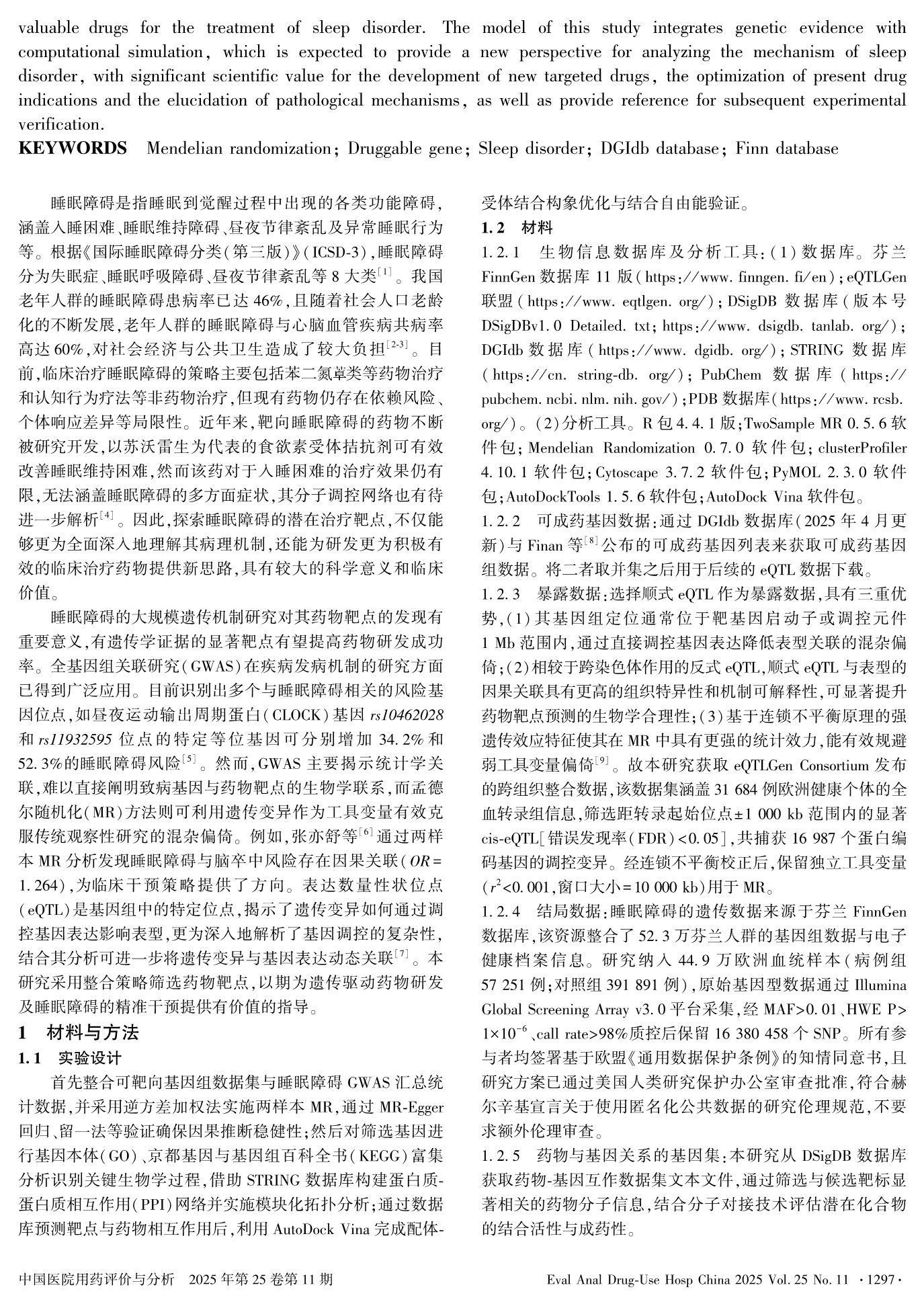 基于DGIdb与Finn数据库的系统性可成药全基因组预测睡眠障碍靶基因及治疗药物