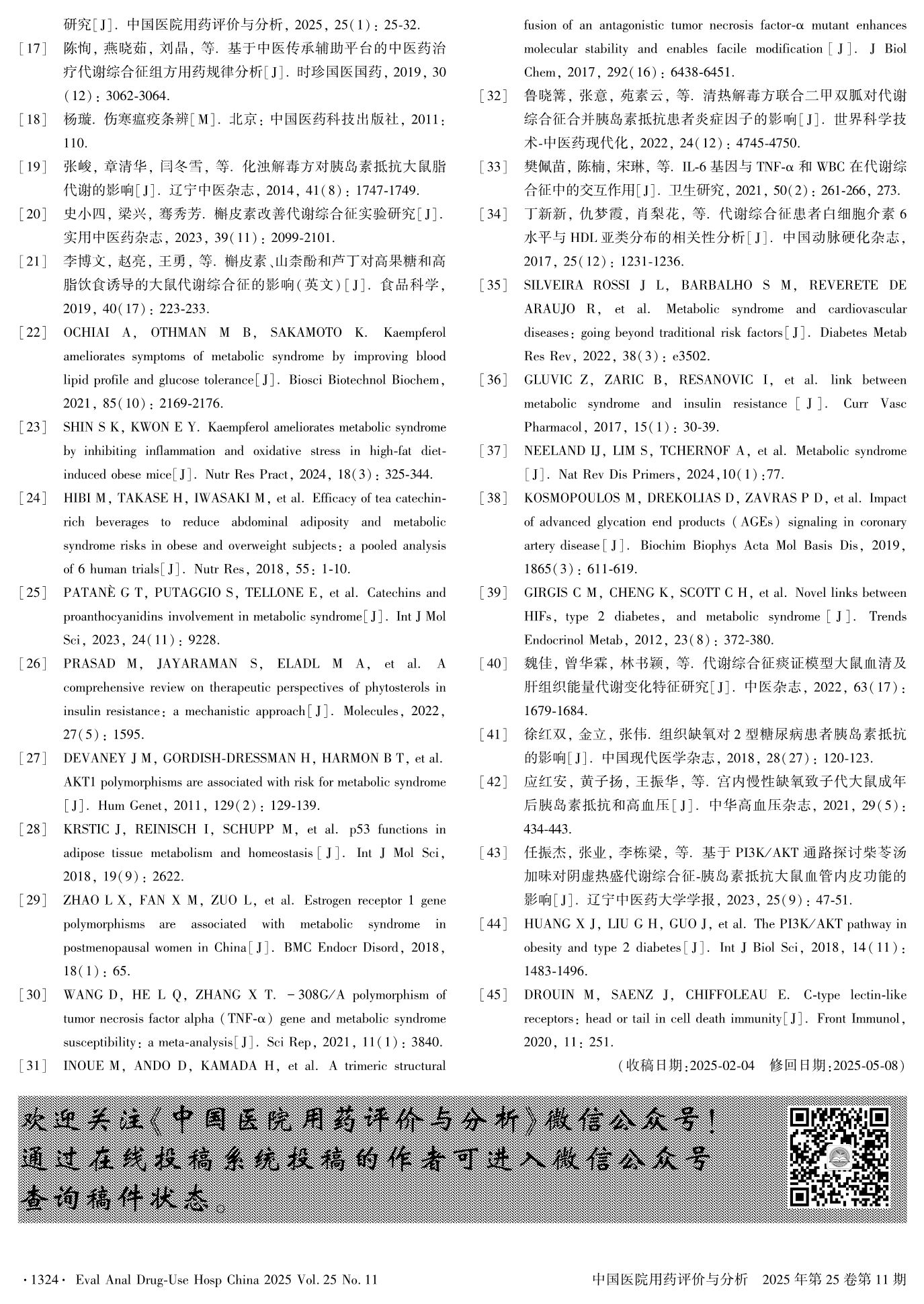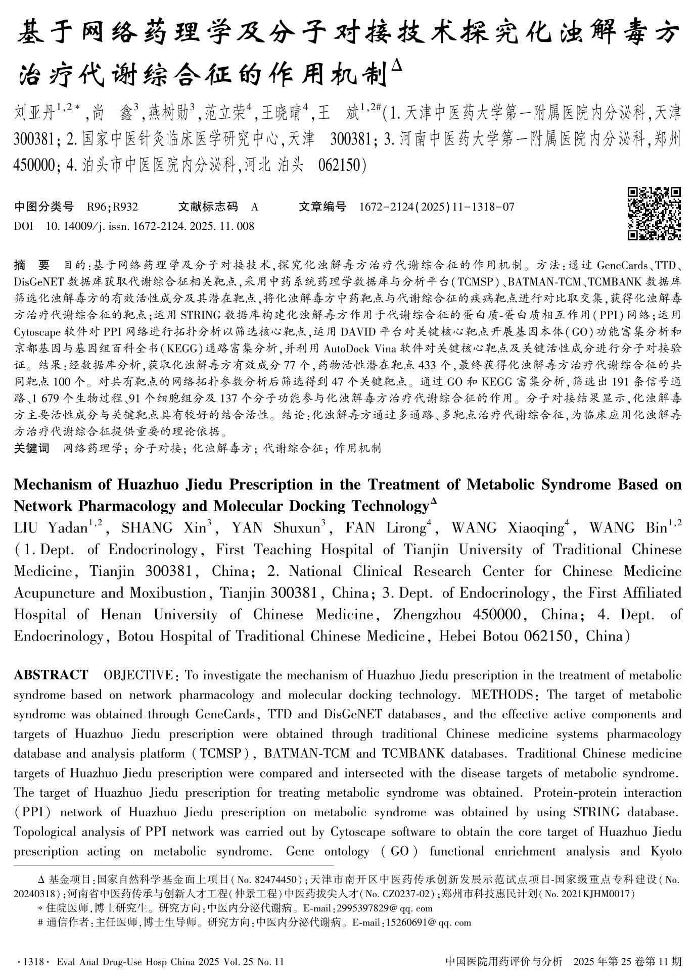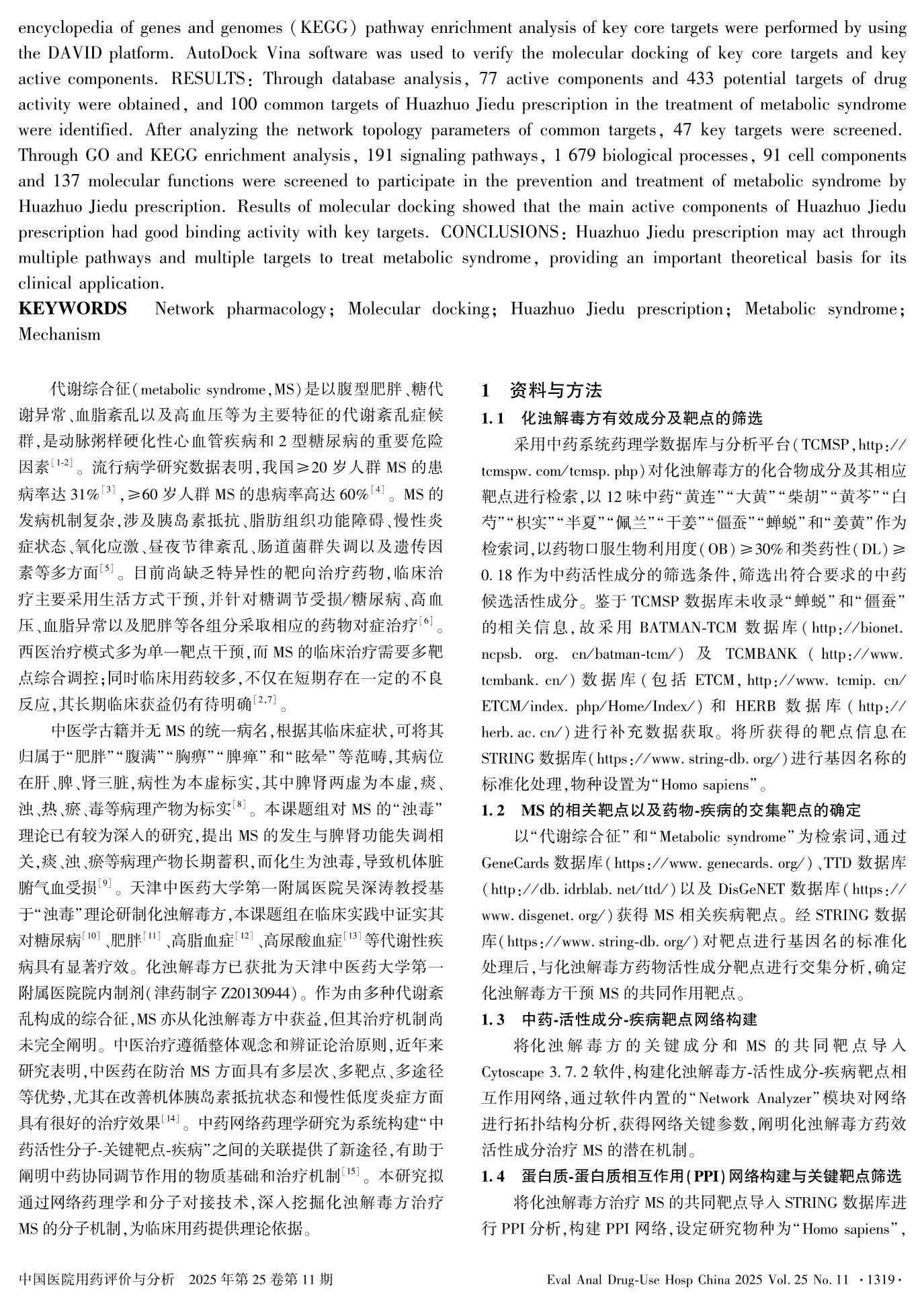 基于网络药理学及分子对接技术探究化浊解毒方治疗代谢综合征的作用机制