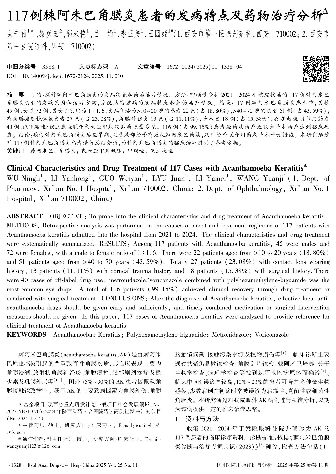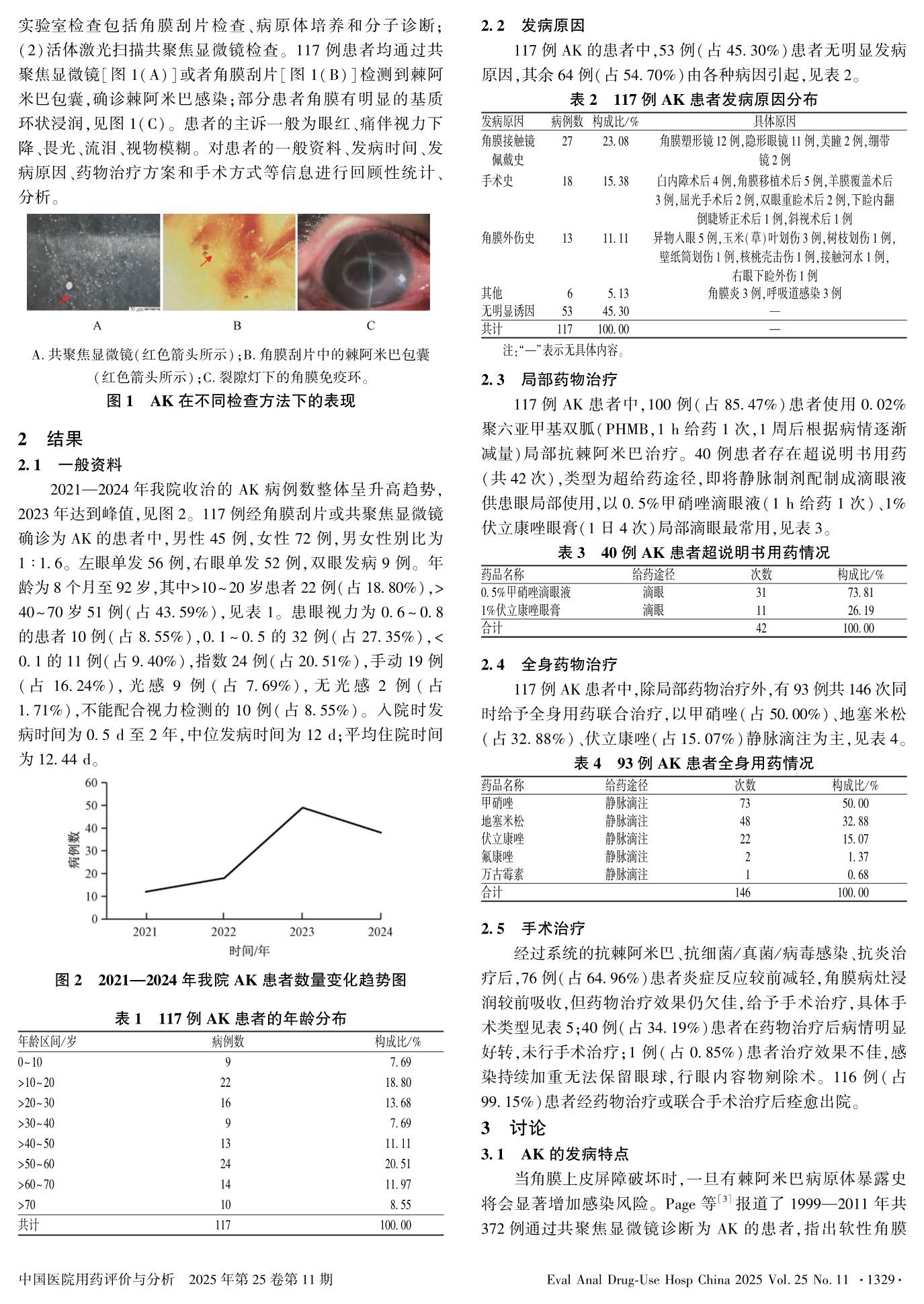 117例棘阿米巴角膜炎患者的发病特点及药物治疗分析