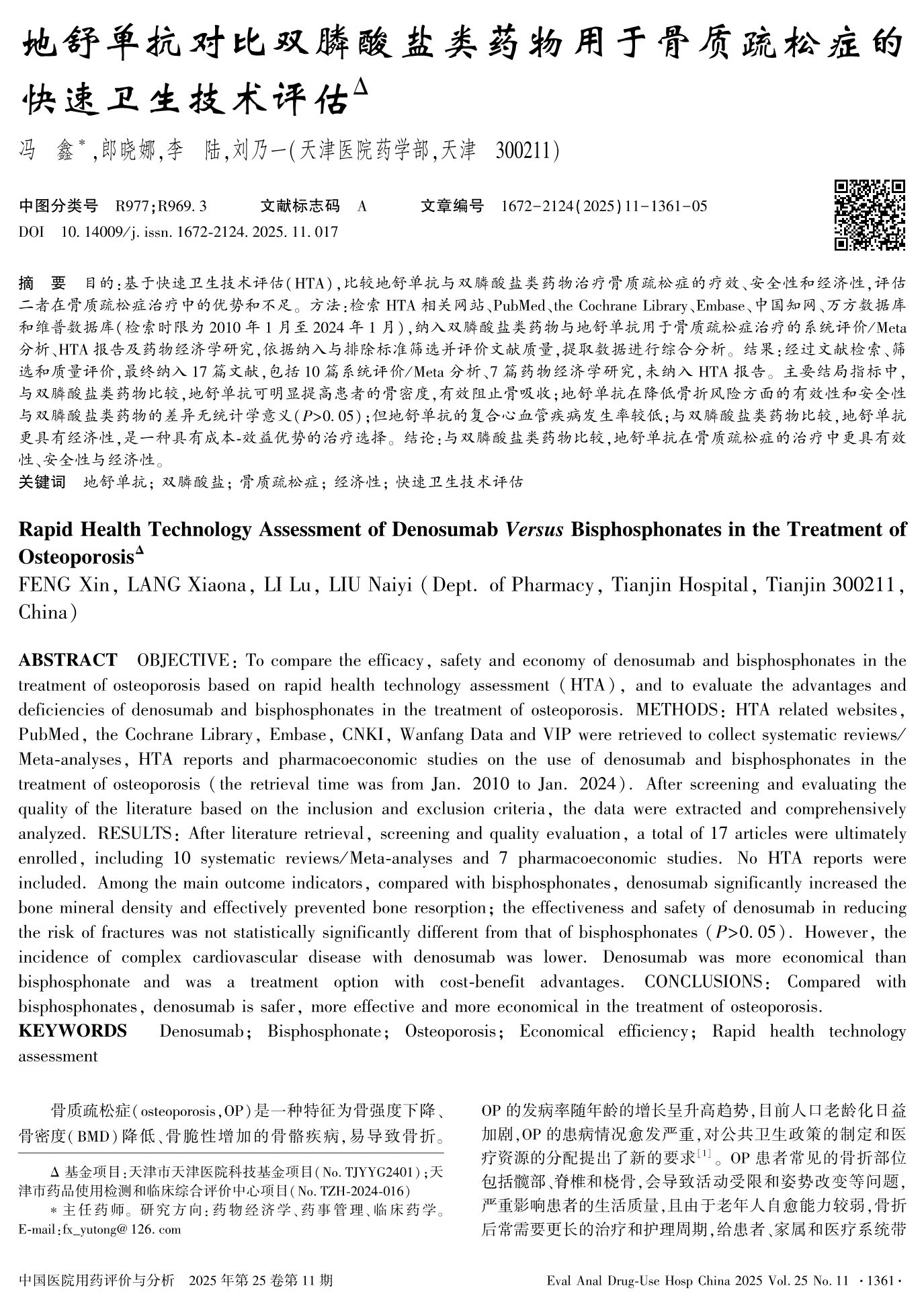 地舒单抗对比双膦酸盐类药物用于骨质疏松症的快速卫生技术评估