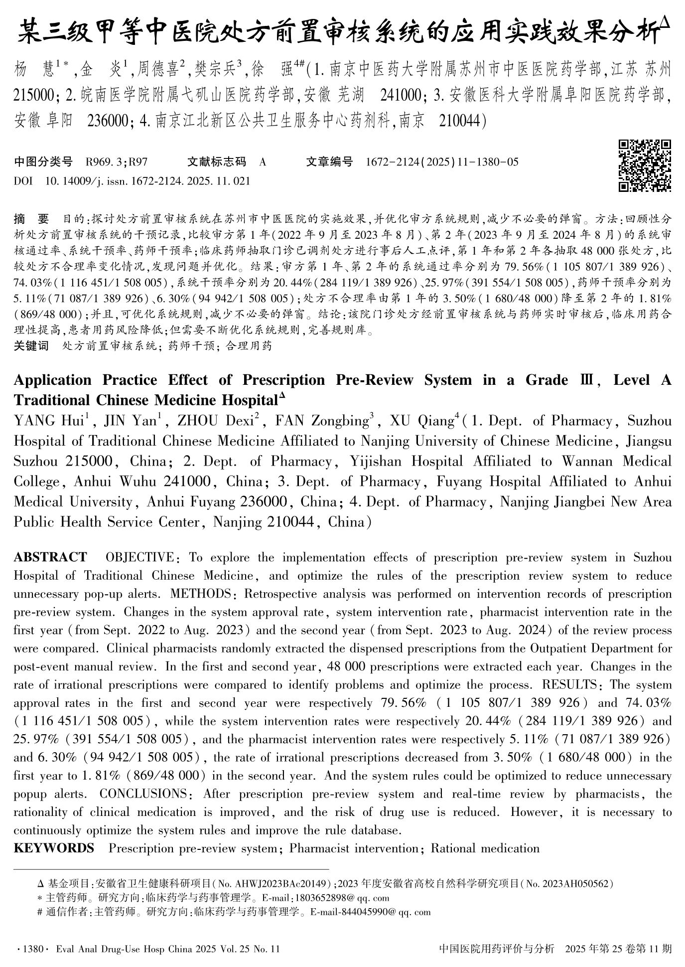 某三级甲等中医院处方前置审核系统的应用实践效果分析
