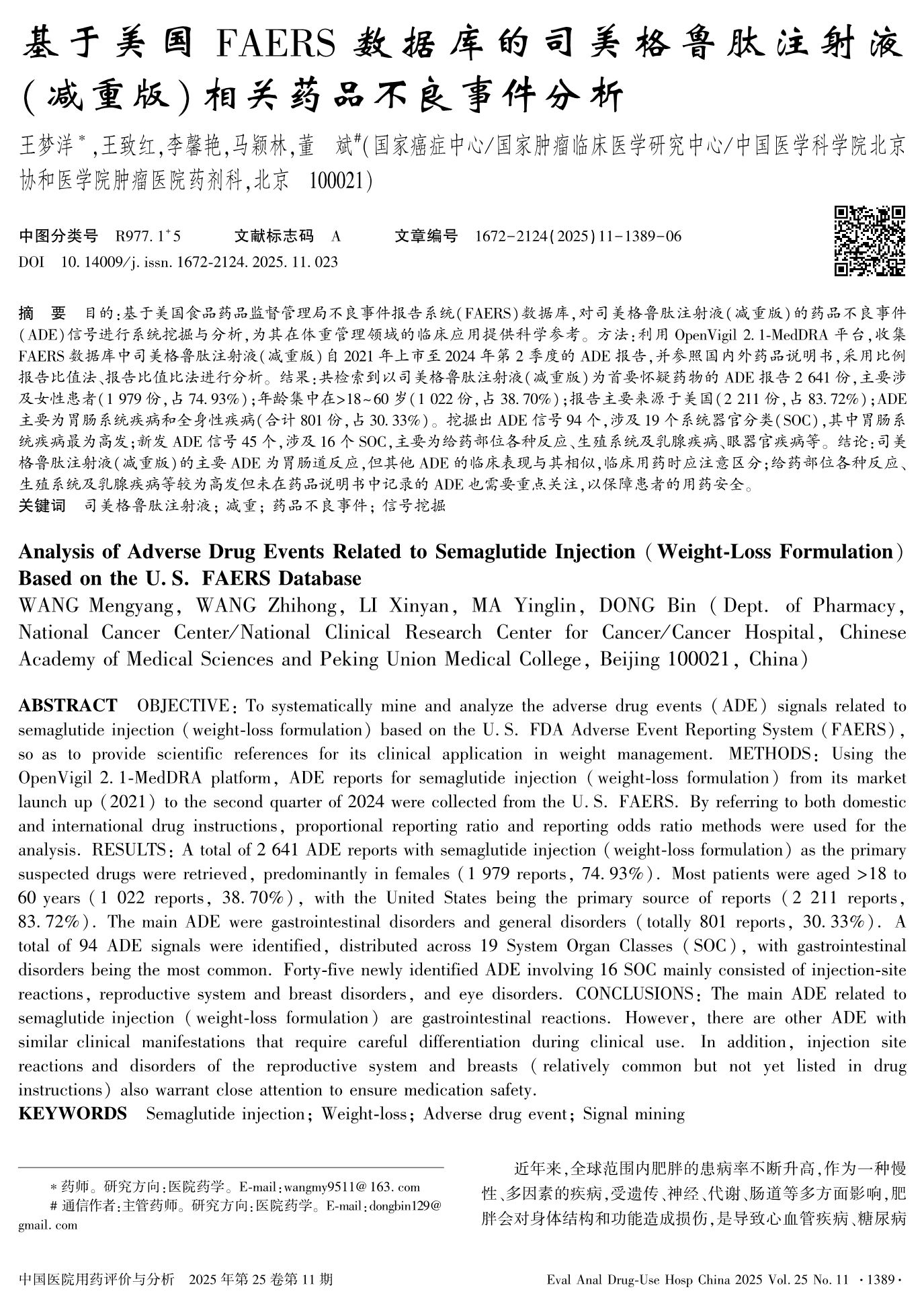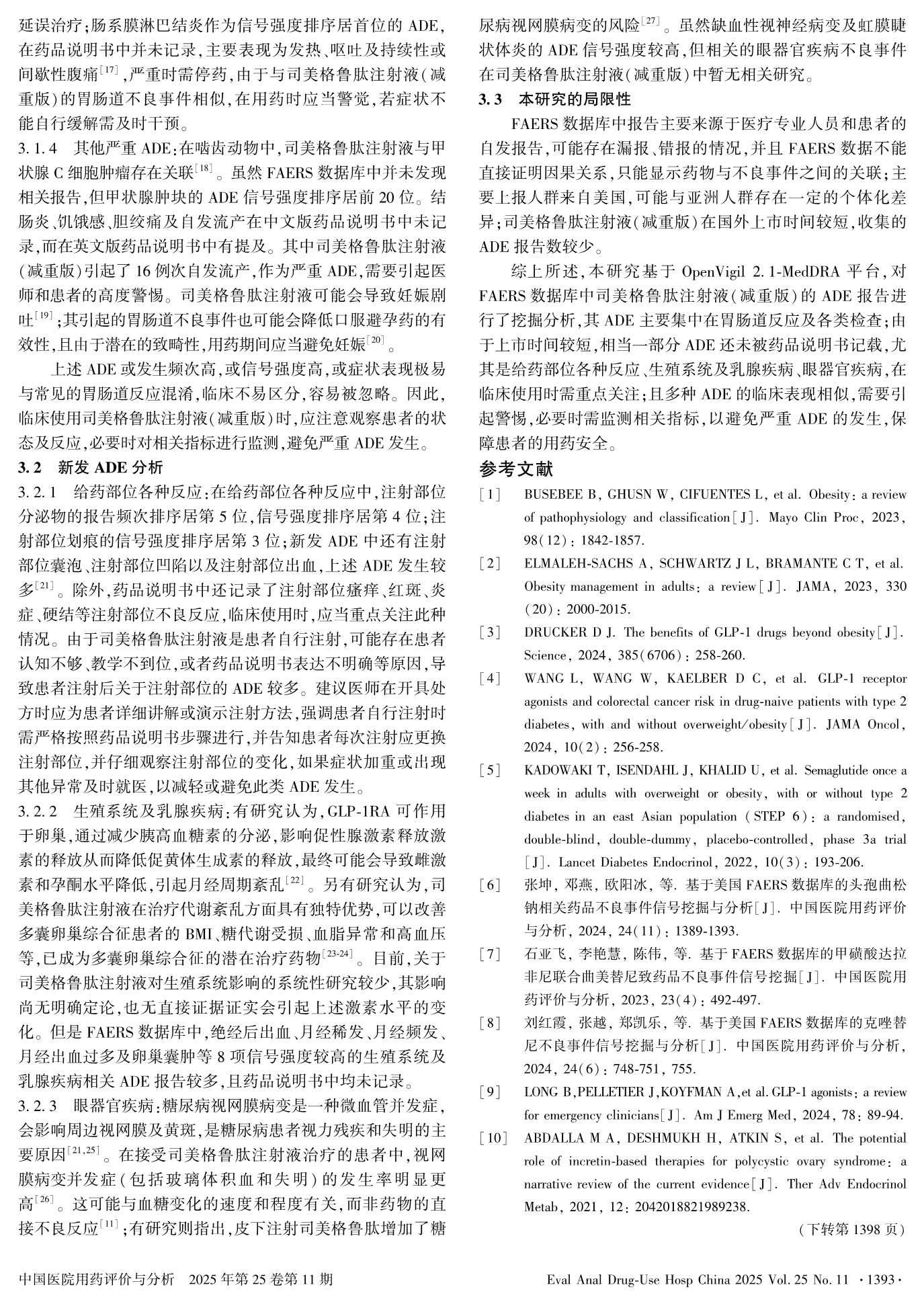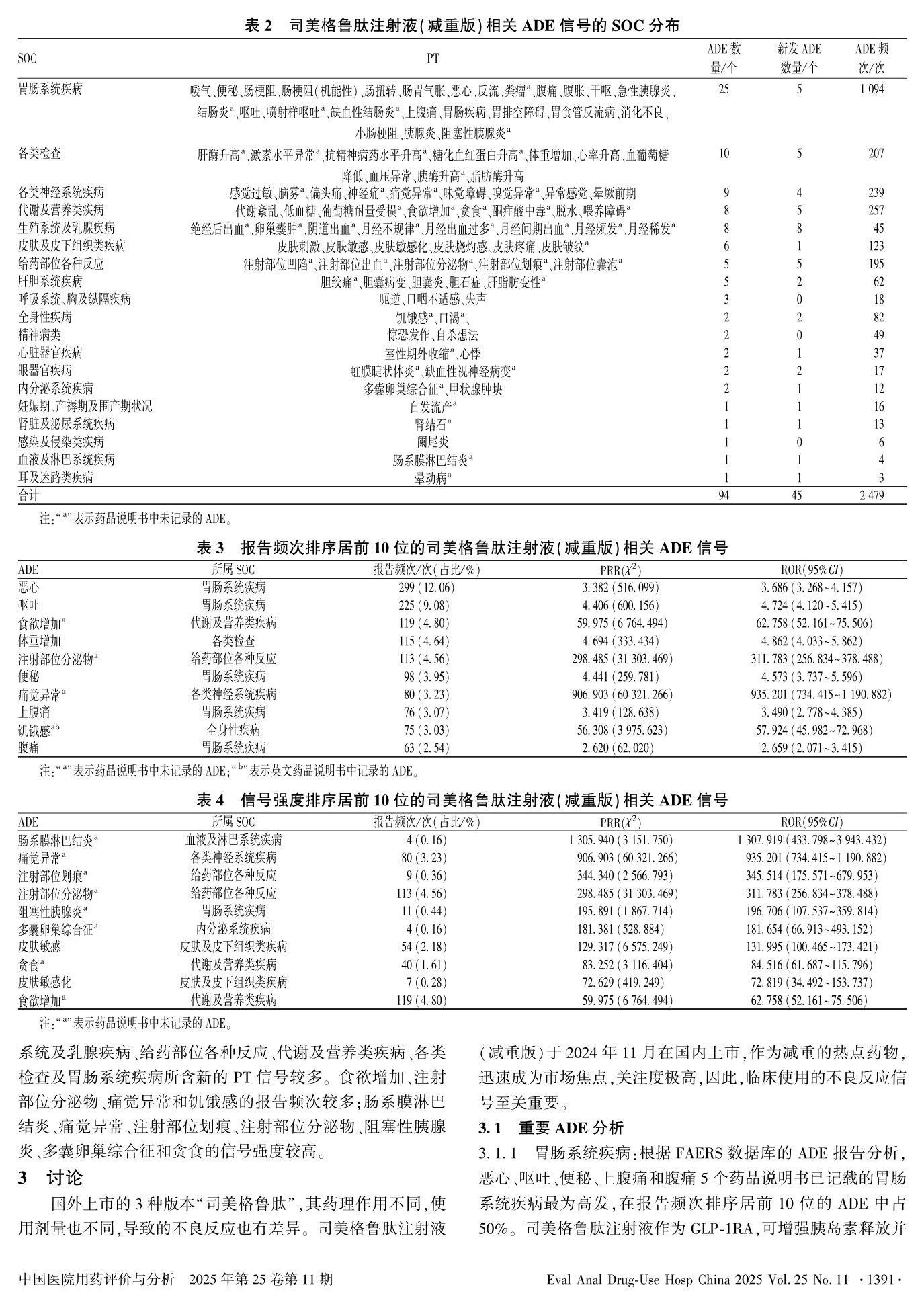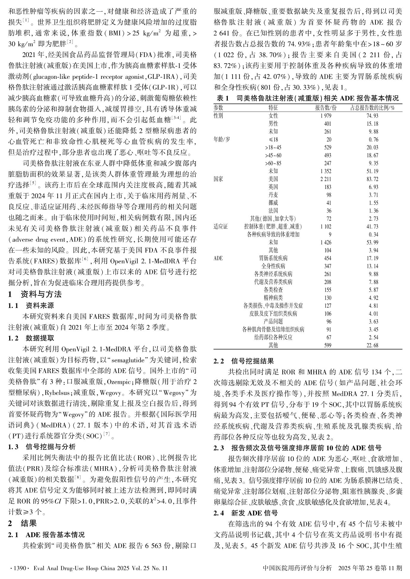 基于美国FAERS数据库的司美格鲁肽注射液(减重版)相关药品不良事件分析