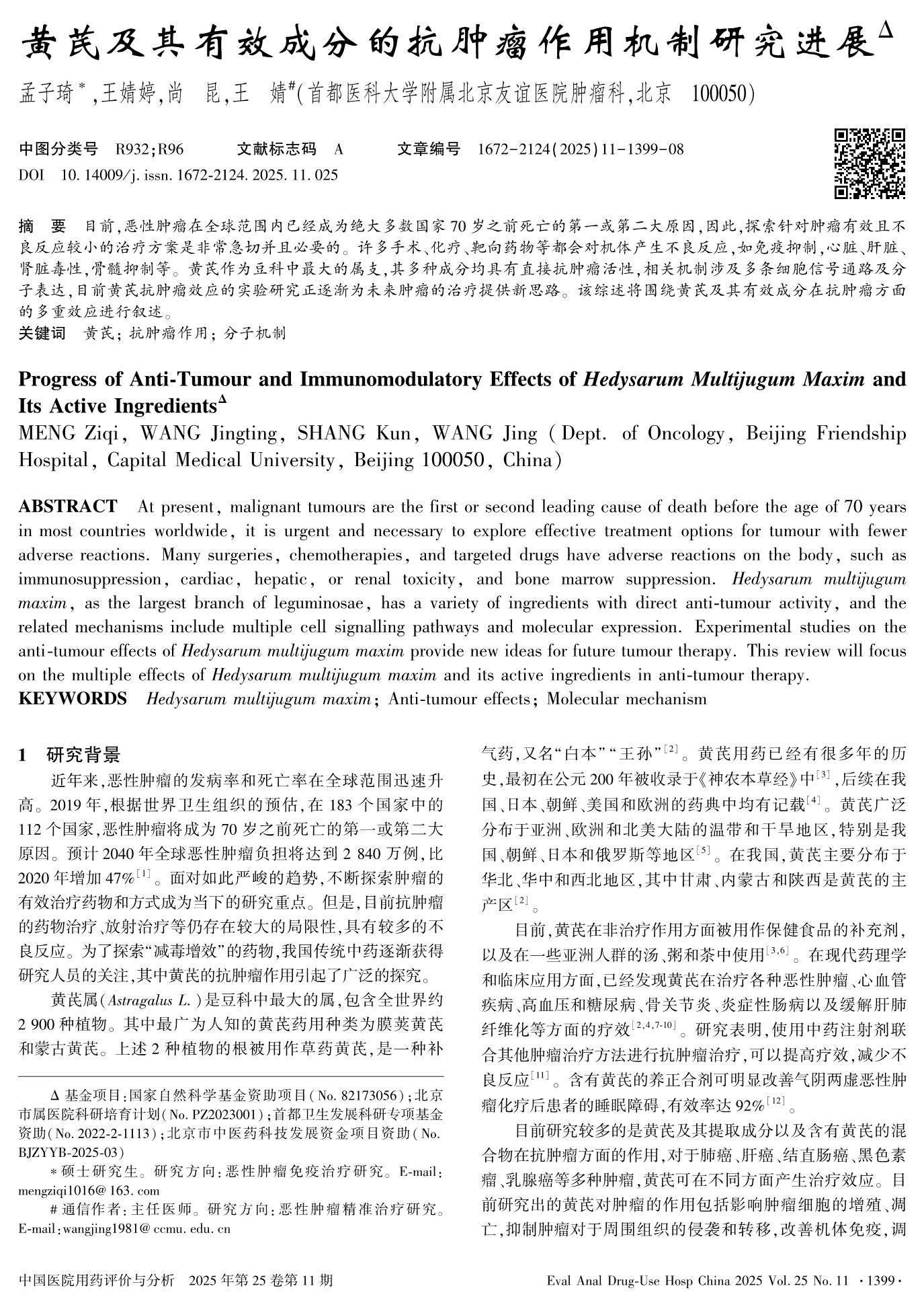 黄芪及其有效成分的抗肿瘤作用机制研究进展