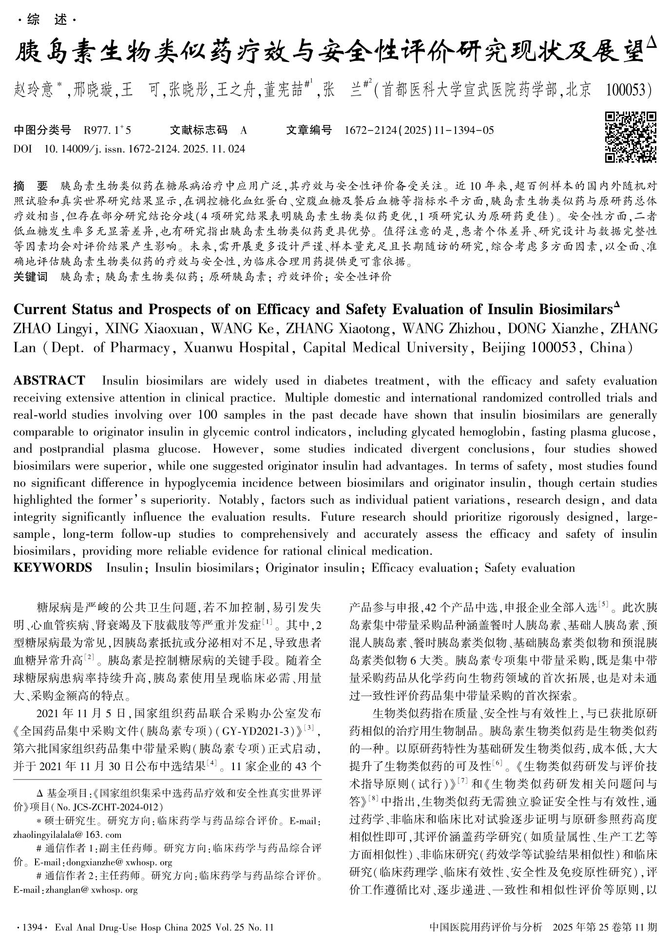 胰岛素生物类似药疗效与安全性评价研究现状及展望
