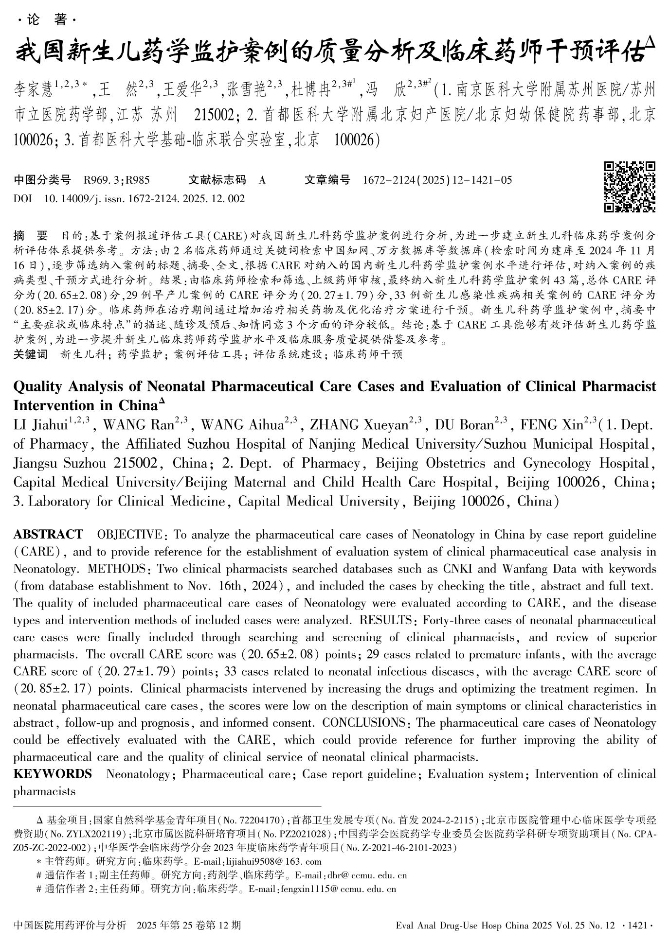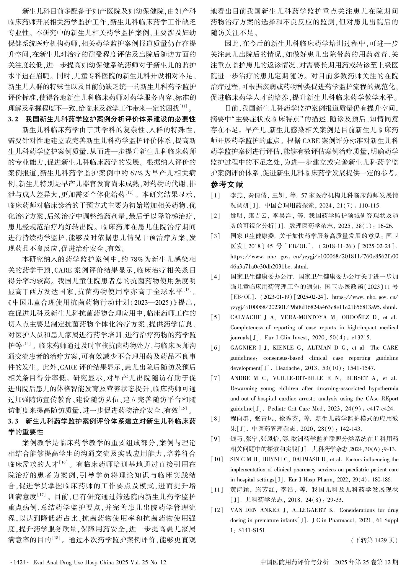 我国新生儿药学监护案例的质量分析及临床药师干预评估