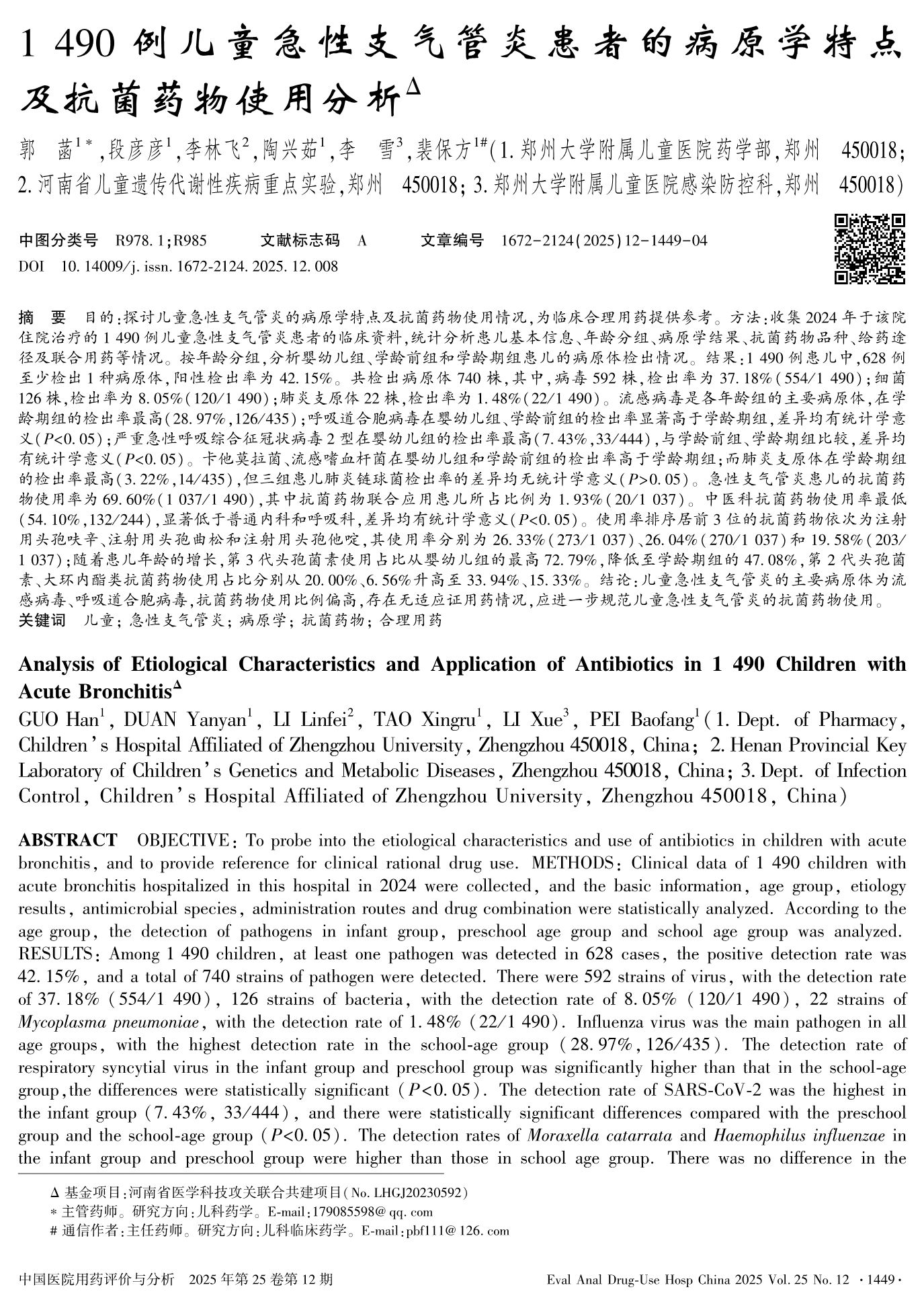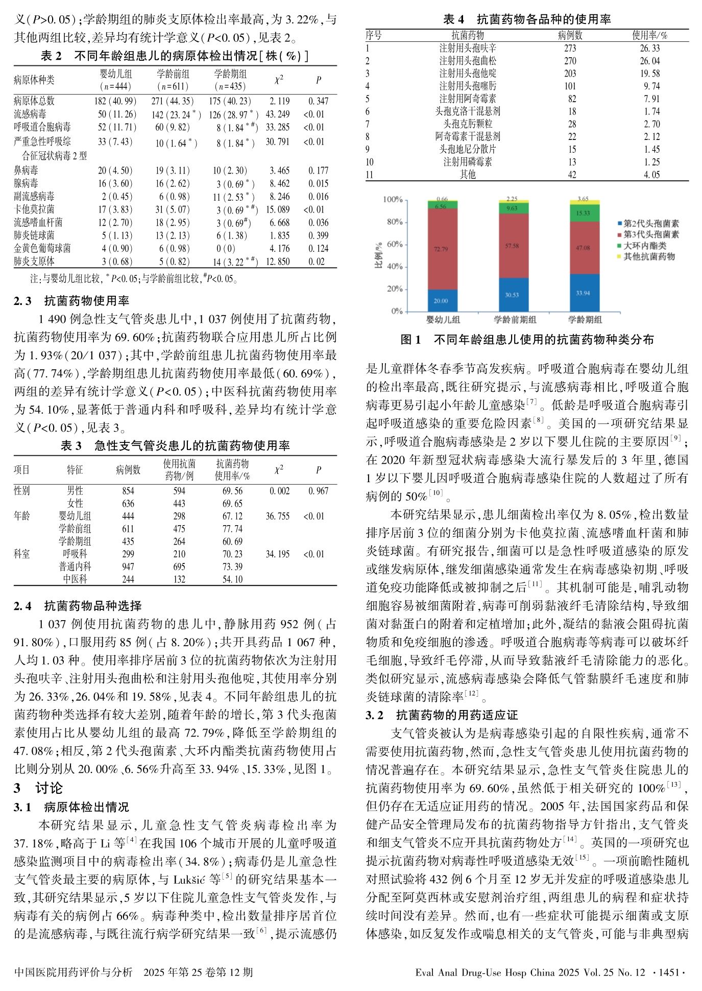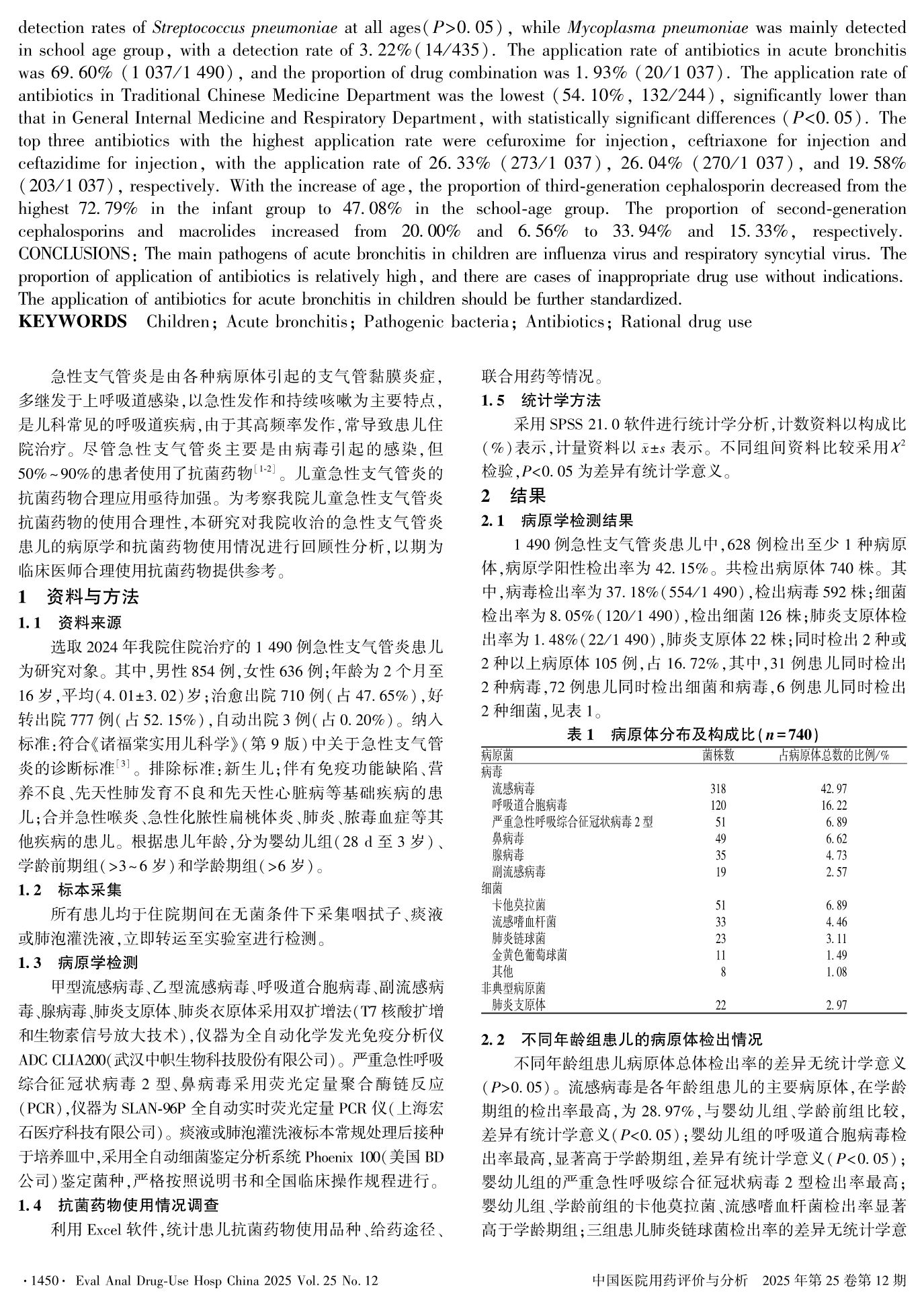 Analysis of Etiological Characteristics and Application of Antibiotics in 1 490 Children with Acute Bronchitis