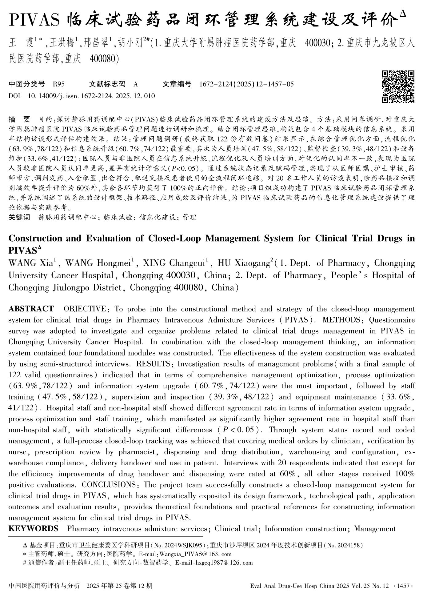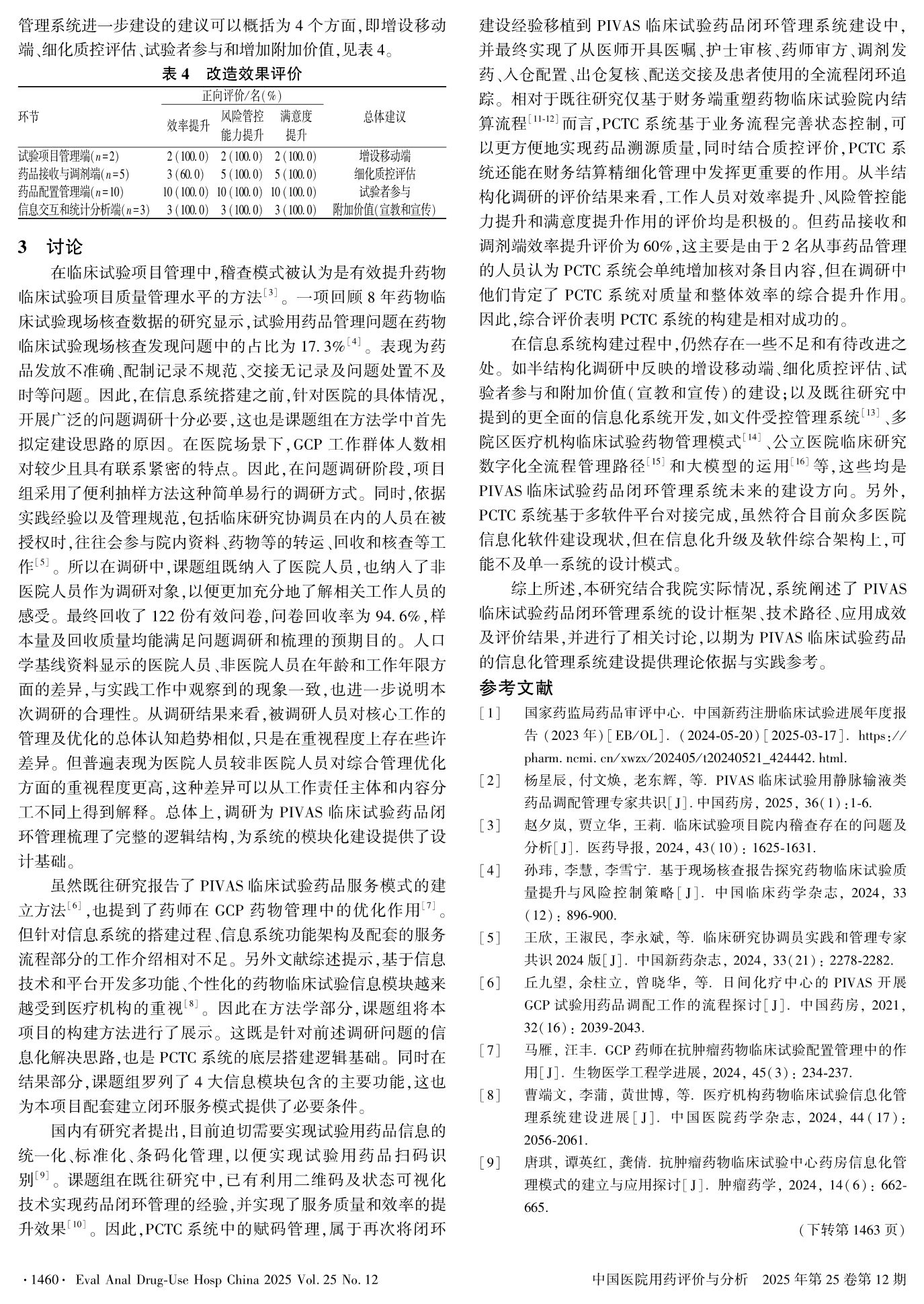 PIVAS临床试验药品闭环管理系统建设及评价