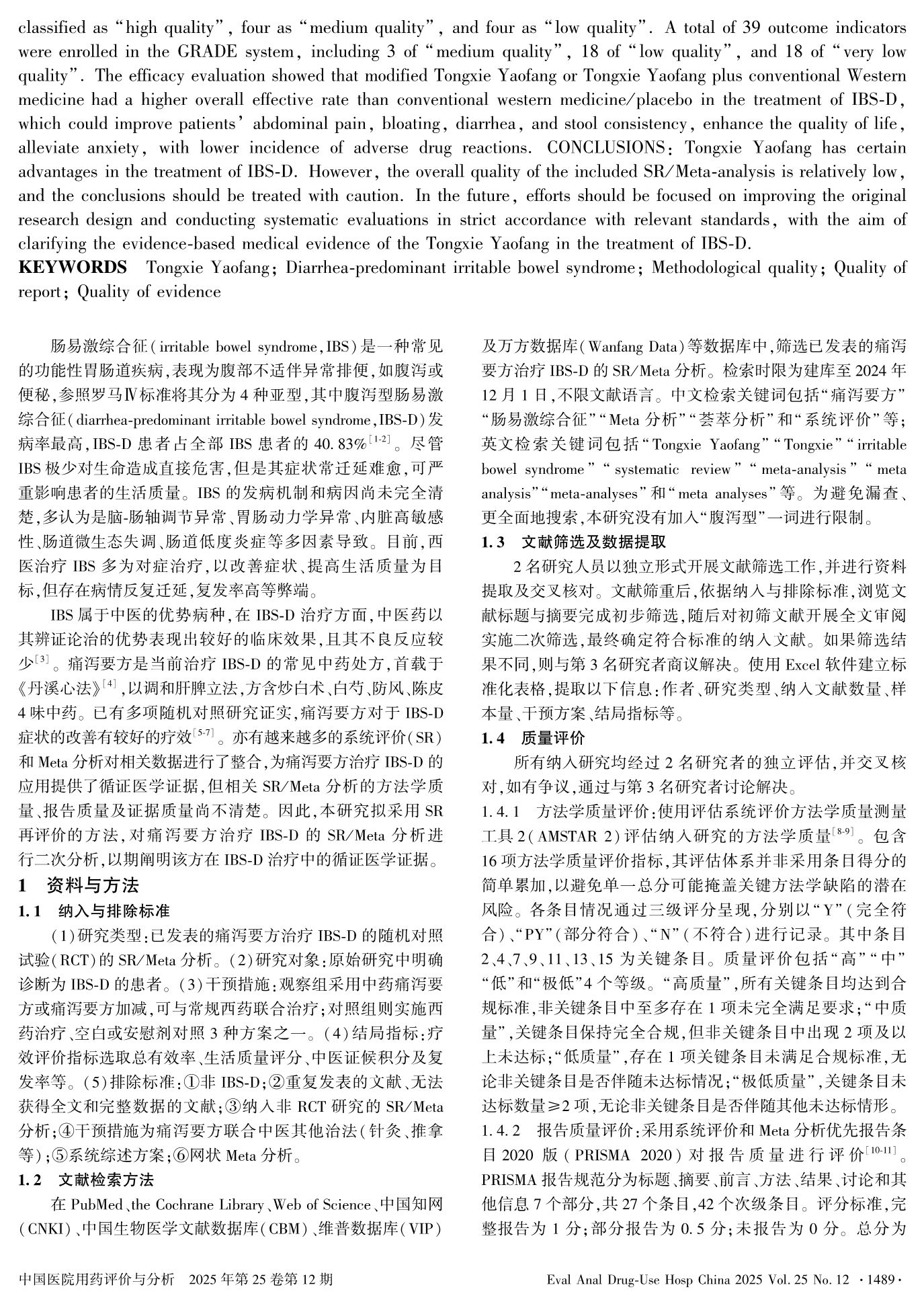 痛泻要方治疗腹泻型肠易激综合征的系统评价/Meta分析的再评价