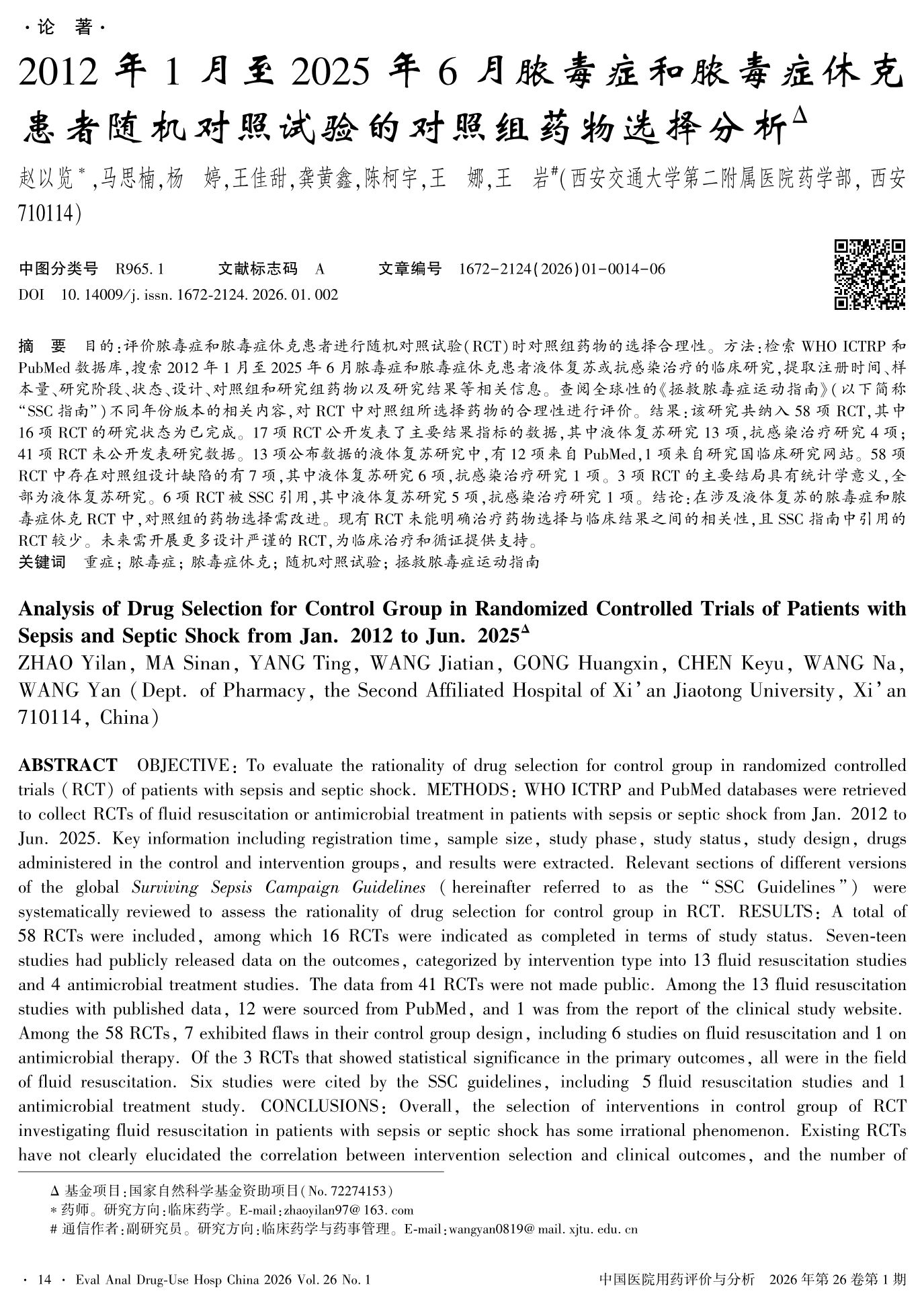 Analysis of Drug Selection for Control Group in Randomized Controlled Trials of Patients with Sepsis and Septic Shock from Jan. 2012 to Jun. 2025