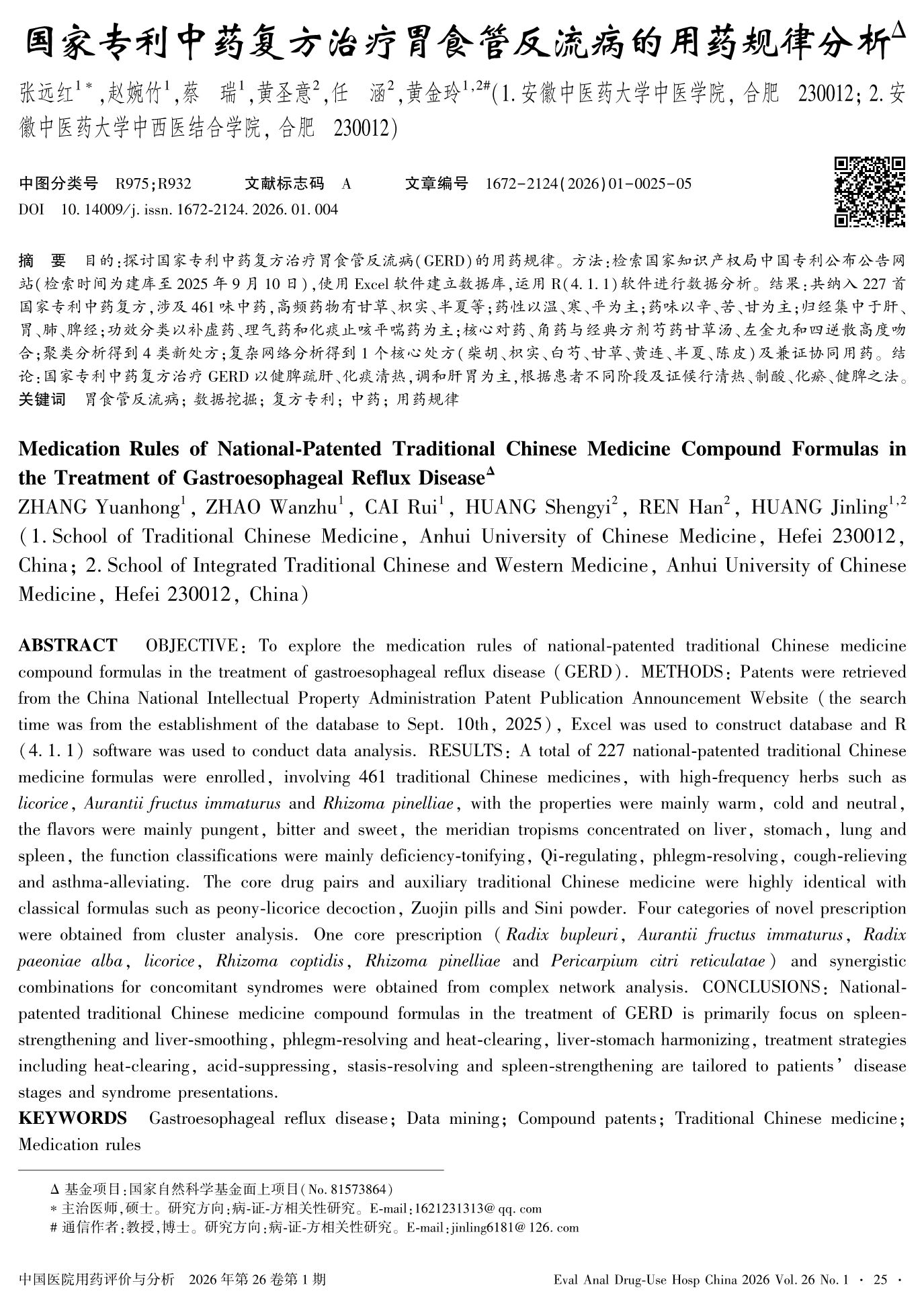 国家专利中药复方治疗胃食管反流病的用药规律分析