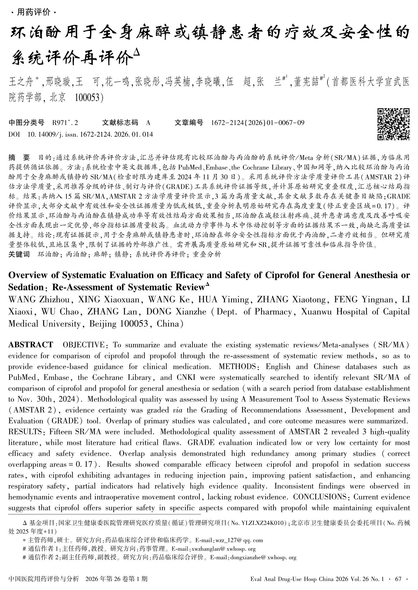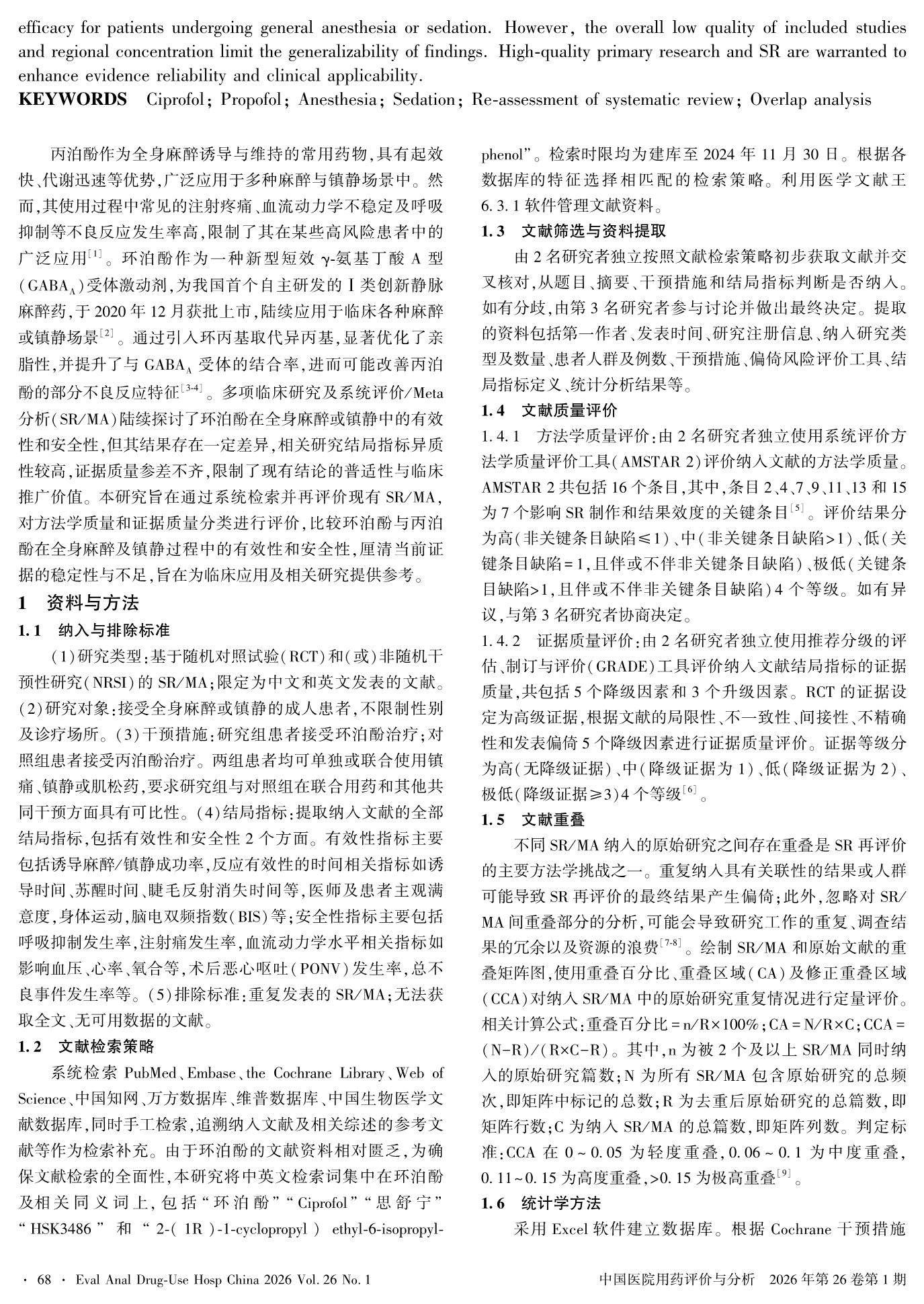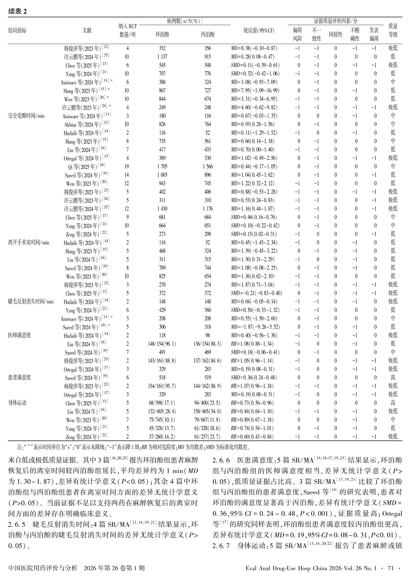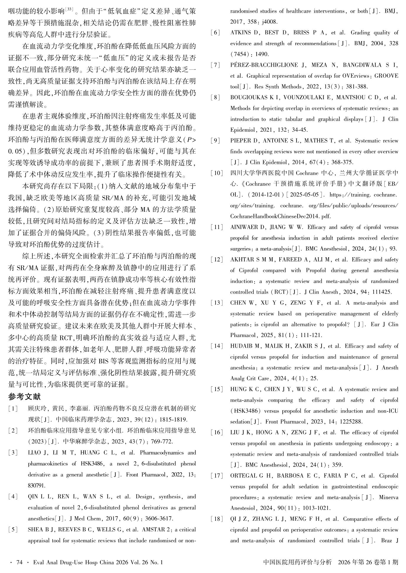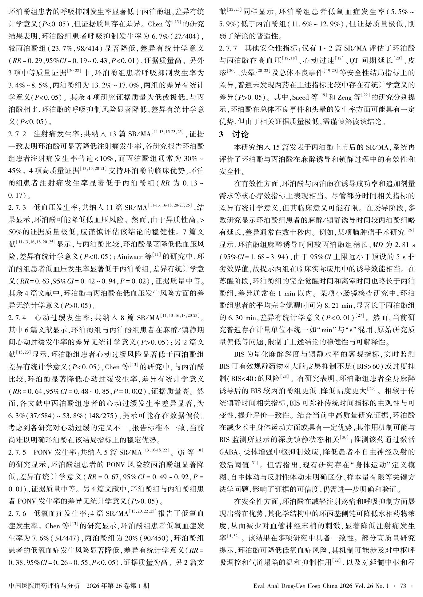 环泊酚用于全身麻醉或镇静患者的疗效及安全性的系统评价再评价