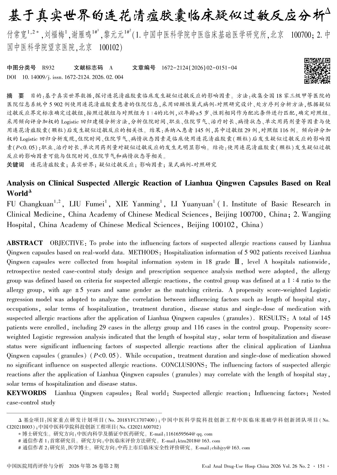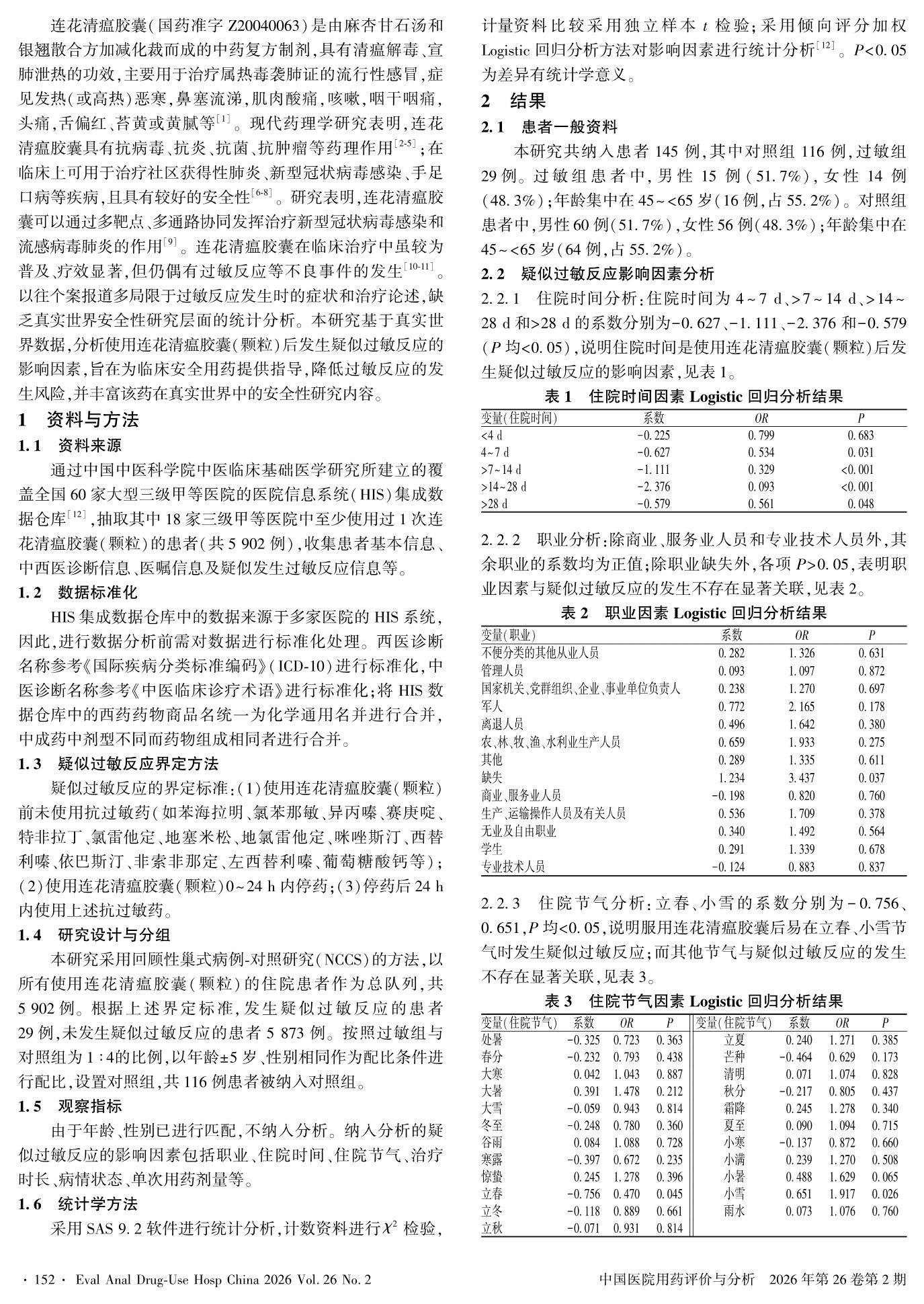 基于真实世界的连花清瘟胶囊临床疑似过敏反应分析
