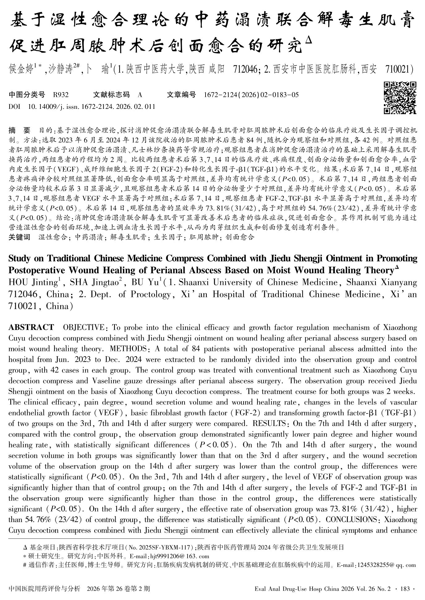 Study on Traditional Chinese Medicine Compress Combined with Jiedu Shengji Ointment in Promoting Postoperative Wound Healing of Perianal Abscess Based on Moist Wound Healing Theory