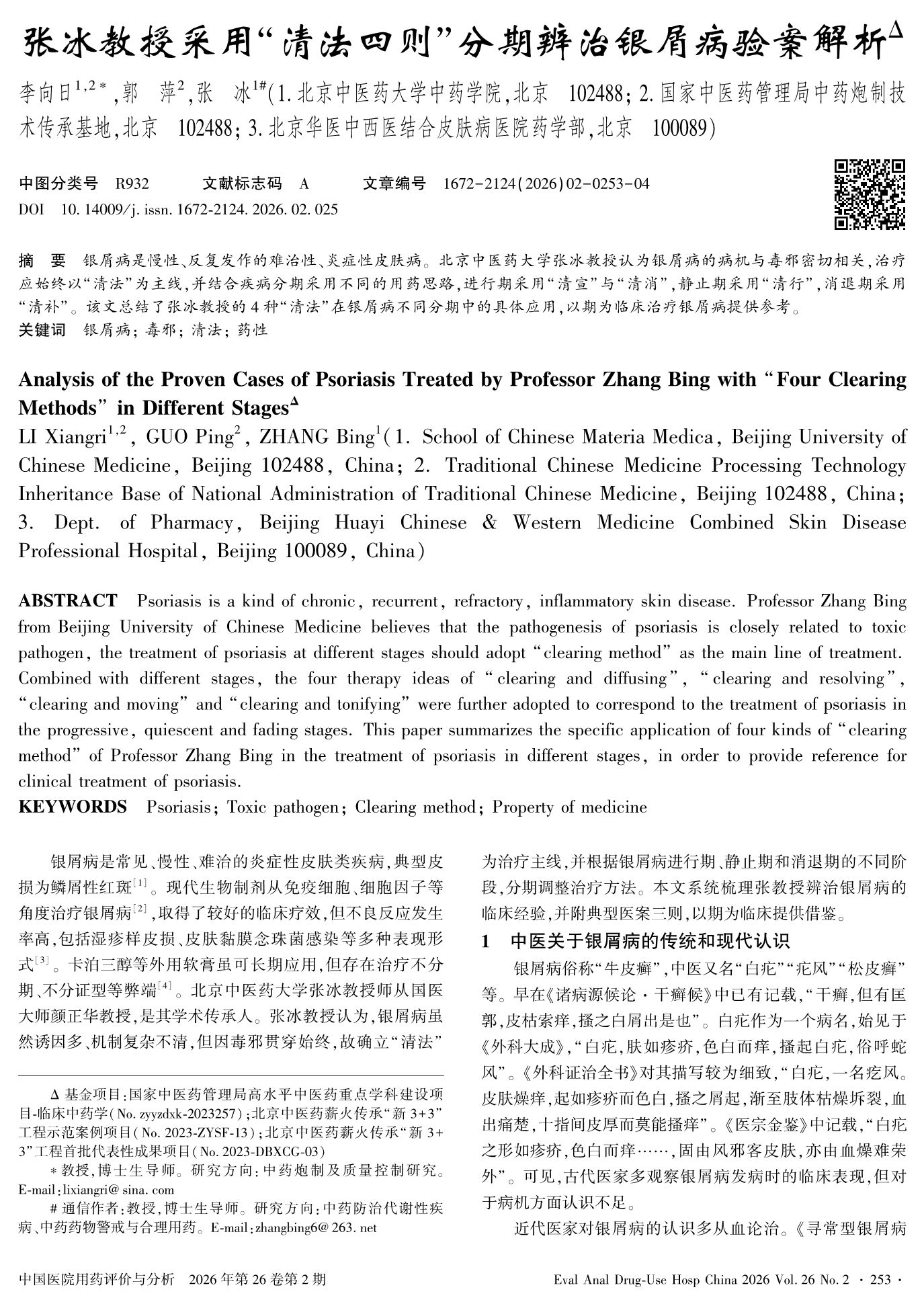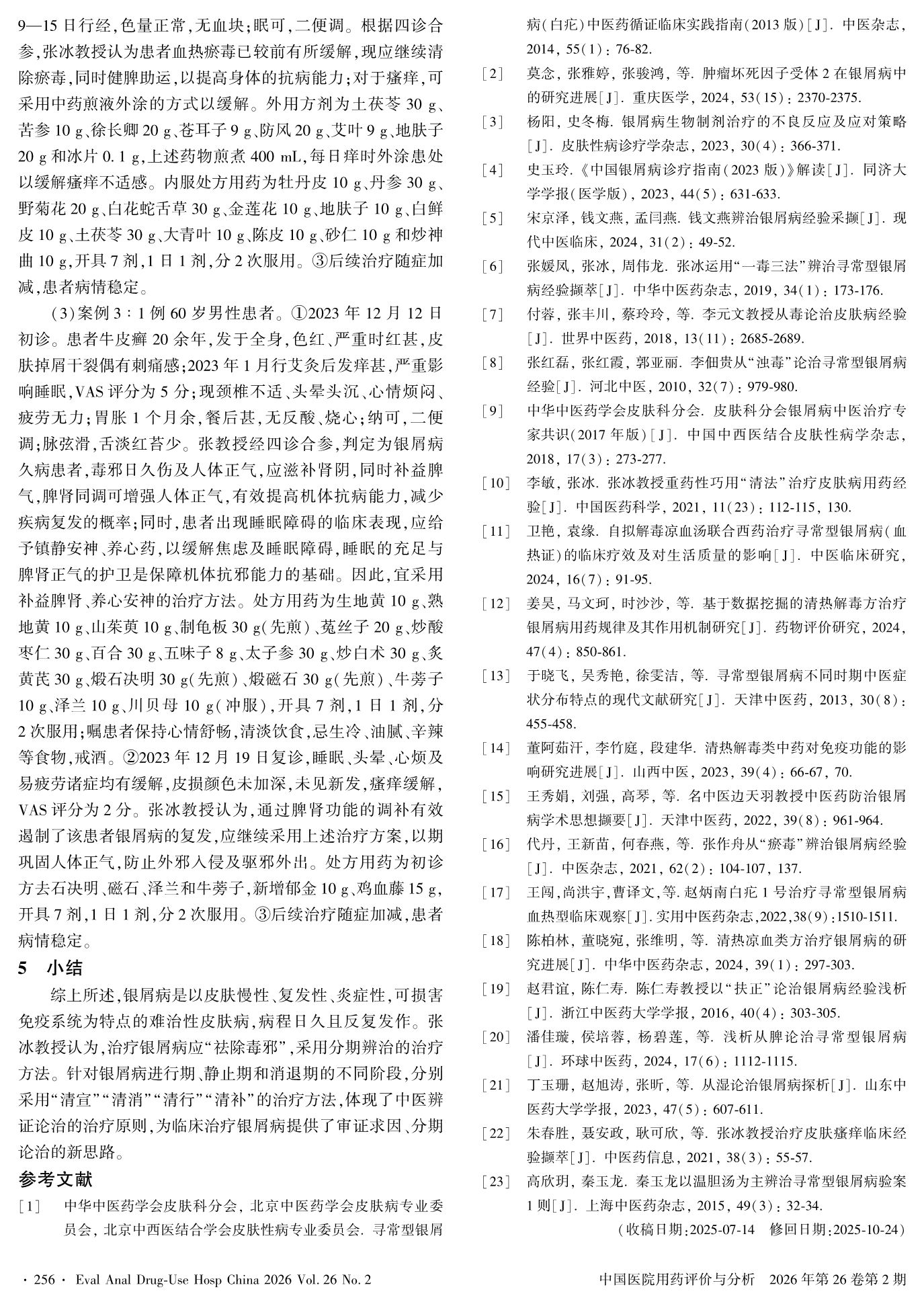 张冰教授采用“清法四则”分期辨治银屑病验案解析