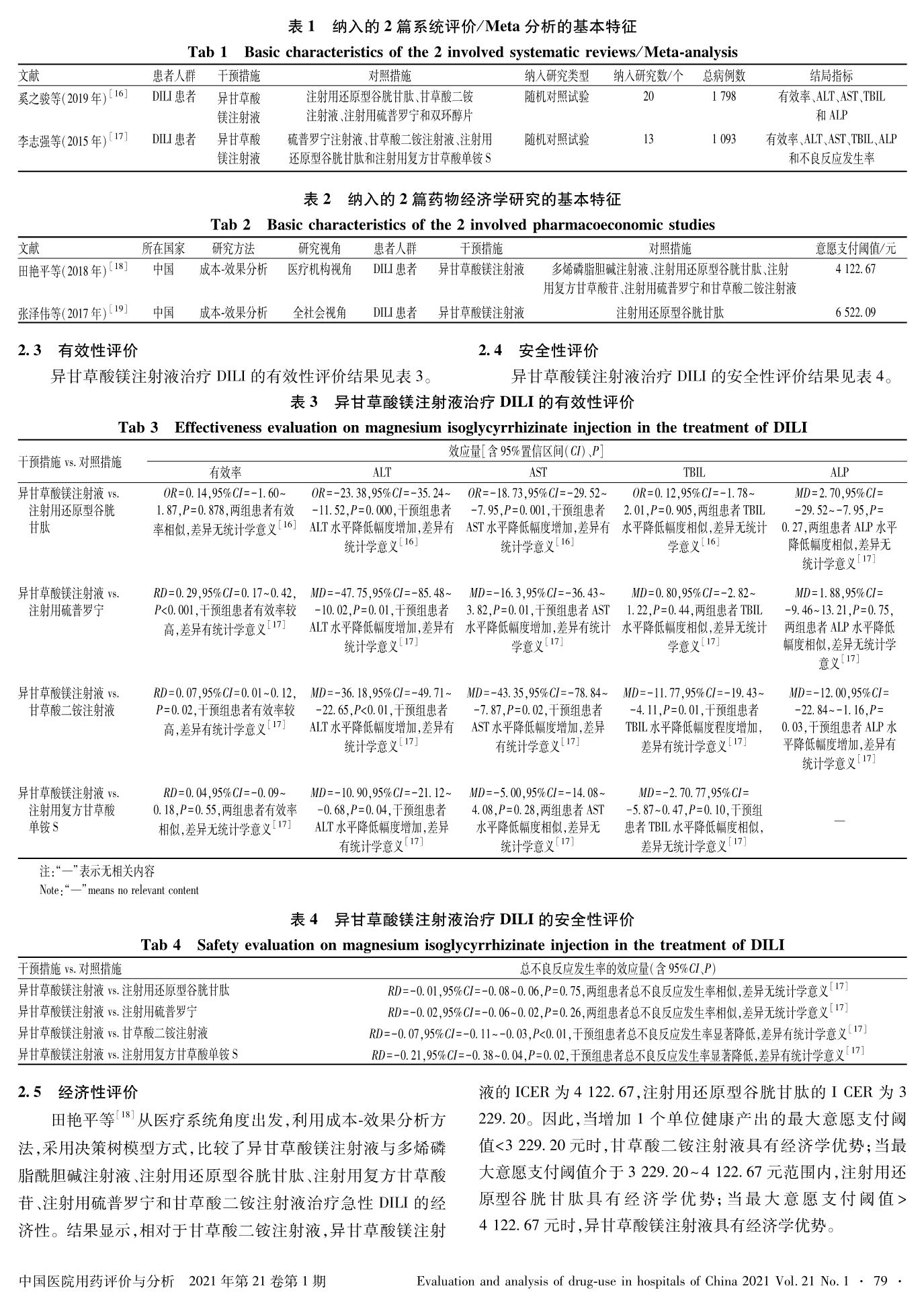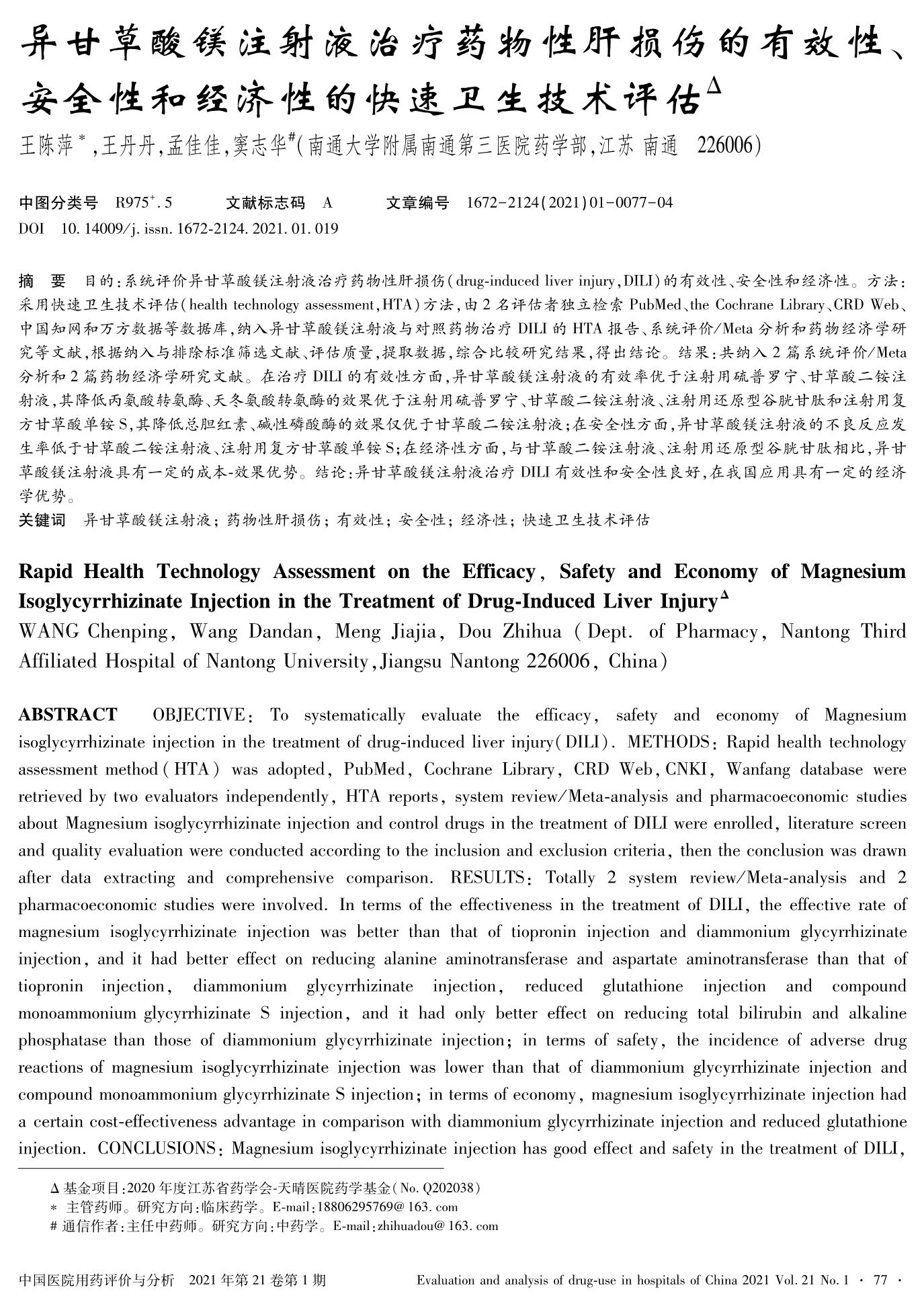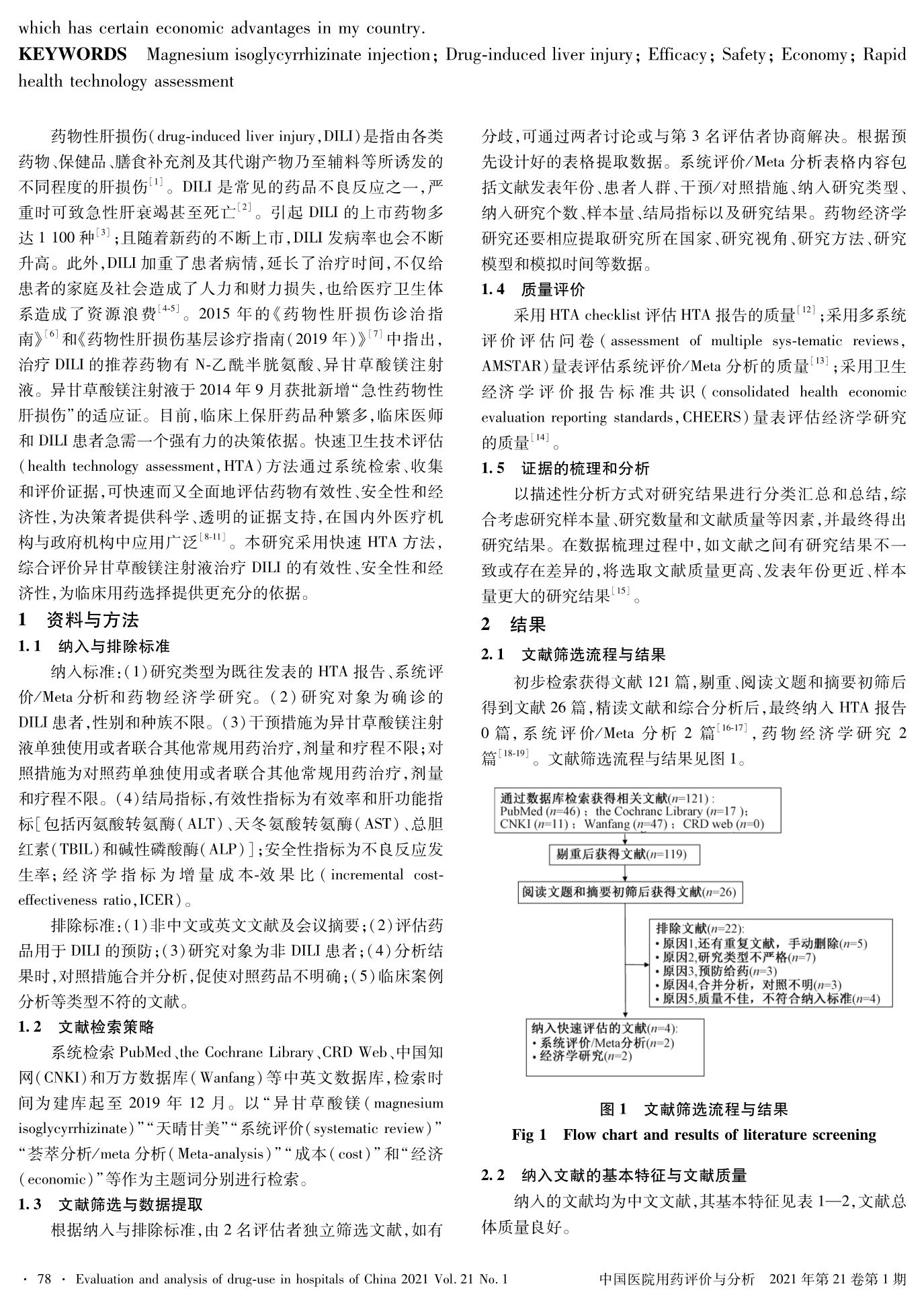 异甘草酸镁注射液治疗药物性肝损伤的有效性、安全性和经济性的快速卫生技术评估