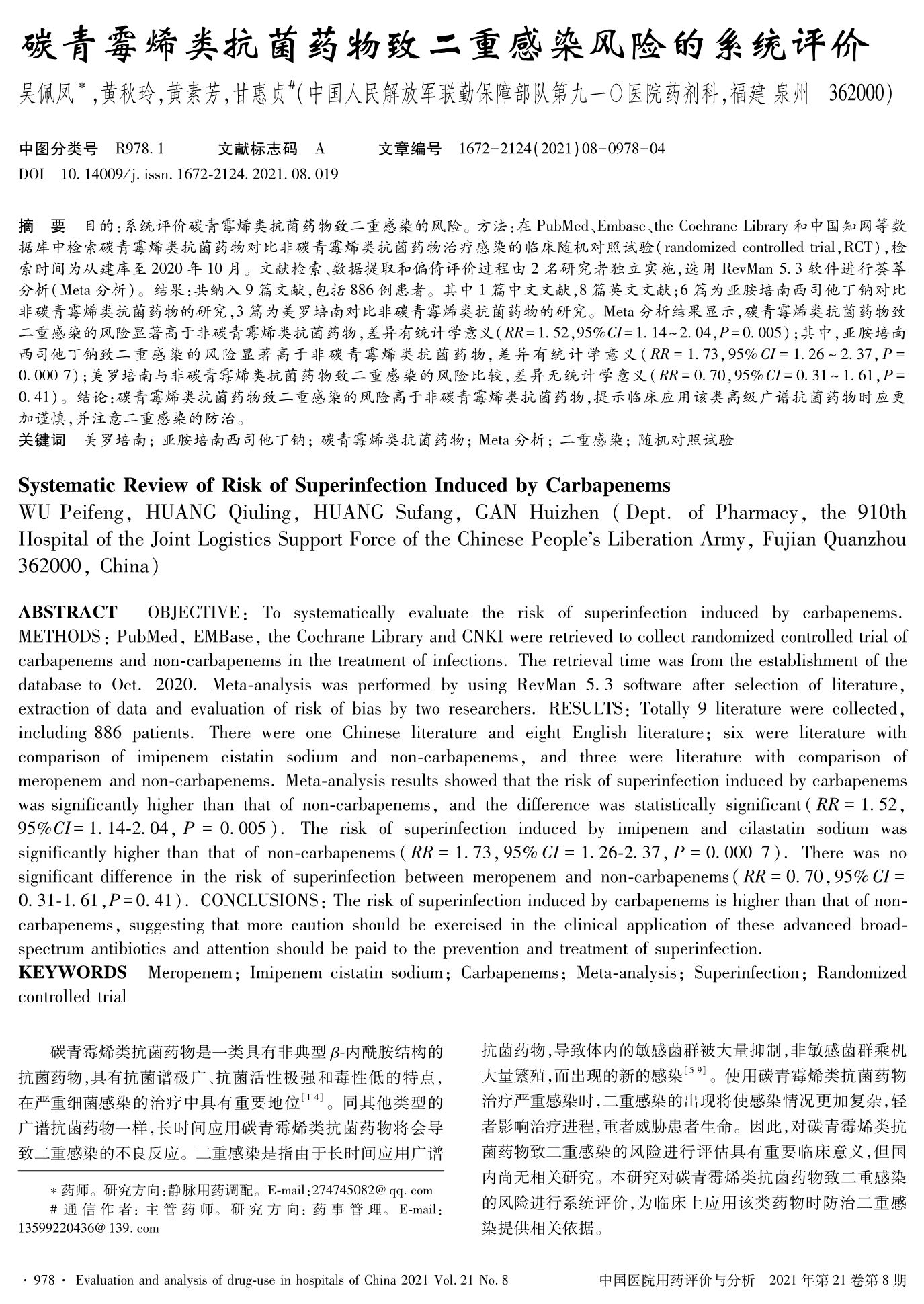 碳青霉烯类抗菌药物致二重感染风险的系统评价