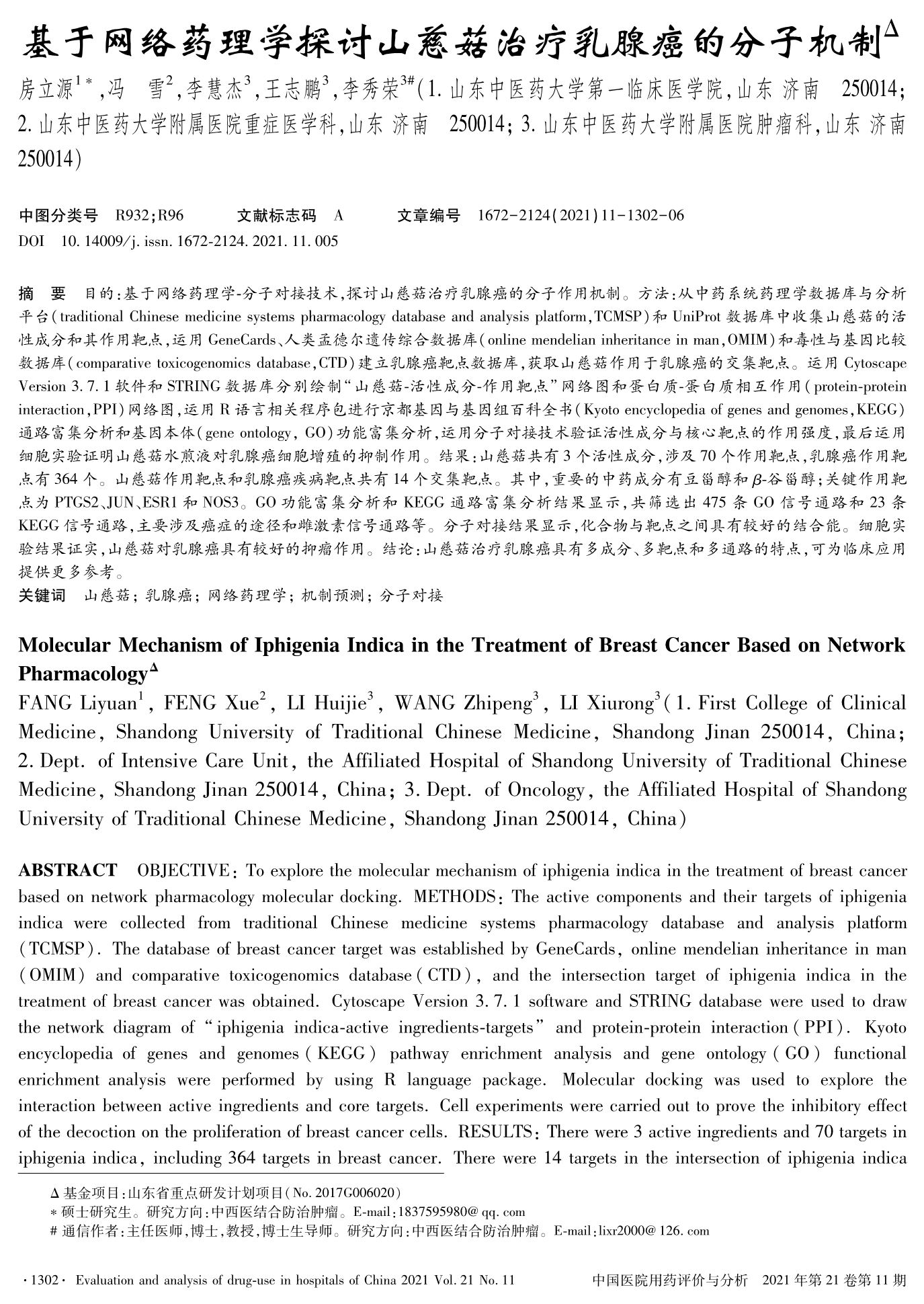 基于网络药理学探讨山慈菇治疗乳腺癌的分子机制