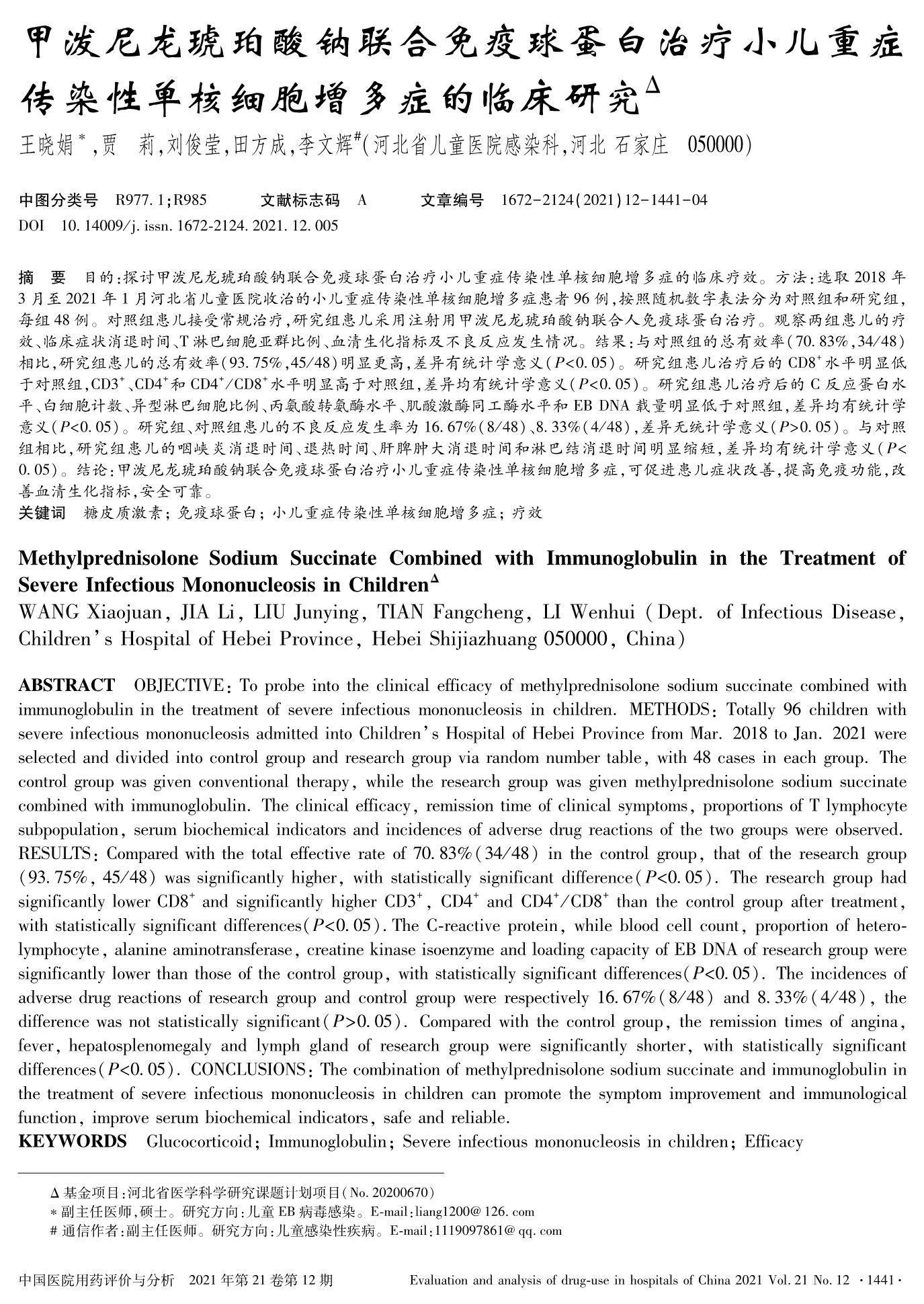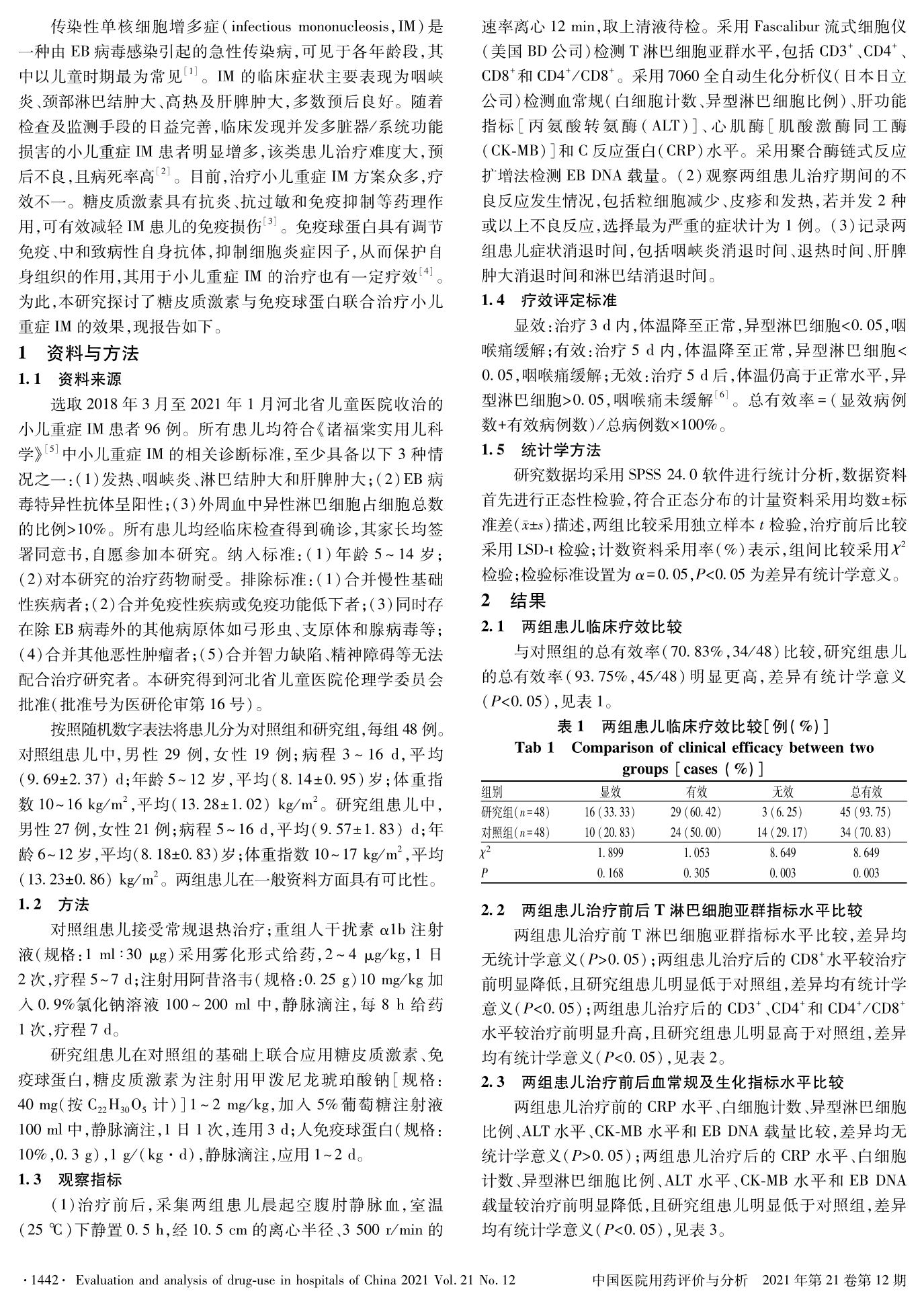 甲泼尼龙琥珀酸钠联合免疫球蛋白治疗小儿重症传染性单核细胞增多症的临床研究