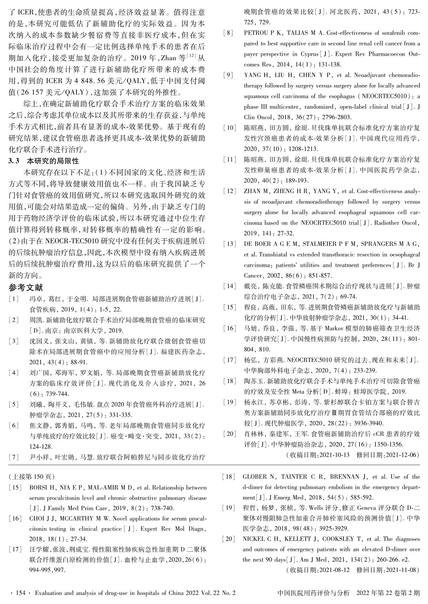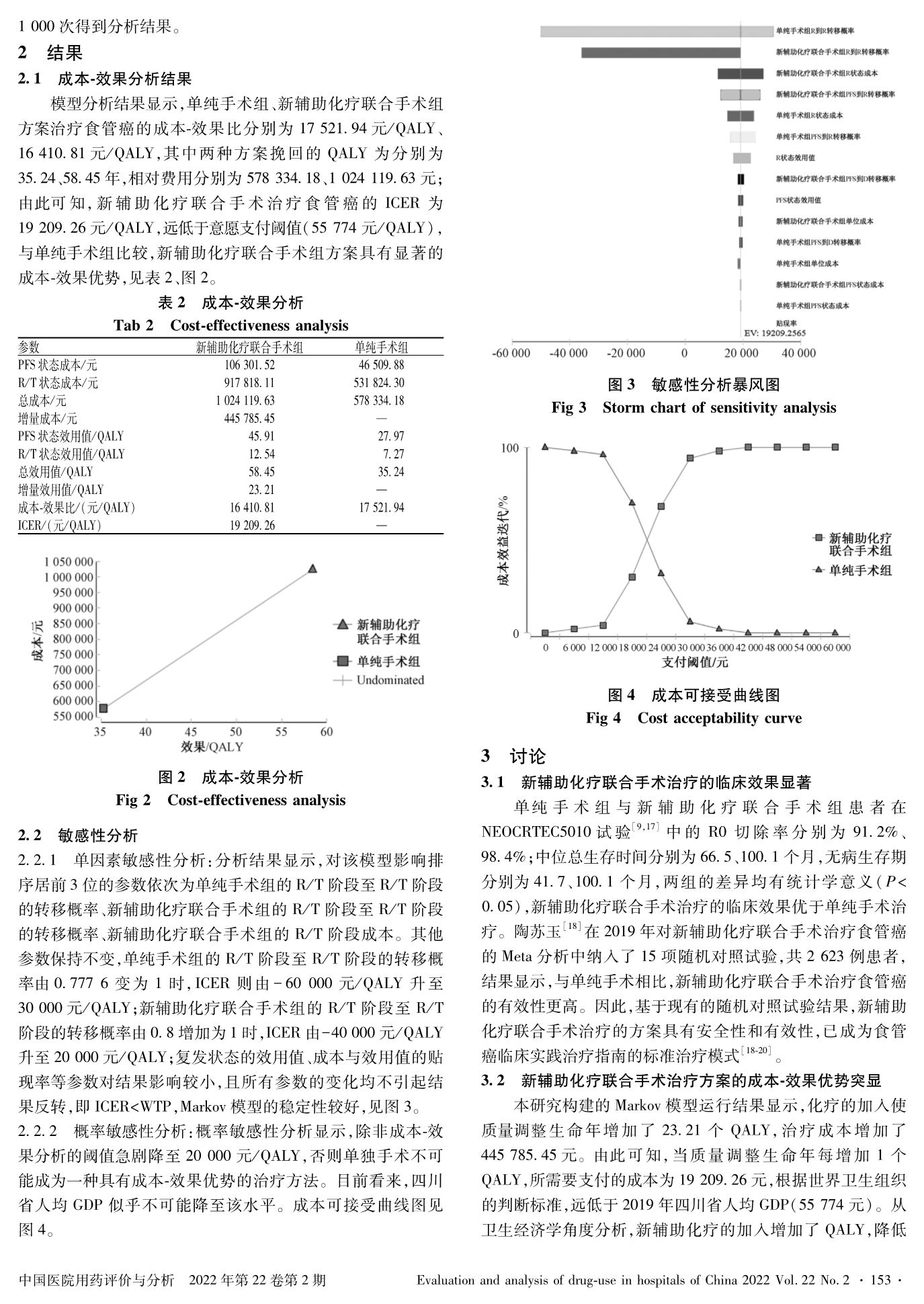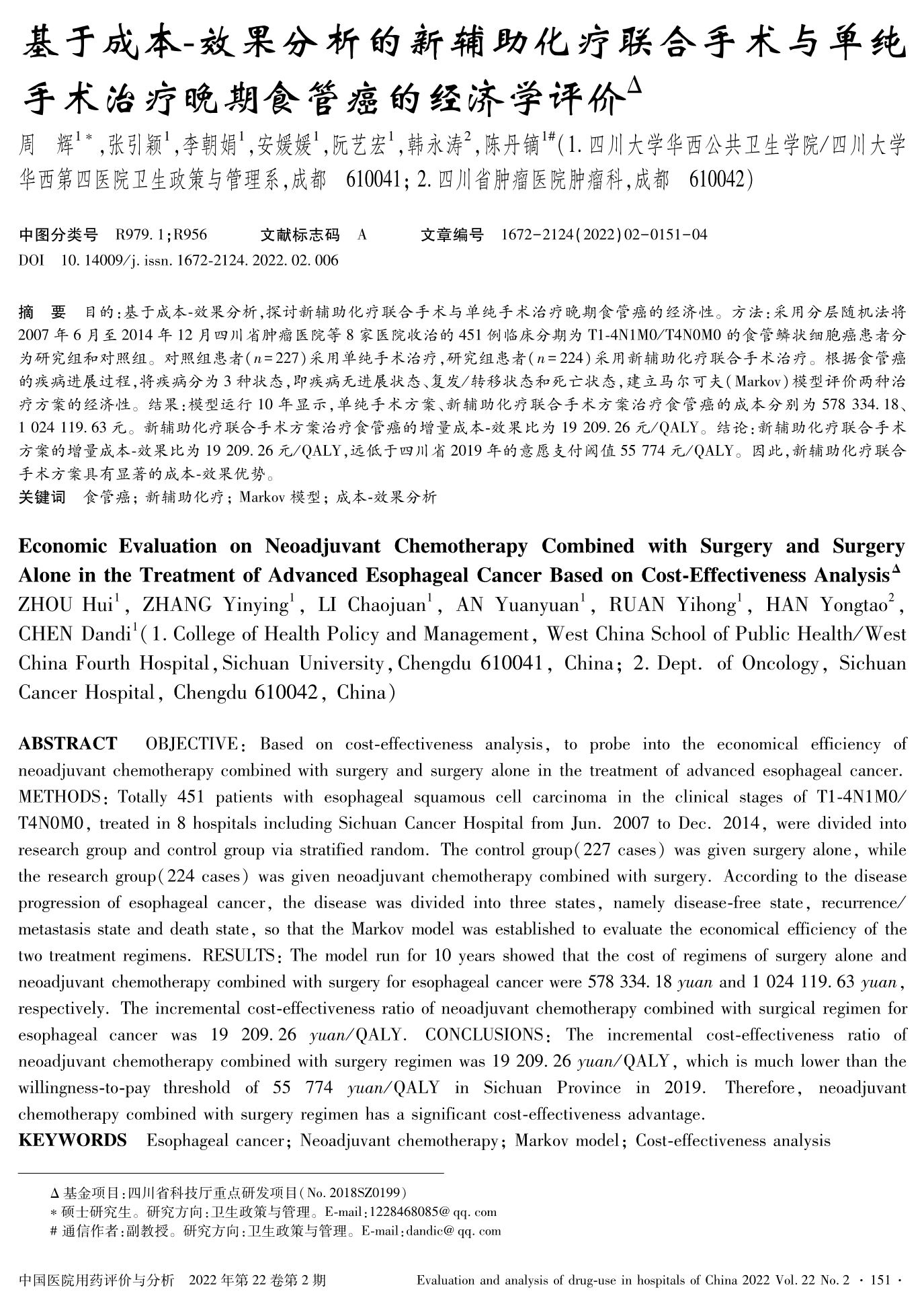 基于成本-效果分析的新辅助化疗联合手术与单纯手术治疗晚期食管癌的经济学评价