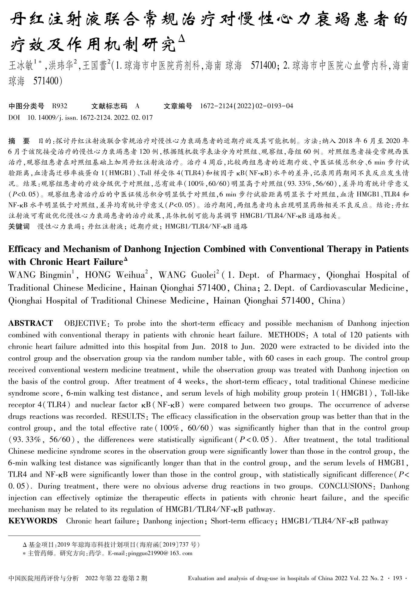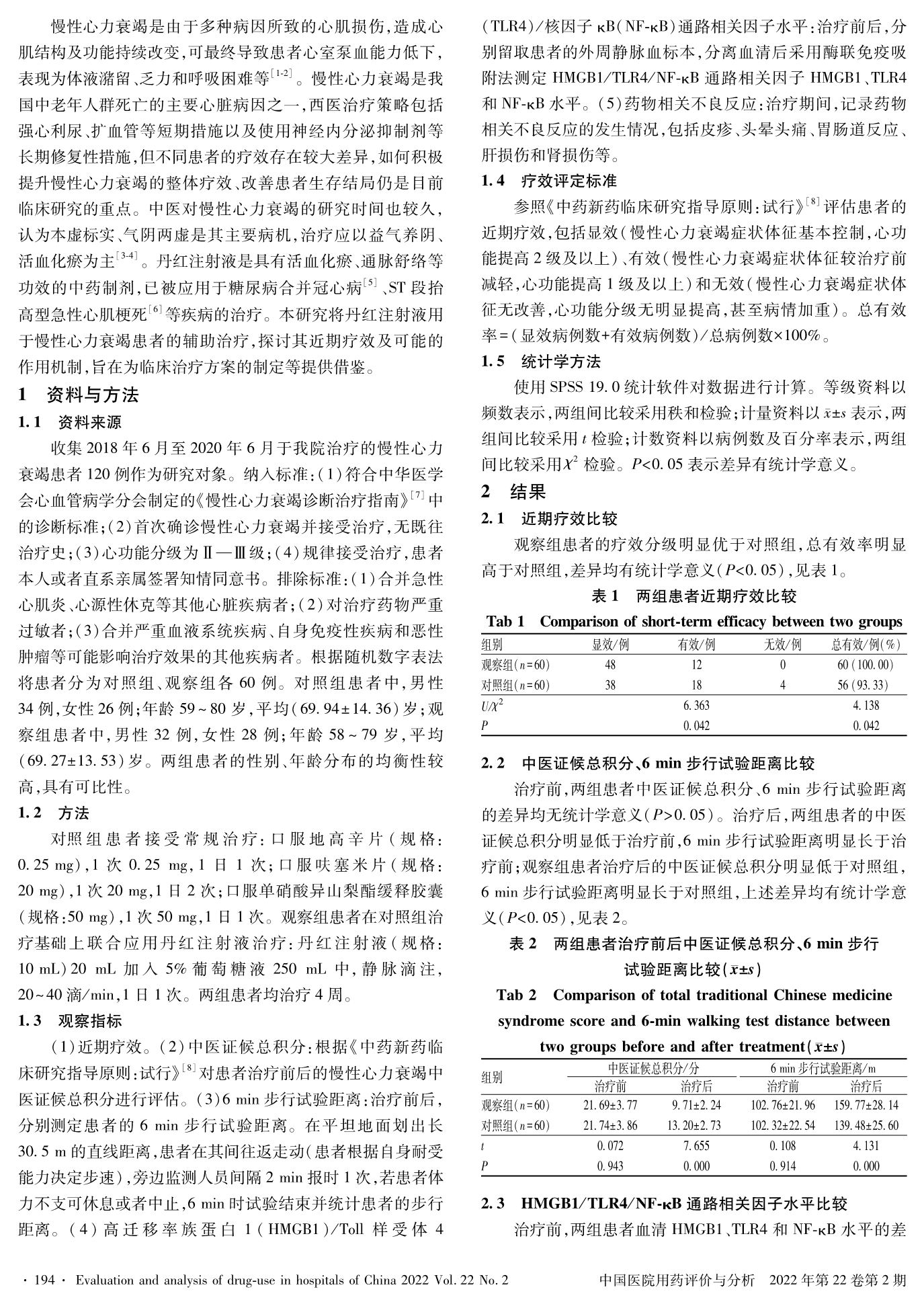 丹红注射液联合常规治疗对慢性心力衰竭患者的疗效及作用机制研究