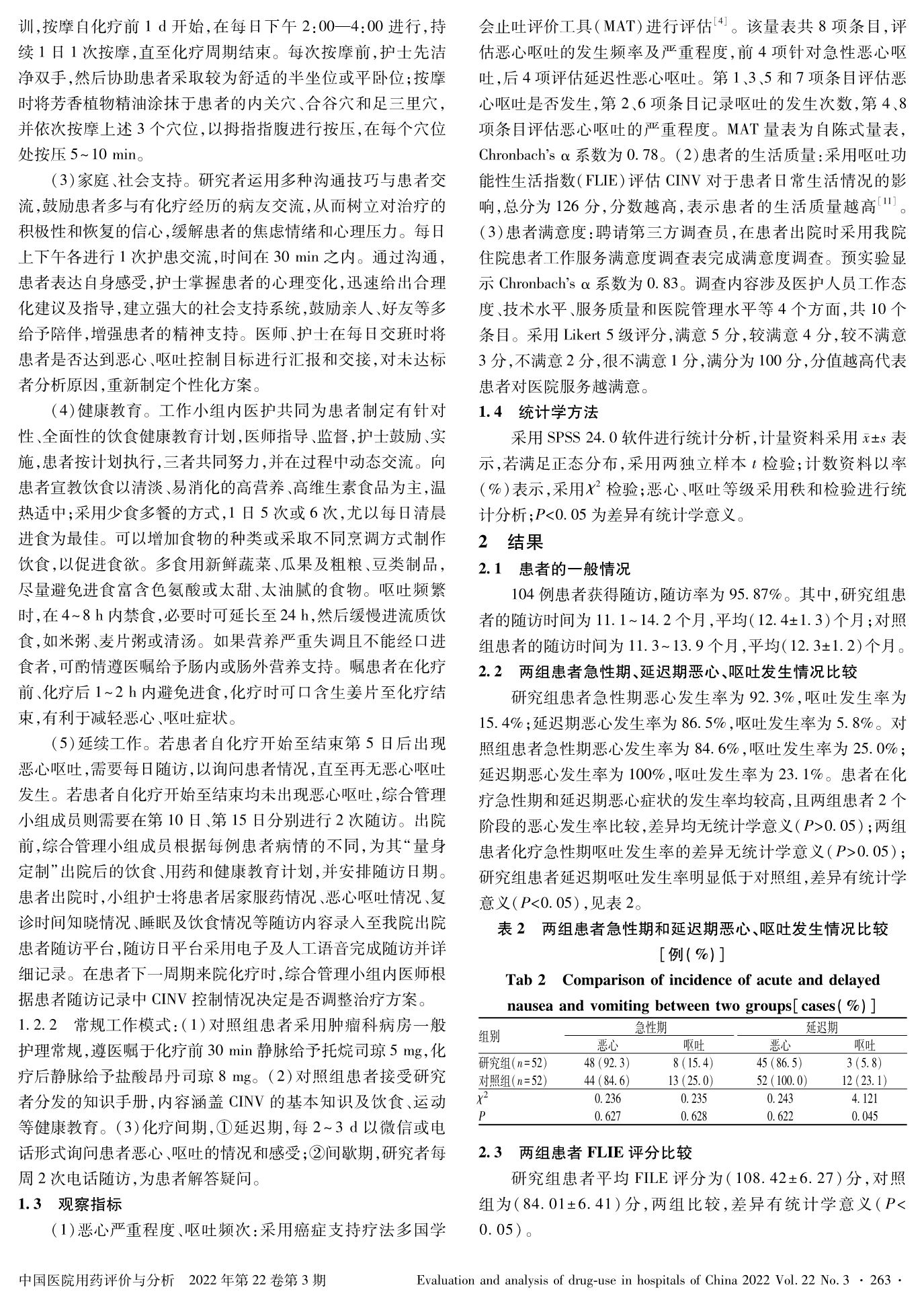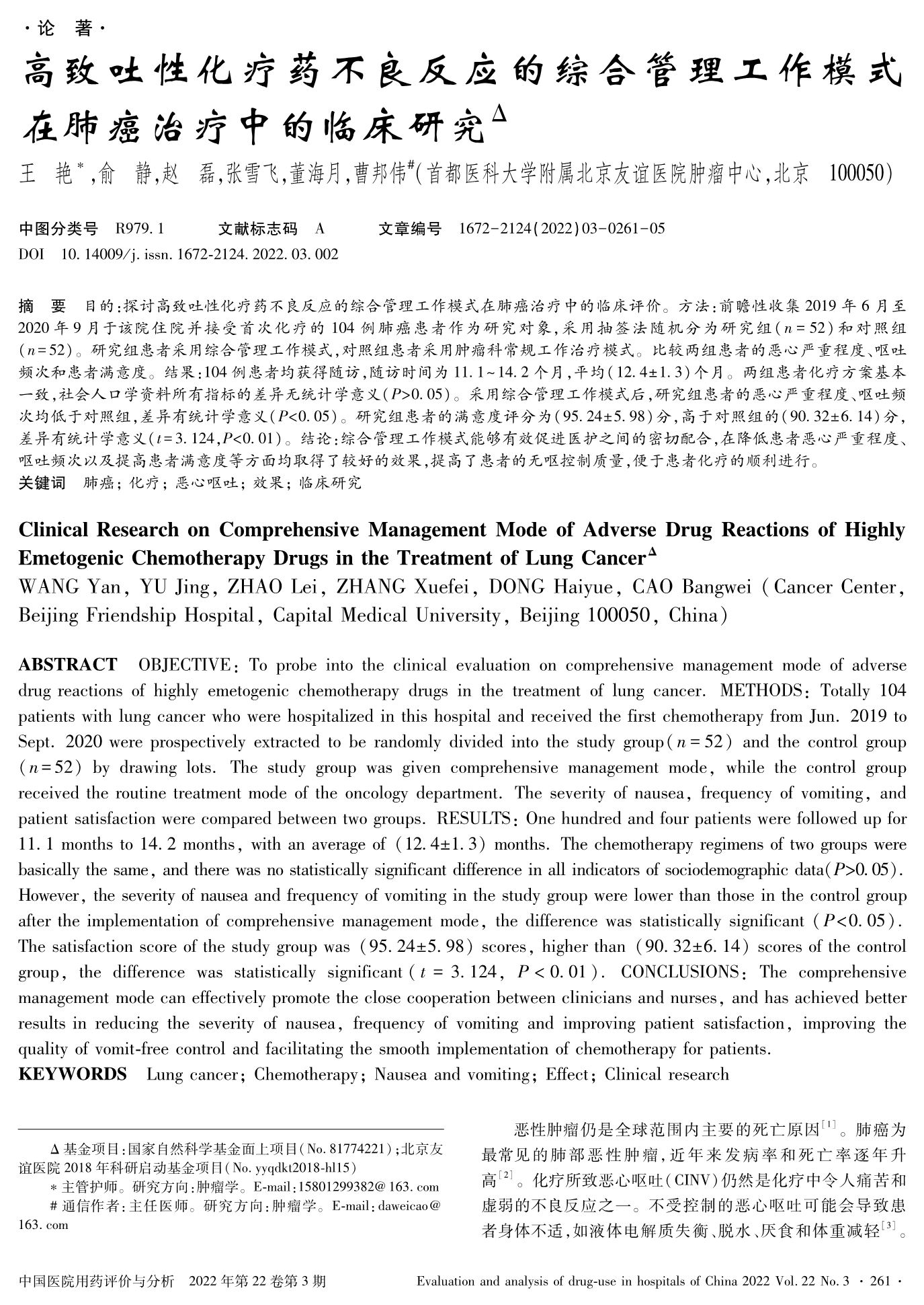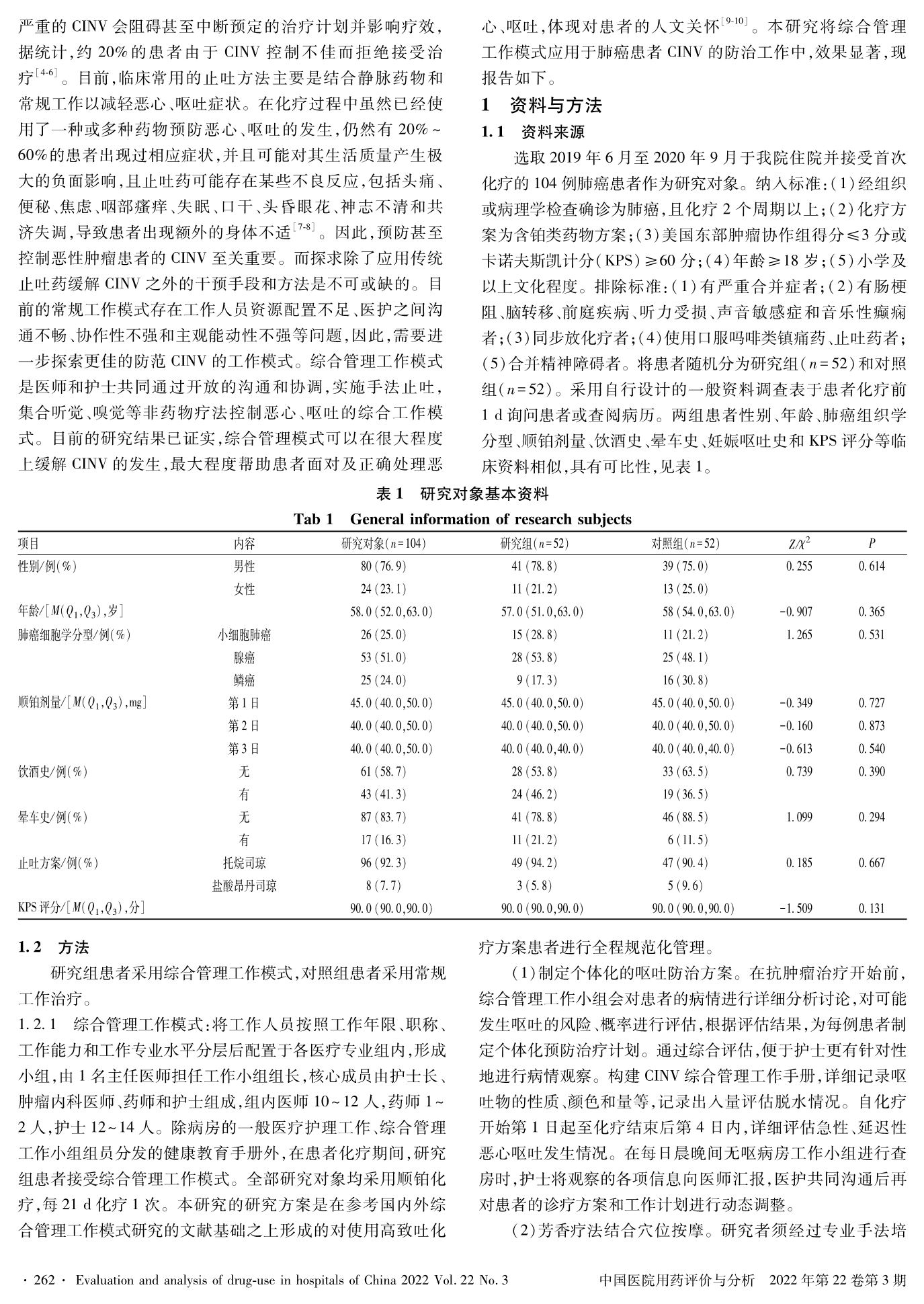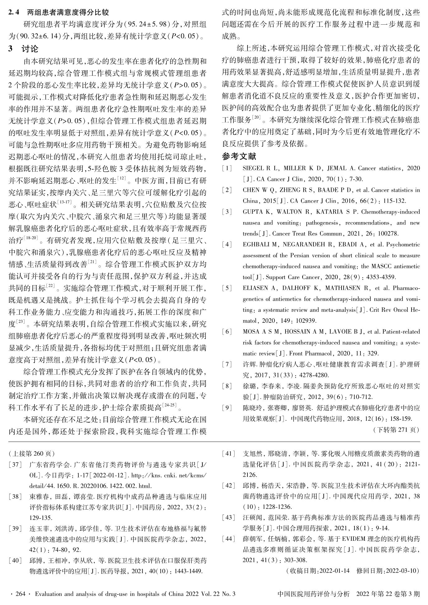 高致吐性化疗药不良反应的综合管理工作模式在肺癌治疗中的临床研究