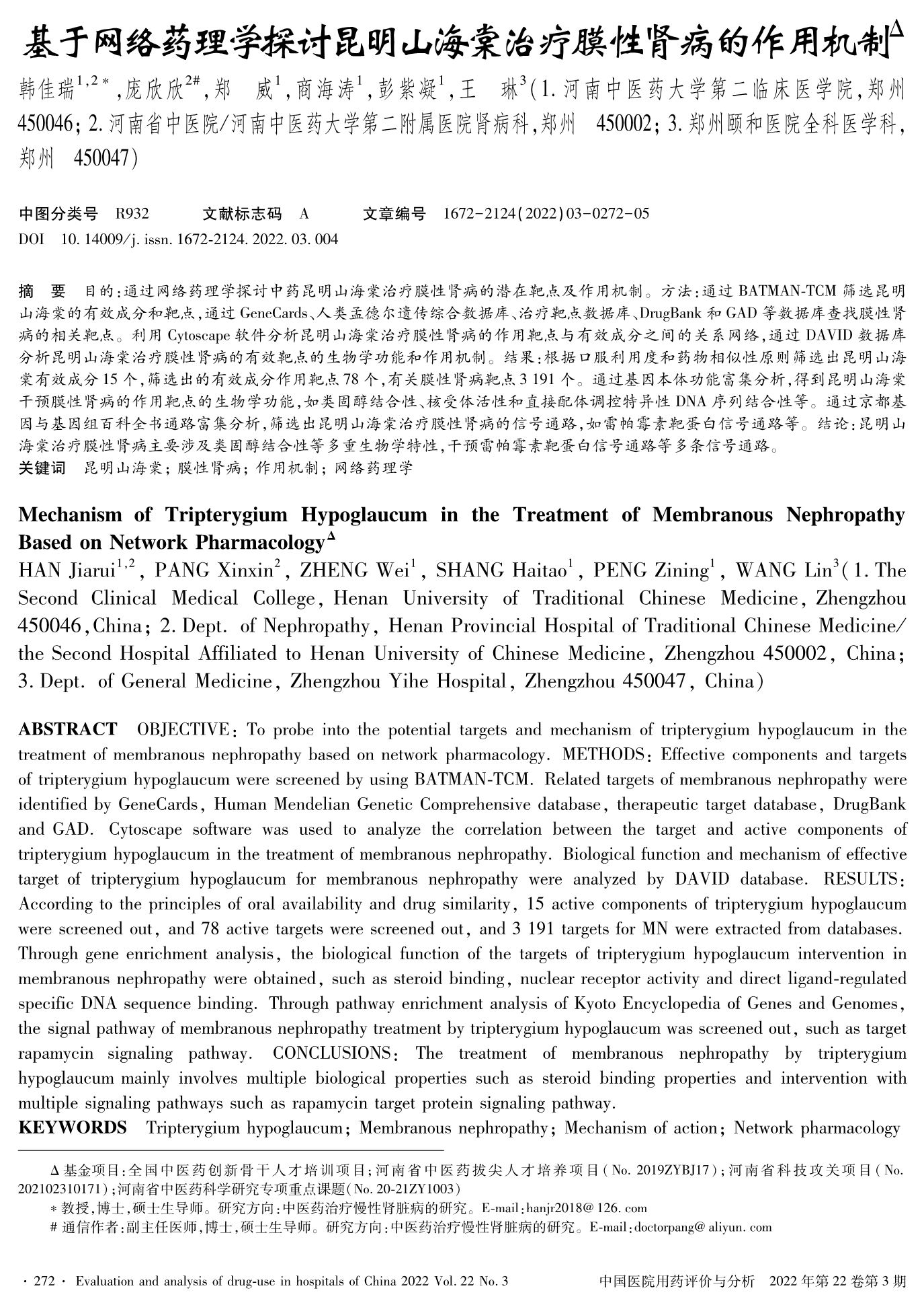 基于网络药理学探讨昆明山海棠治疗膜性肾病的作用机制