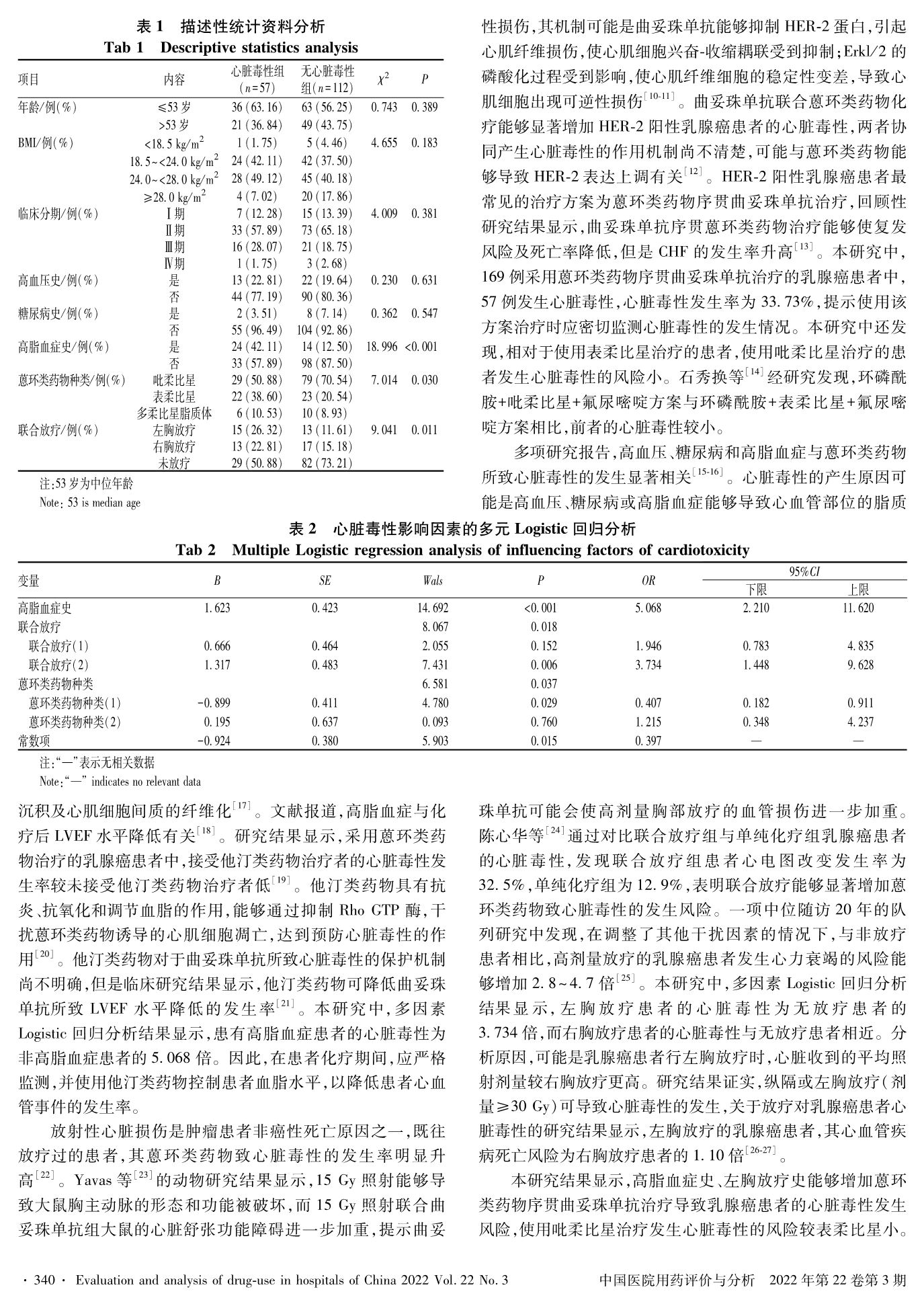 蒽环类药物序贯曲妥珠单抗治疗导致乳腺癌患者心脏毒性的相关危险因素研究