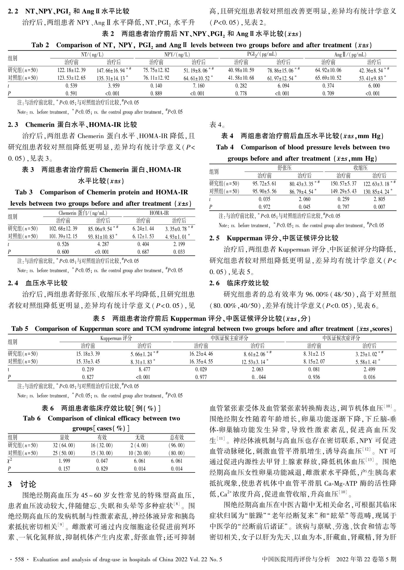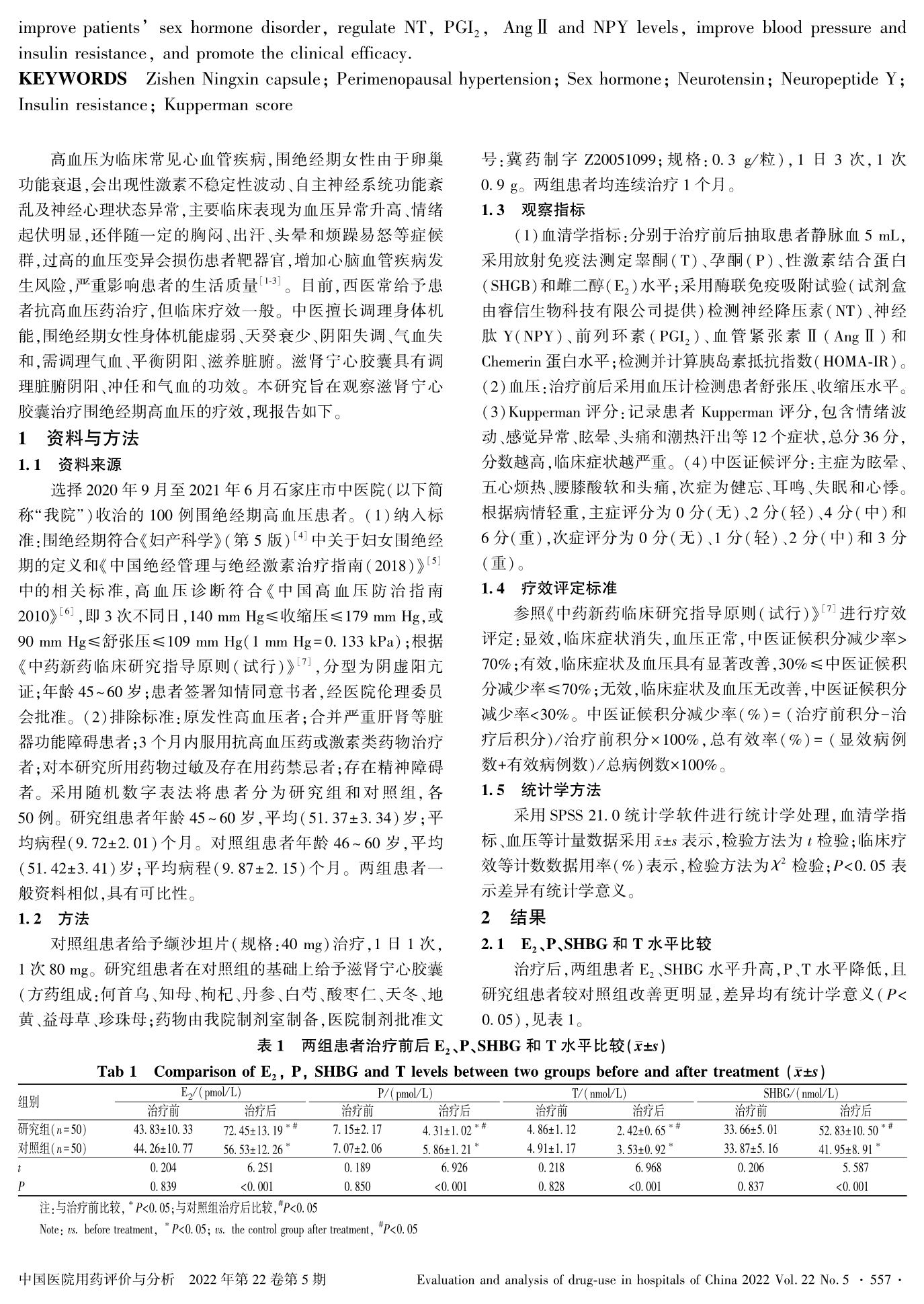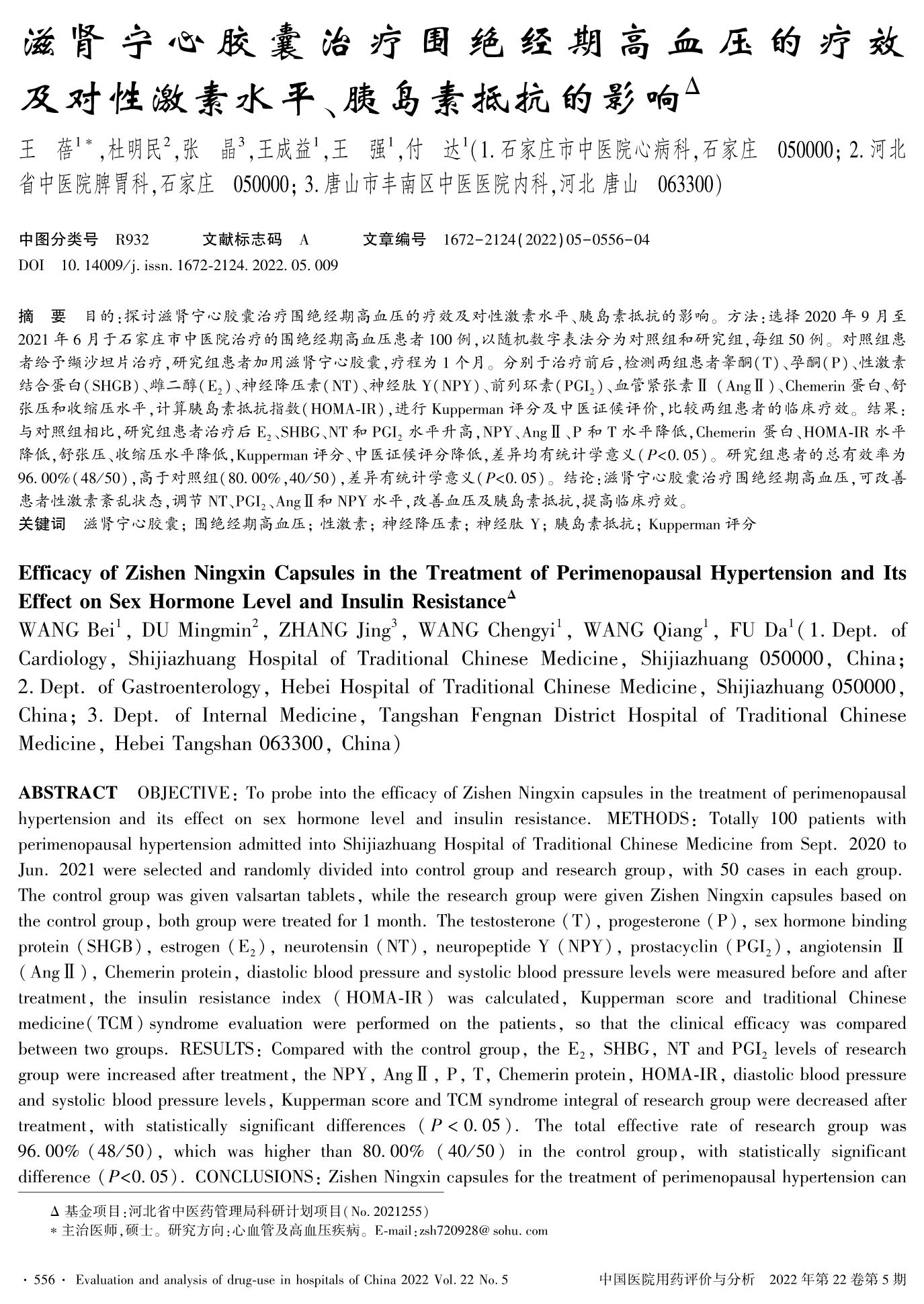 滋肾宁心胶囊治疗围绝经期高血压的疗效及对性激素水平、胰岛素抵抗的影响