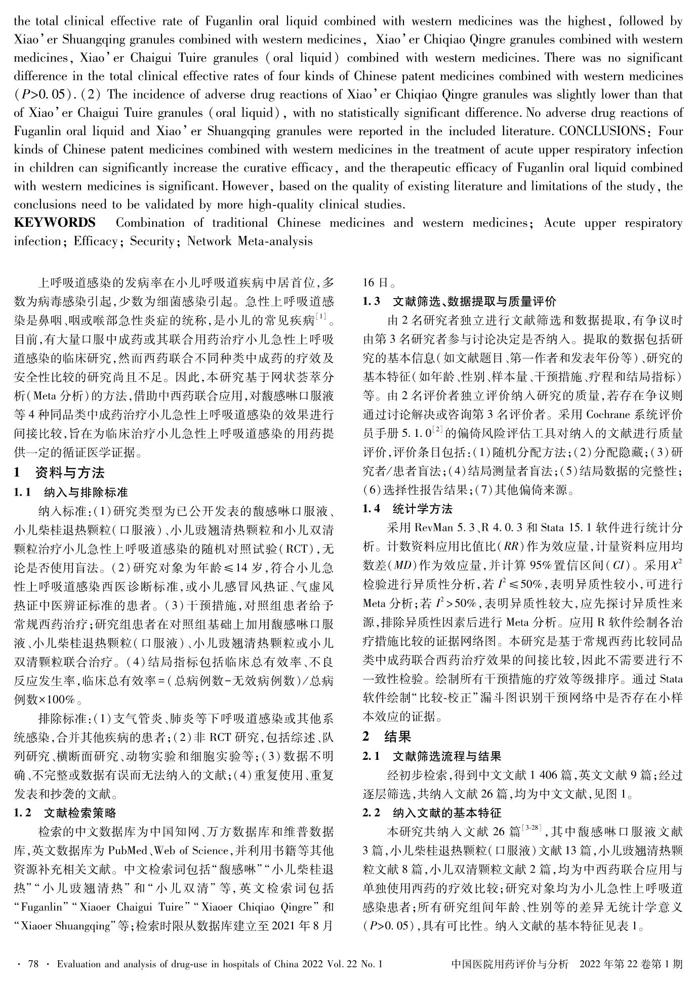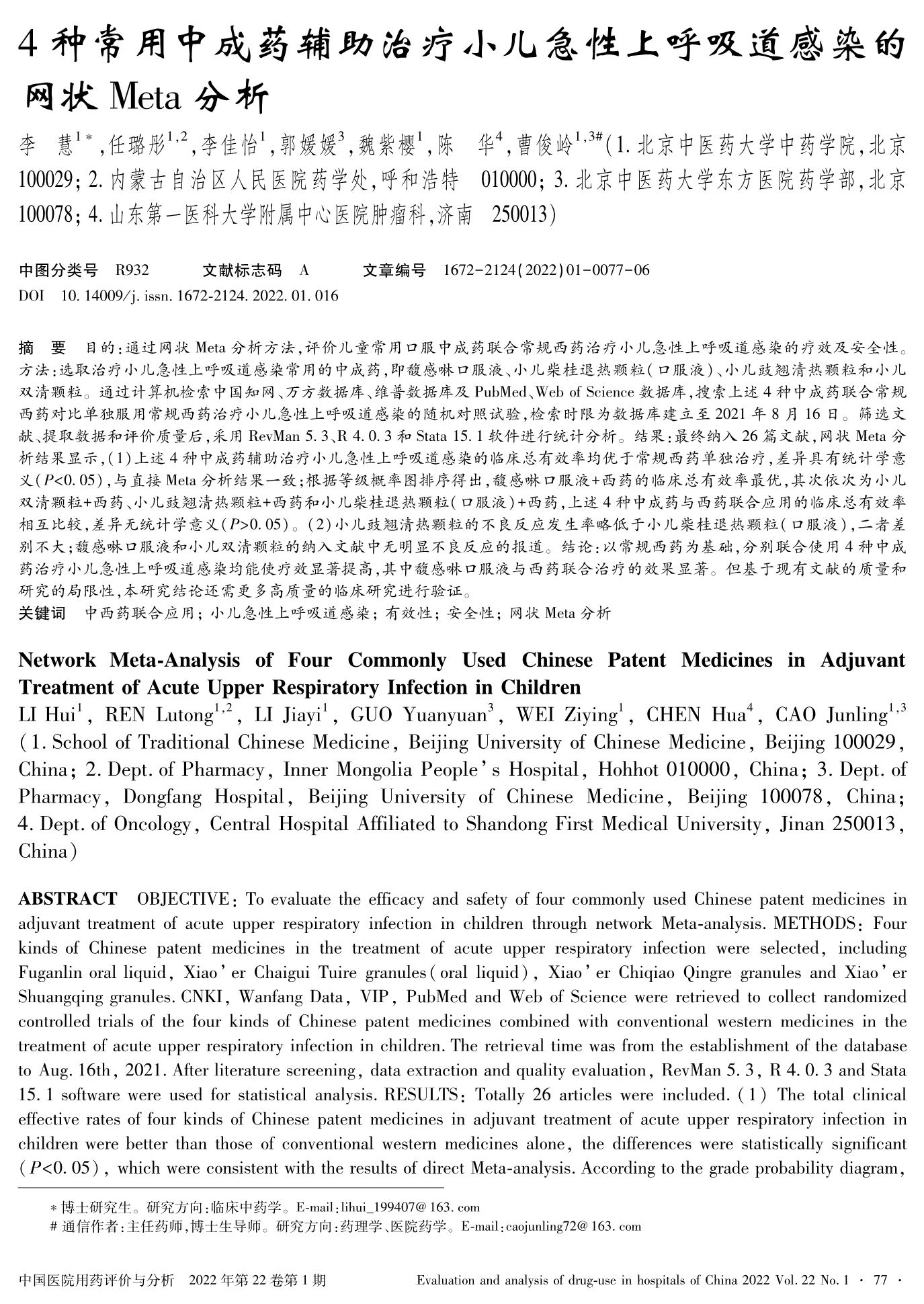 4种常用中成药辅助治疗小儿急性上呼吸道感染的网状Meta分析