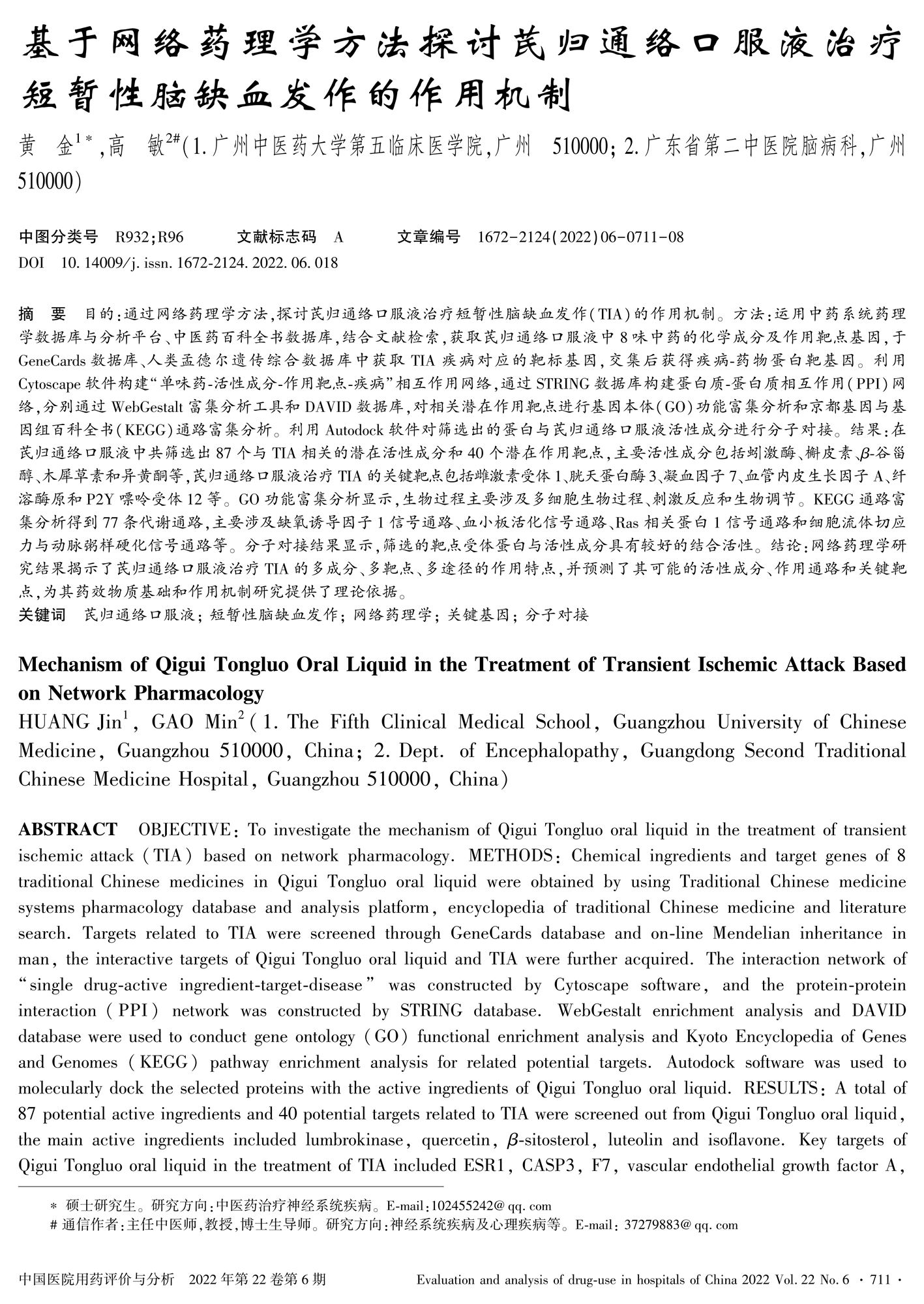 基于网络药理学方法探讨芪归通络口服液治疗短暂性脑缺血发作的作用机制